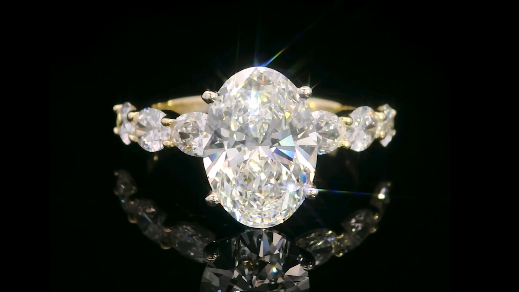 SPARKLING SIDE STONES WITH F-G COLOR AND VS CLARITY: The band is adorned with six 4X3MM oval lab-grown diamonds, elevating the total carat weigth of the ring to 2.90 Ct. These stones feature pristine F-G color grades and virtually flawless VS clarity, ensuring exceptional brilliance. The side stones are perfectly set to complement the center diamond, enhancing the overall elegance and harmony of the design.