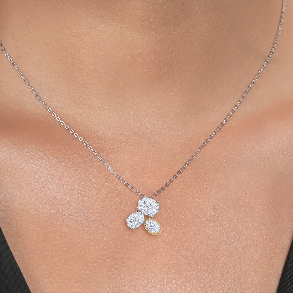 EXQUISITE DESIGN: This 925 Silver and 10K Yellow Gold Pendant Necklace features a stunning arrangement of white moissanite gemstones in three sizes – 8X6MM, 7X5MM, and 6X4MM – totaling 2.90 carats, creating an exquisite and sophisticated design for any woman.
