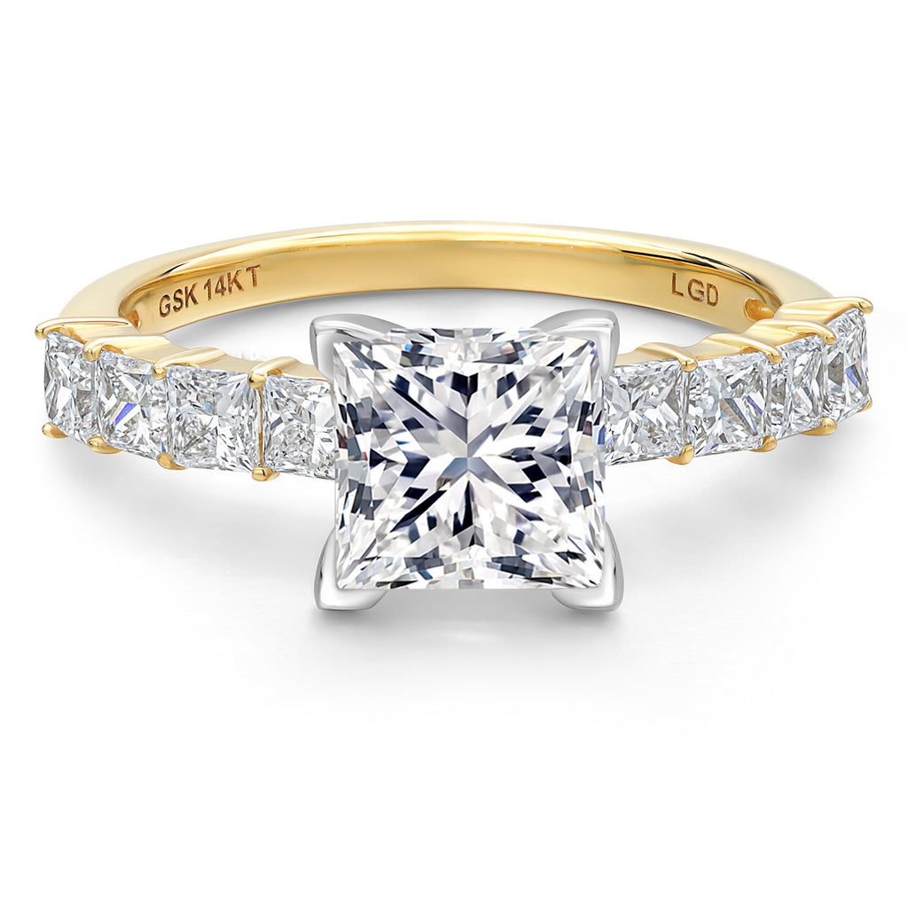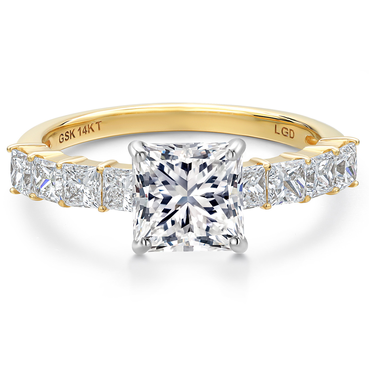 2.96 Cttw IGI Certified Lab Grown Diamond in 14K Two-Tone Gold Engagement Ring for Women | Princess Center Diamond 2.00 Ct | E-F Color | VS1-VS2 Clarity