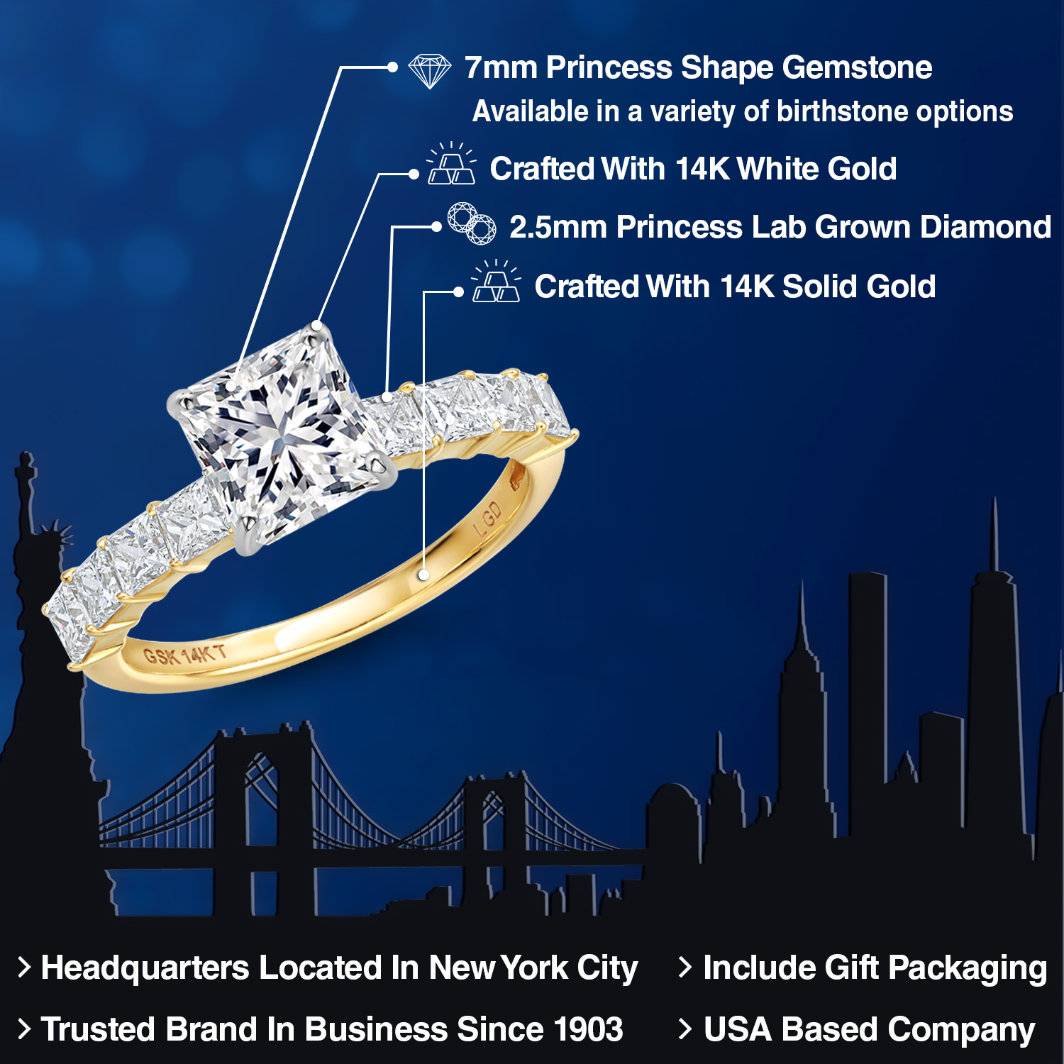 2-Tone Engagement Ring For Women | 925 Silver and 10K Yellow Gold | Gemstone Birthstone | 6MM Cushion Cut | Wedding Anniversary Promise Ring | Available In Size 5, 6, 7, 8, 9
