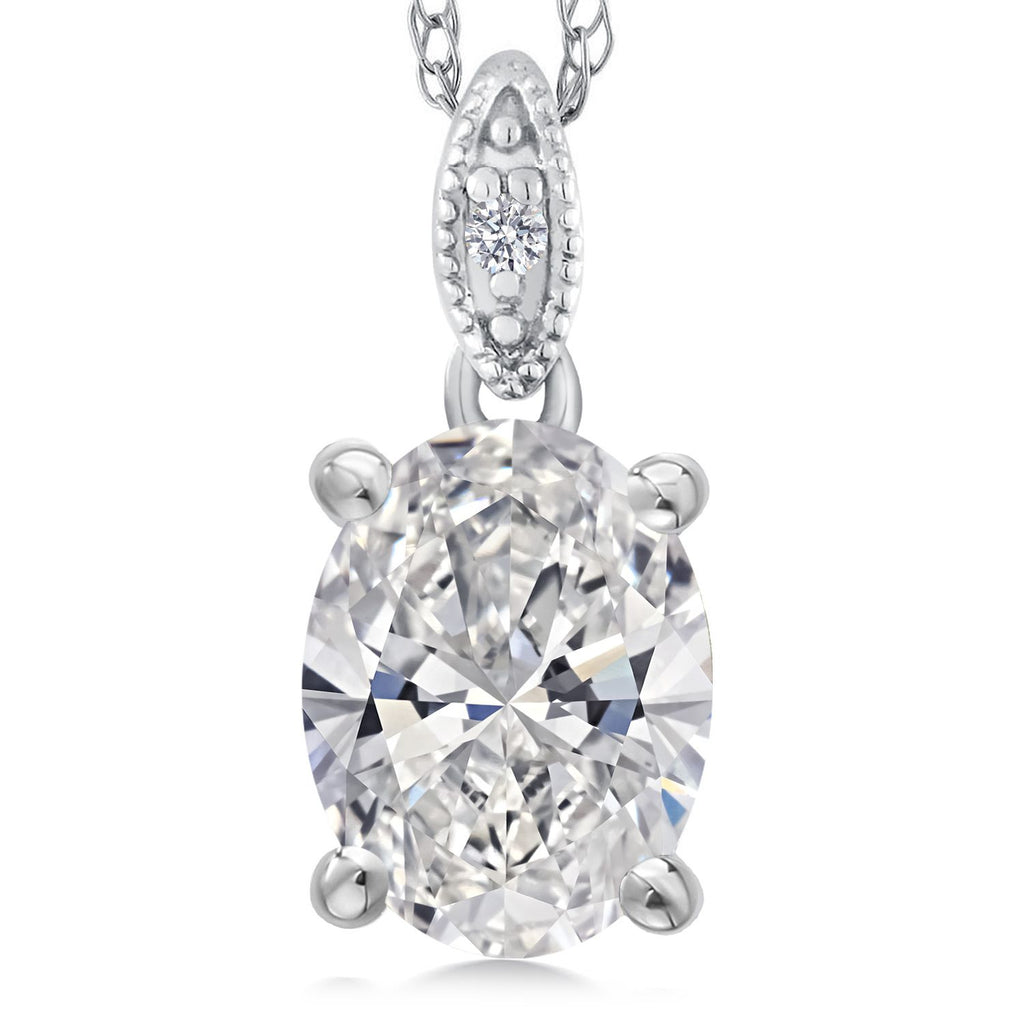 SUPERIOR QUALITY AND CERTIFICATION: This exquisite 2 Ct Oval Diamond Pendant Necklace is crafted in 10K White Gold and features an IGI Certified Lab Grown Diamond with E-F Color and VS1-VS2 Clarity, ensuring exceptional brilliance and quality.