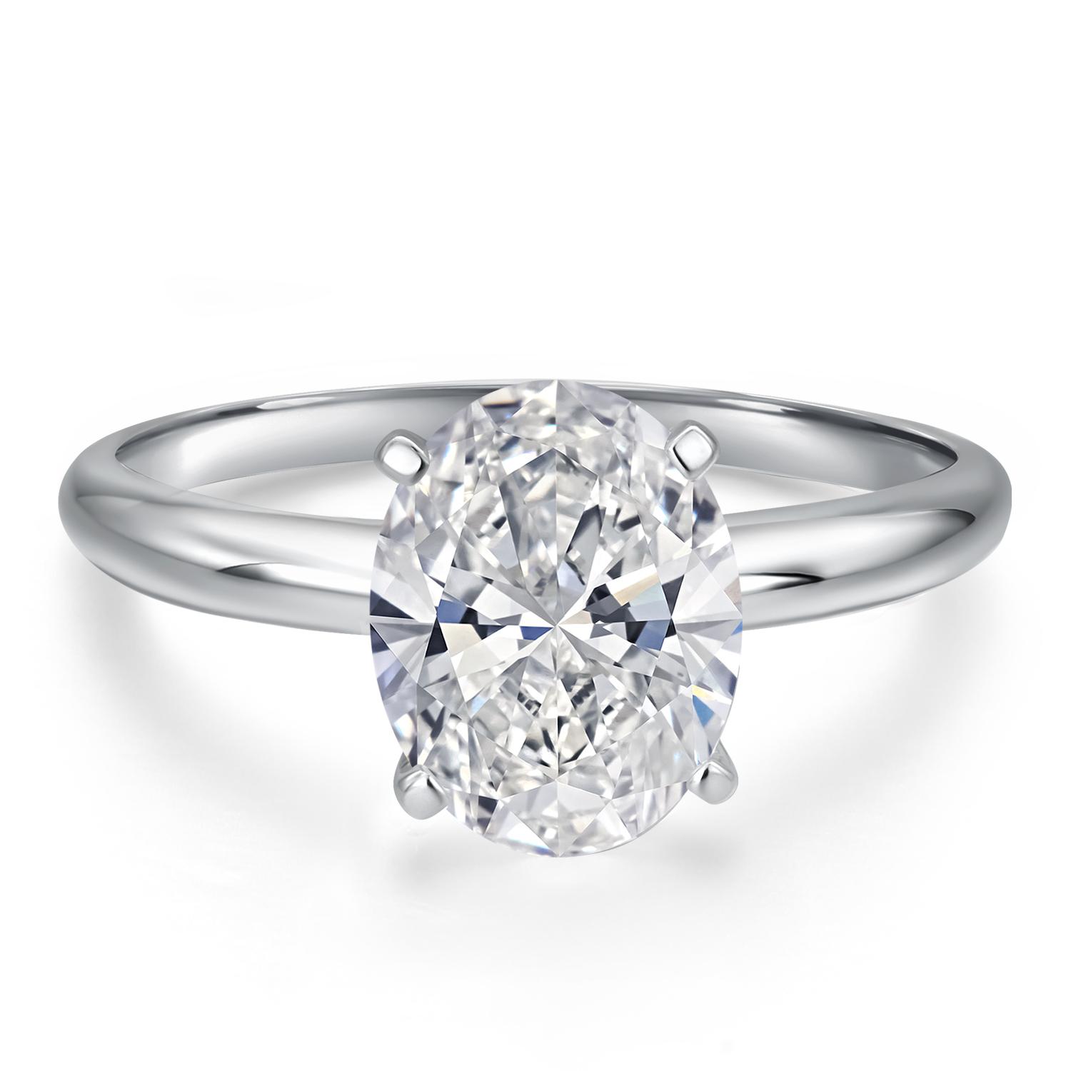 BRILLIANT IGI CERTIFIED DIAMOND: This luxurious engagement ring features an IGI-certified lab-grown diamond ranging from 1 to 5 carats. The diamond boasts a near-colorless E-F Color grade and VS1-VS2 Clarity, ensuring exceptional brilliance and minimal inclusions. The elegant oval shape enhances its sparkle and creates a timeless centerpiece for any occasion.