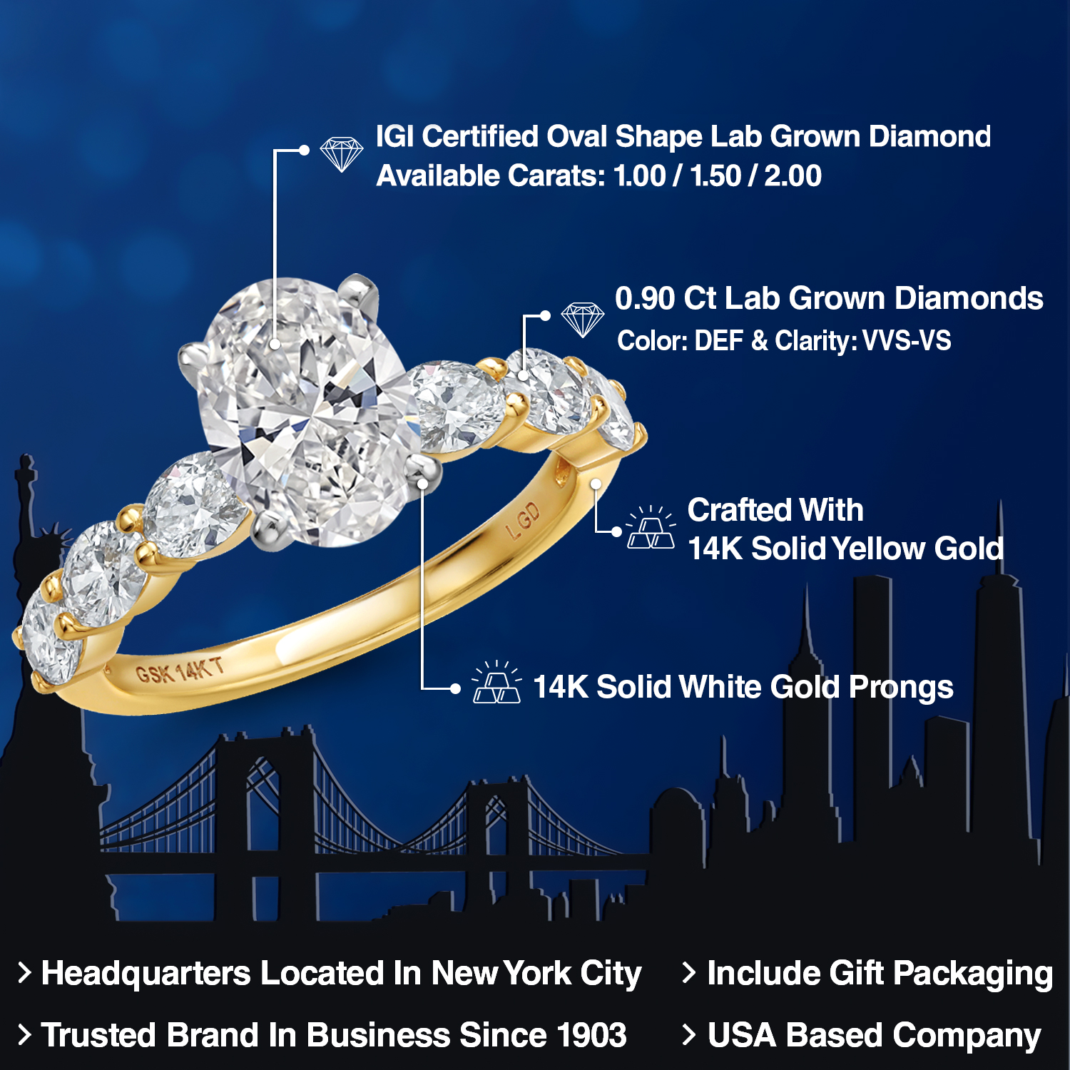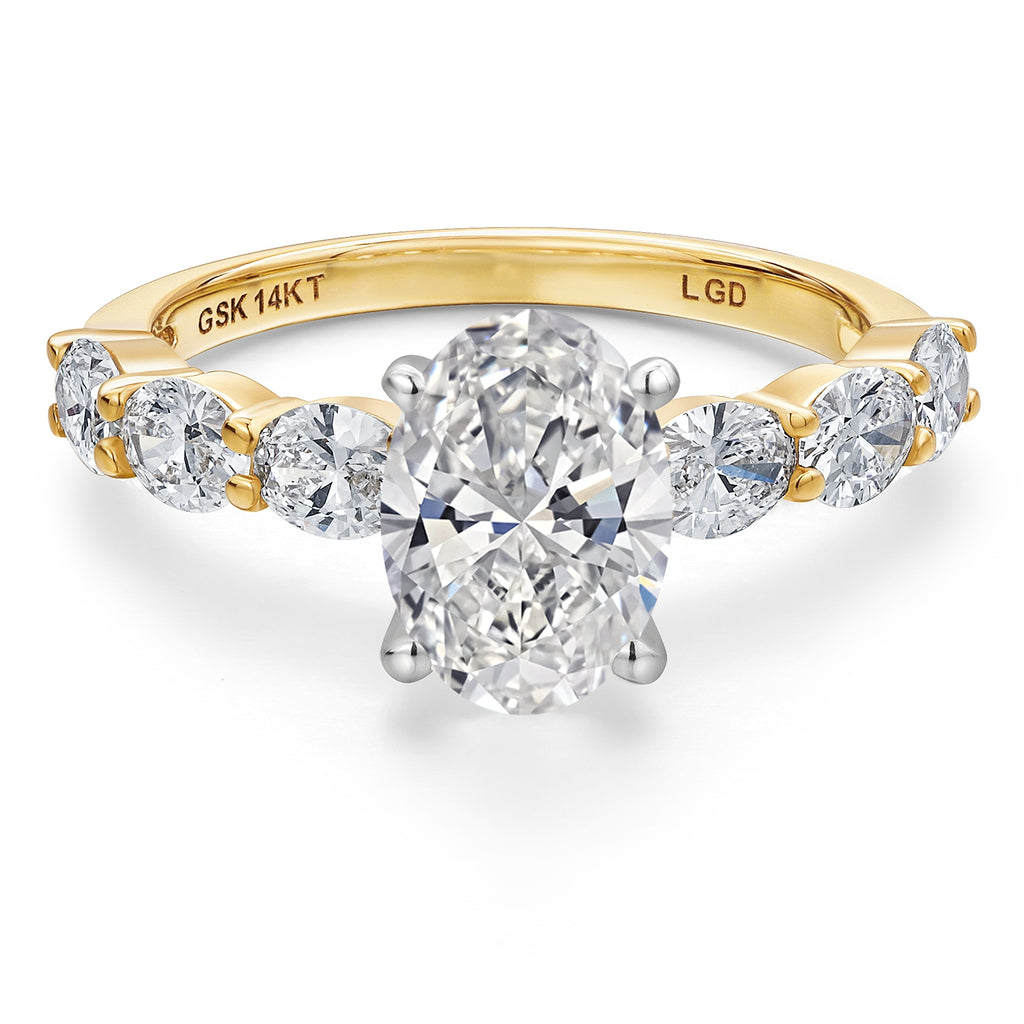 2 to 5.9 Cttw Oval Lab Grown Diamond Engagement Ring For Women | 2-Tone 14K White and Yellow Gold | IGI Certified | E-F Color | VS1-VS2 Clarity | Wedding Anniversary Ring