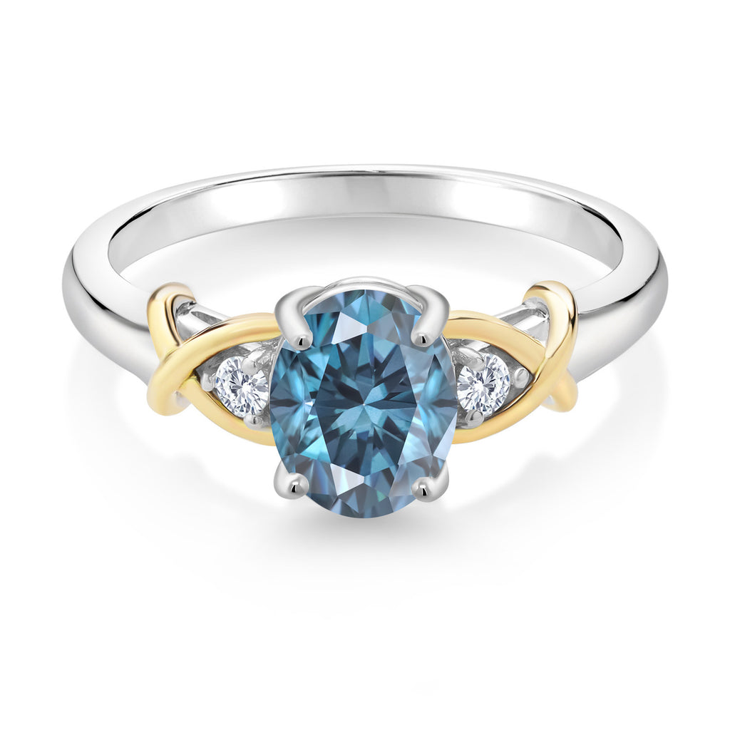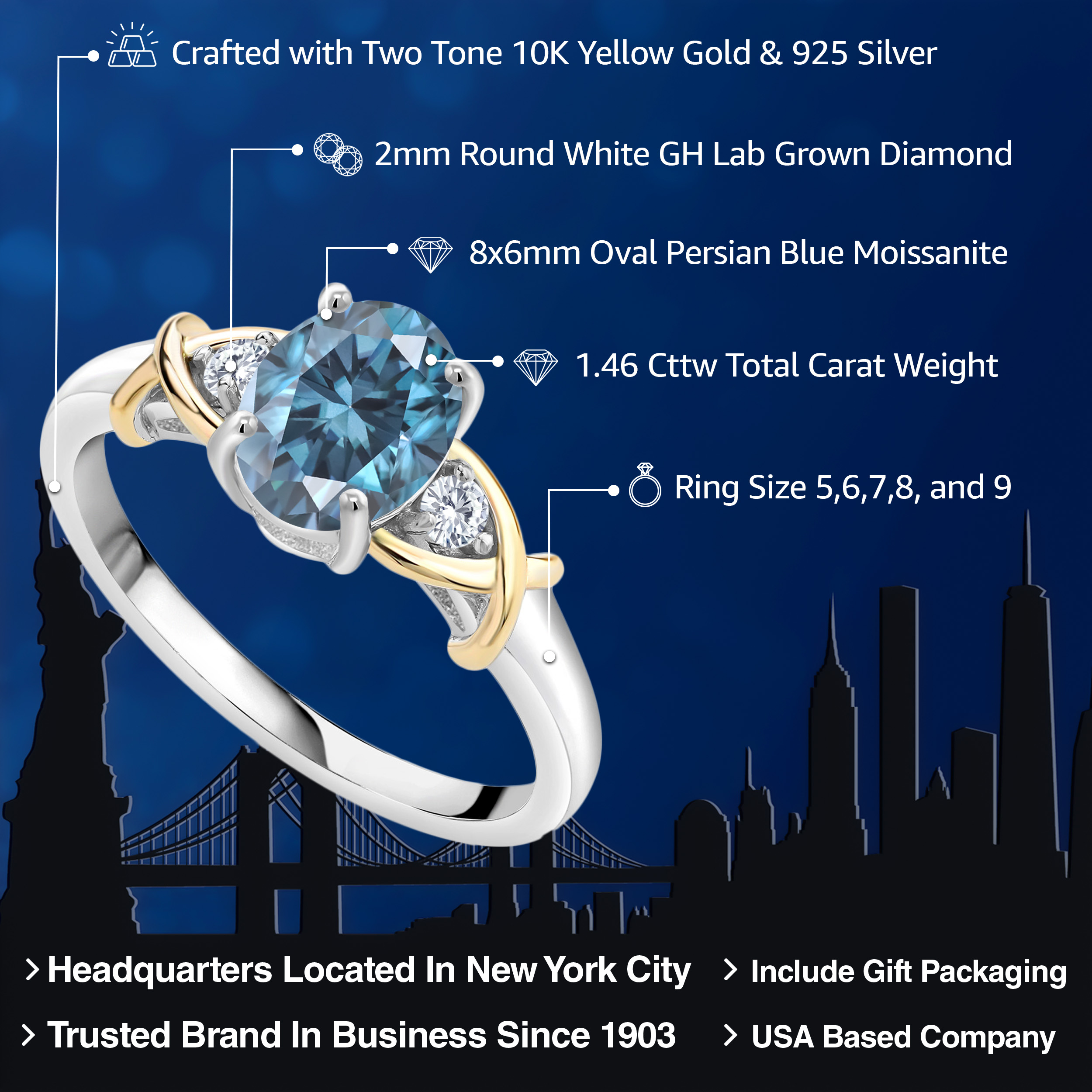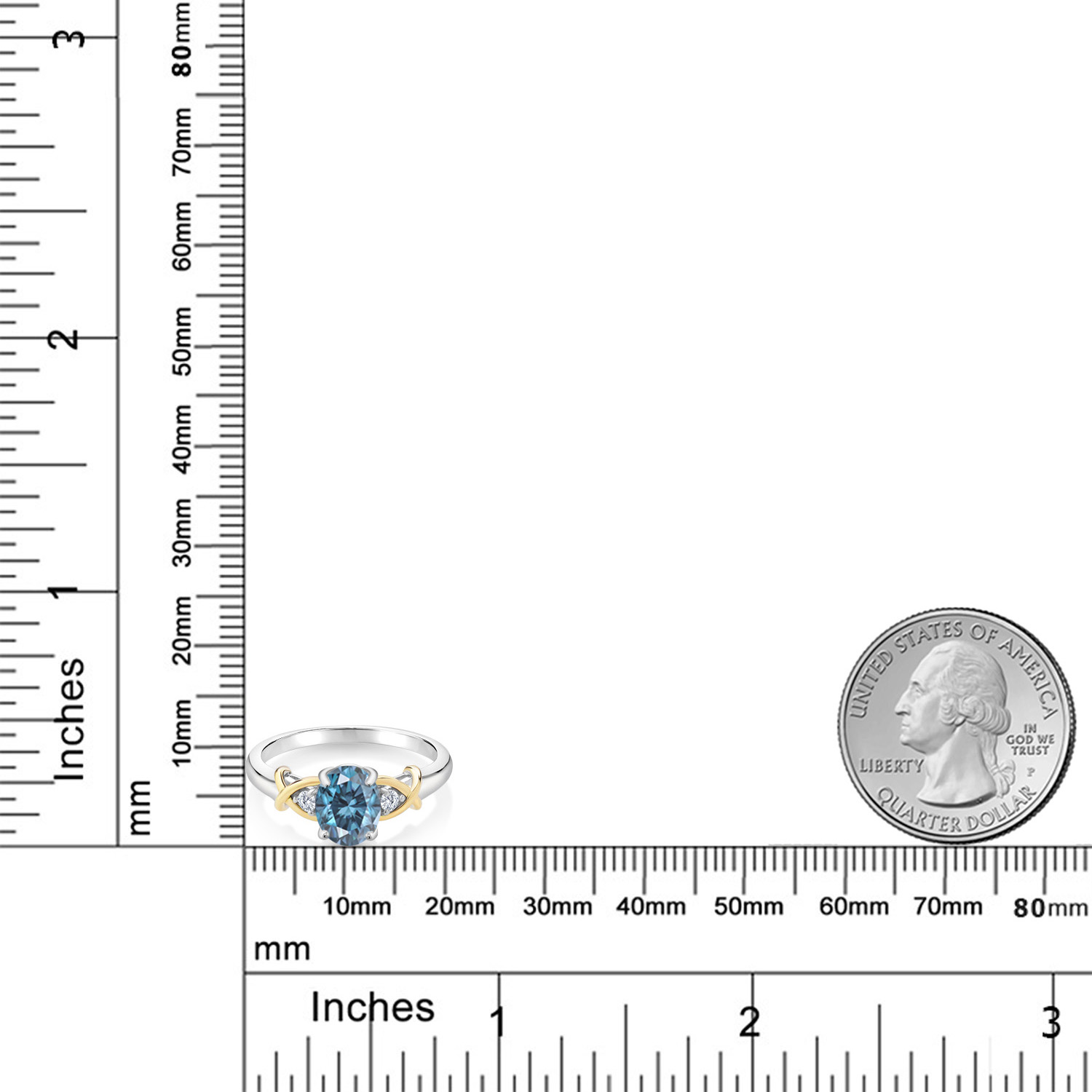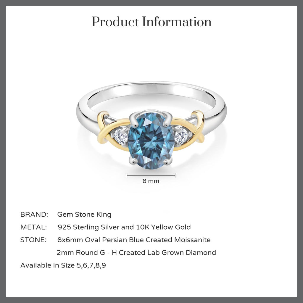 MEASUREMENTS: 8x6mm Oval Coated Persian Blue Moissanite, 2x2mm Round E - F Lab Grown Diamond. Total Carat Weight is 1.46 cttw