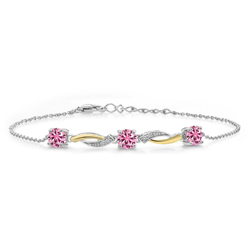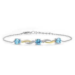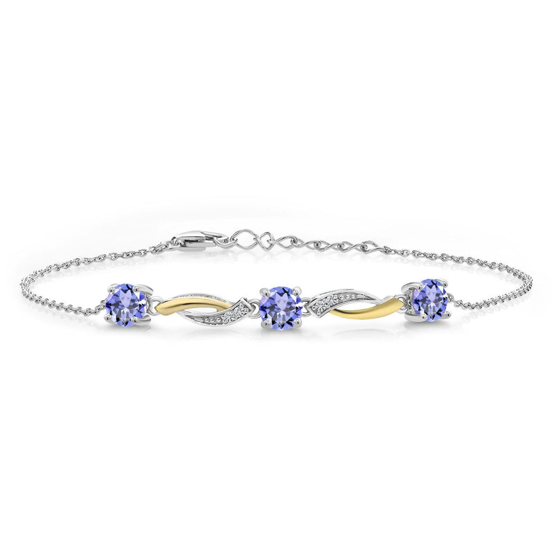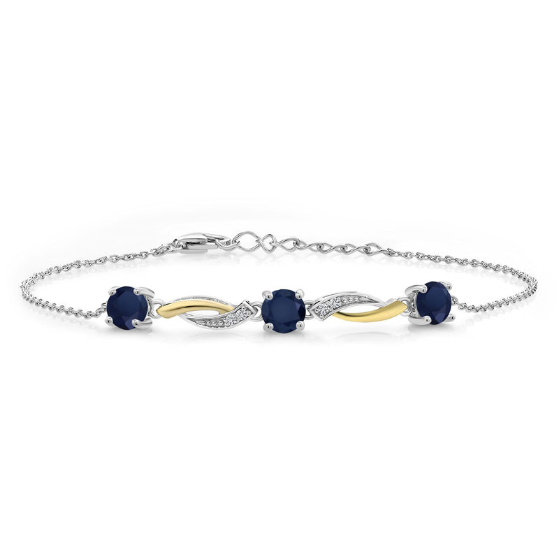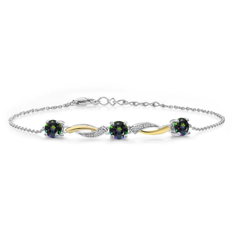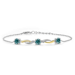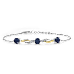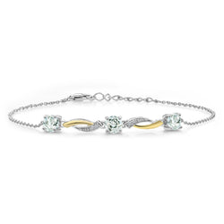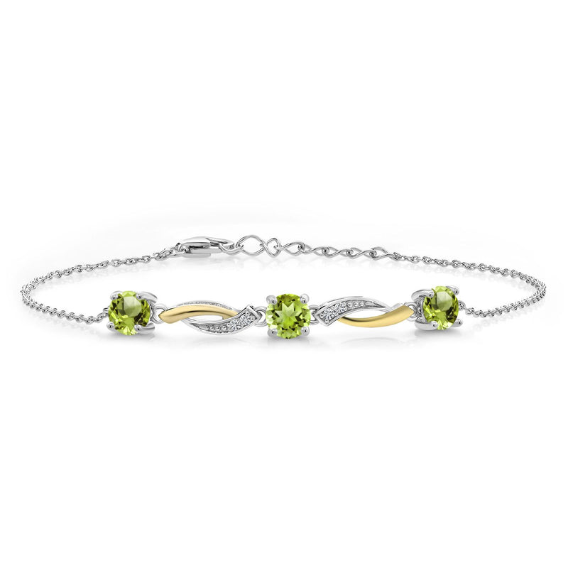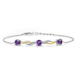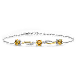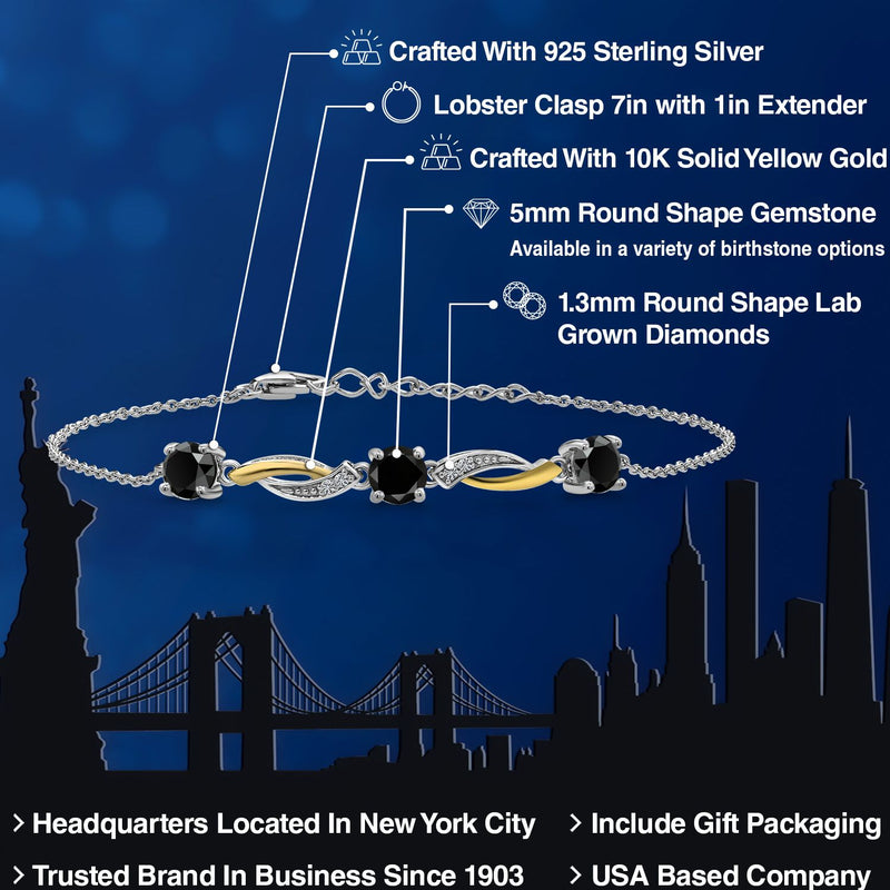 Gem Stone King 5MM Round Gemstone Birthstone and Lab Grown Diamond 925 Silver and 10K Yellow Gold Tennis Bracelet For Women | 7 Inch With 1 Inch Extender
