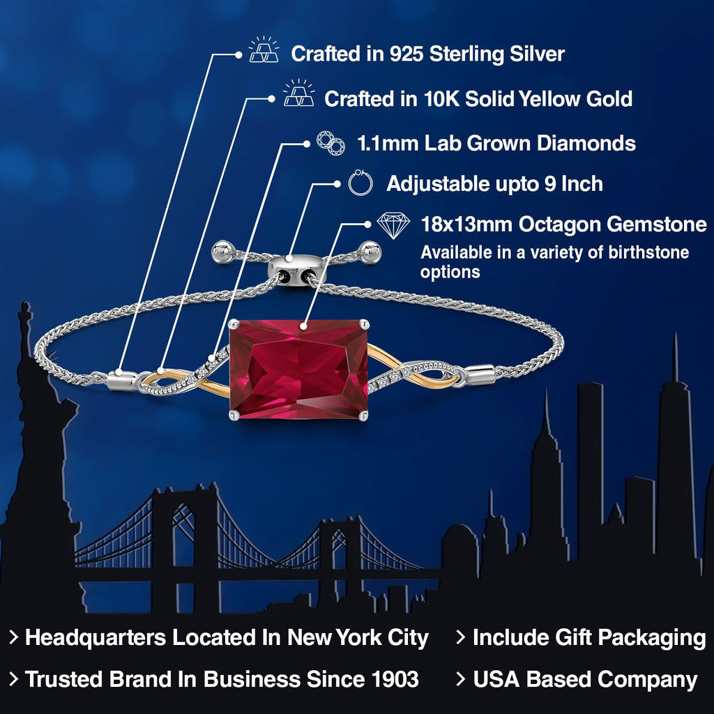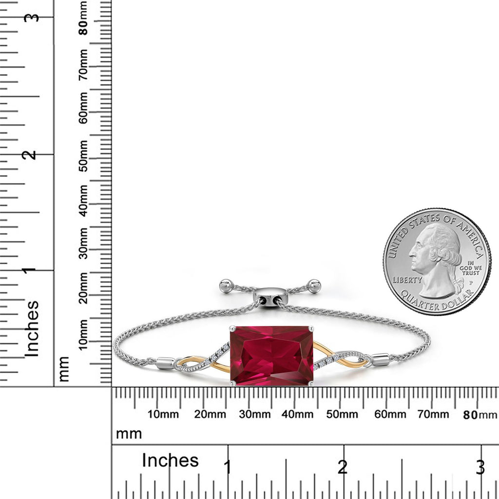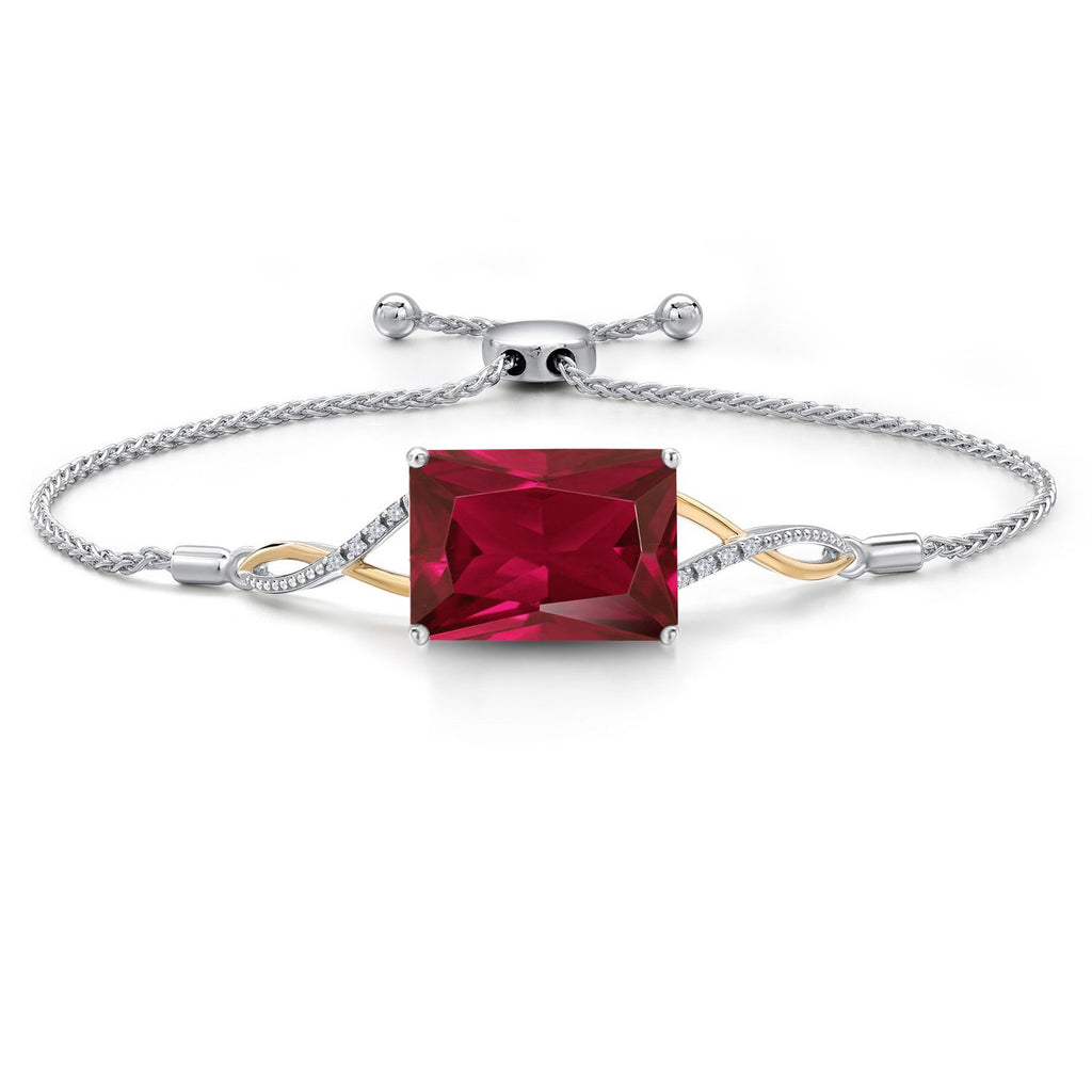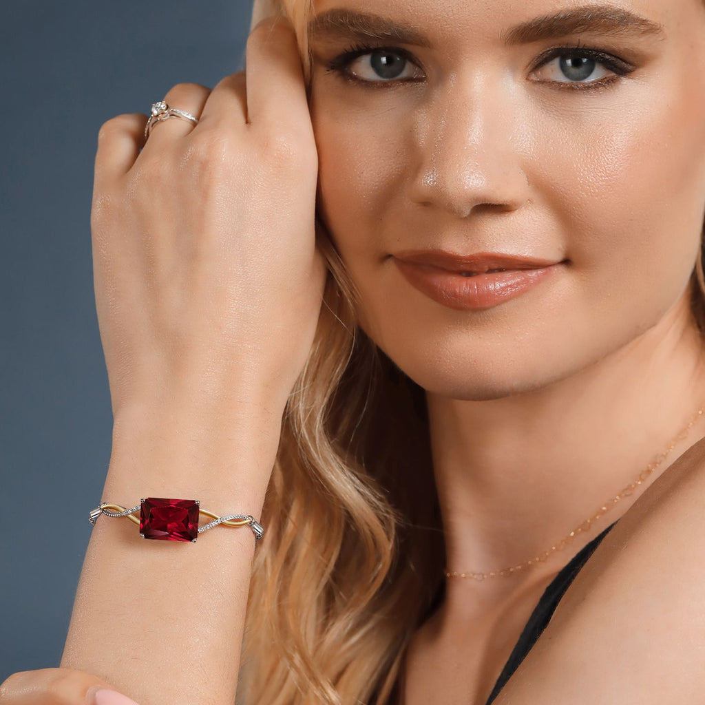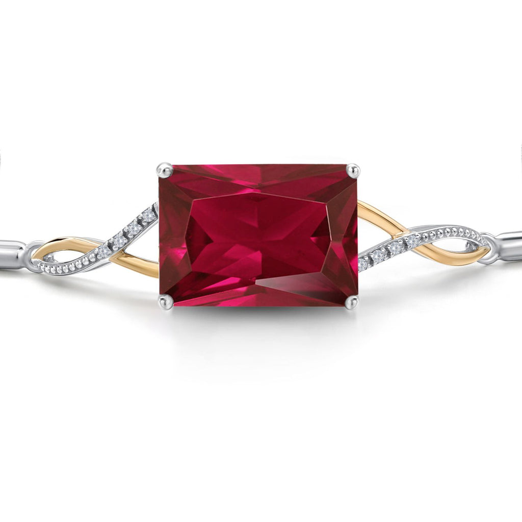 20.06 Ct Red Created Ruby G/H Lab Grown Diamond 925 Silver and 10K Yellow Gold Bracelet