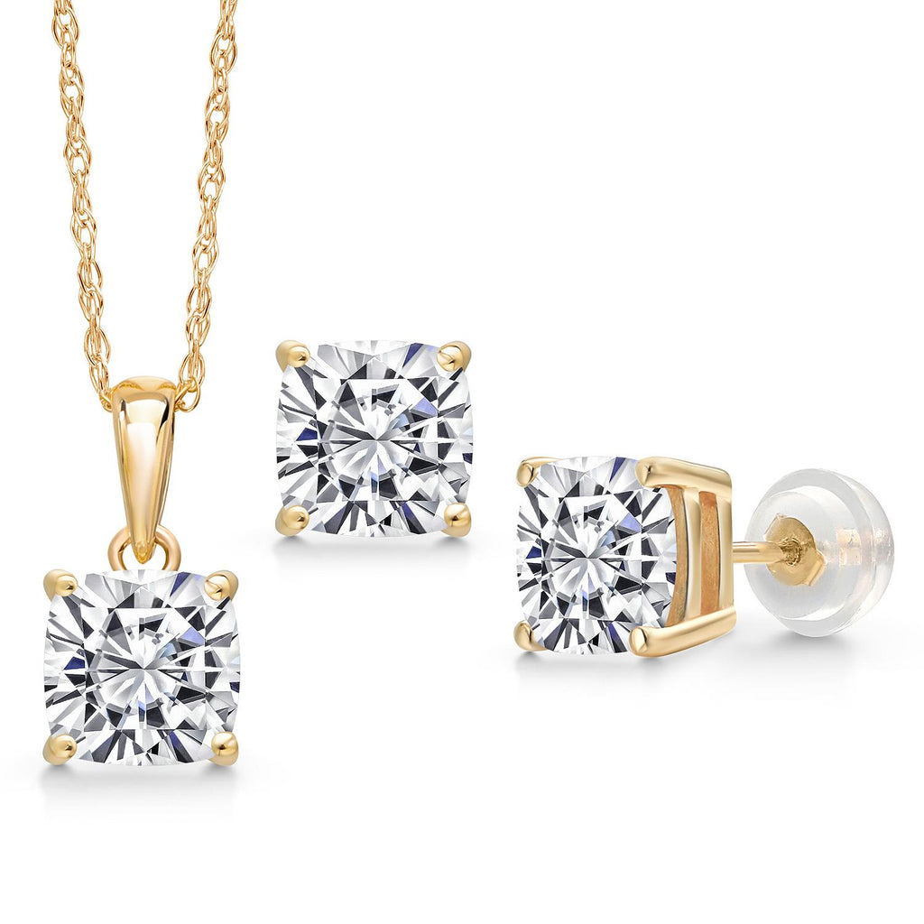 CUSHION CUT 6MM LAB GROWN DIAMONDS: This elegant pendant and earring set features sparkling 6mm cushion-cut lab grown diamonds totaling 3.00 carats, showcasing E-F color and VS1-VS2 clarity for remarkable brilliance and fire.
