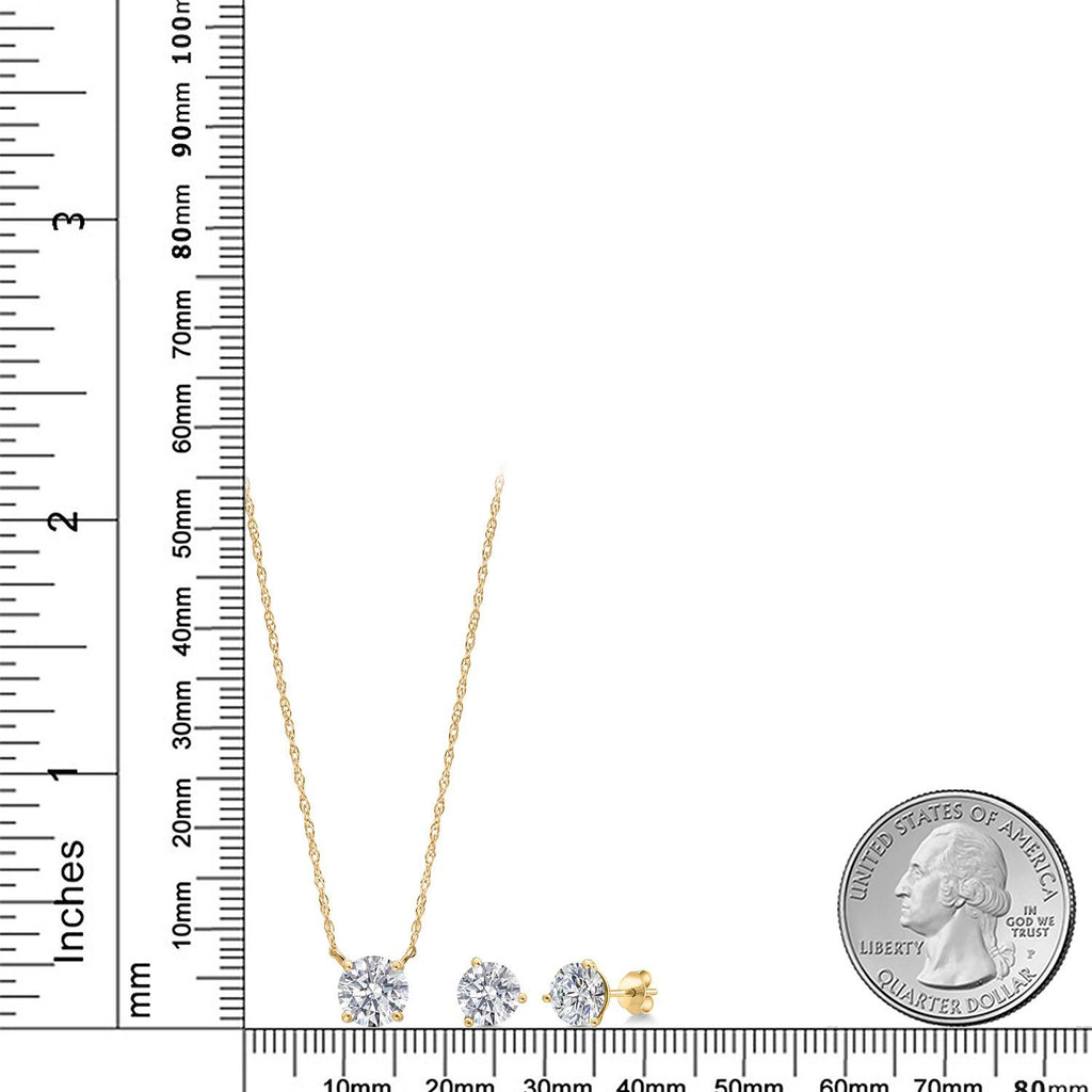 3.00 Cttw IGI Certified Lab Grown Diamond in 14K Yellow Gold Pendant Earrings Set for Women | Round | E-F Color | VS1-VS2 Clarity | Gold Necklace for Women | 18 Inch Chain