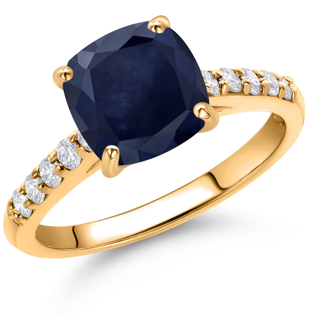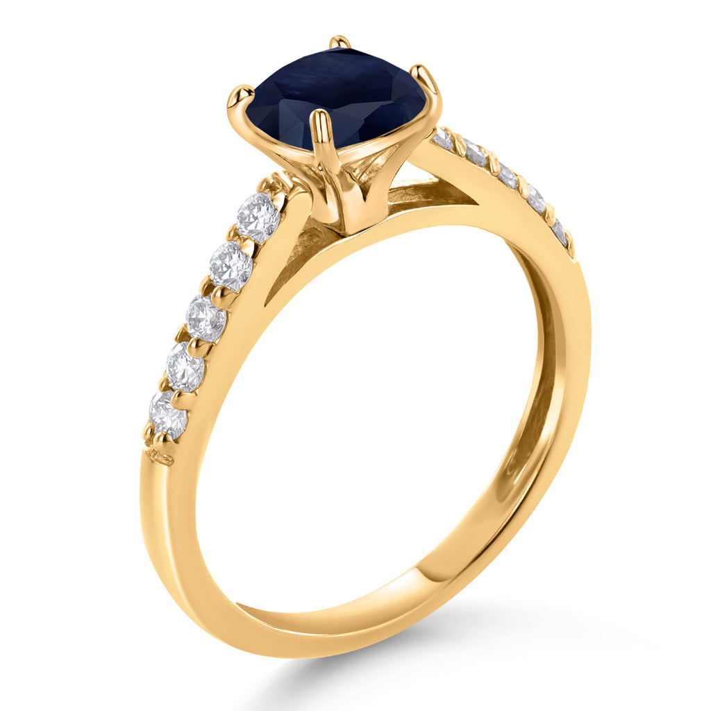 LUSTROUS 10K YELLOW GOLD SETTING: The ring is crafted in warm and radiant 10K yellow gold, providing a classic and durable setting that enhances the unique beauty of the blue sapphire and the sparkle of the diamonds.