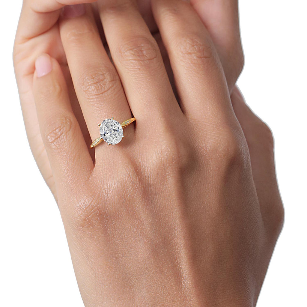 UNMATCHED BRILLIANCE AND QUALITY: This exquisite engagement ring features a stunning 3 Cttw oval-cut lab grown diamond as the centerpiece, certified by the International Gemological Institute (IGI). With E-F Color and VS1-VS2 Clarity, the diamond offers exceptional brilliance and sparkle, making it a truly eye-catching piece.