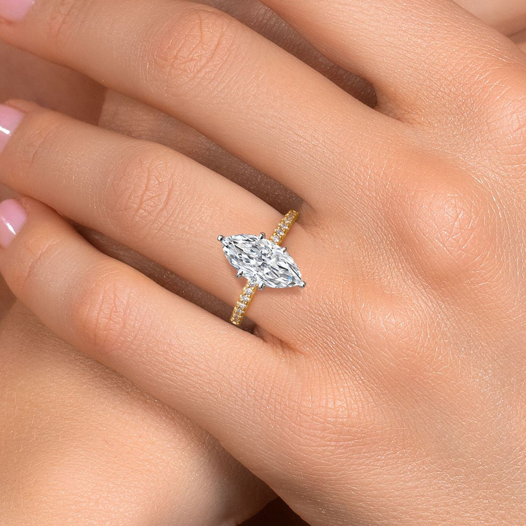 TWO-TONE GOLD CRAFTSMANSHIP: Expertly crafted in 14K gold, the design pairs a polished yellow gold band with a white gold head that enhances the diamond’s sparkle. This blend of metals adds dimension, durability, and timeless elegance to the engagement ring’s modern design.
