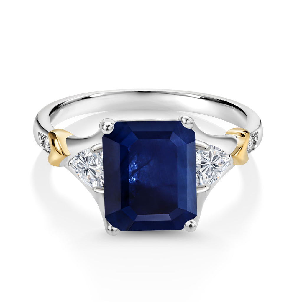2-Tone Engagement Ring For Women | 925 Silver and 10K Yellow Gold | Gemstone Birthstone | 6MM Cushion Cut | Wedding Anniversary Promise Ring | Available In Size 5, 6, 7, 8, 9