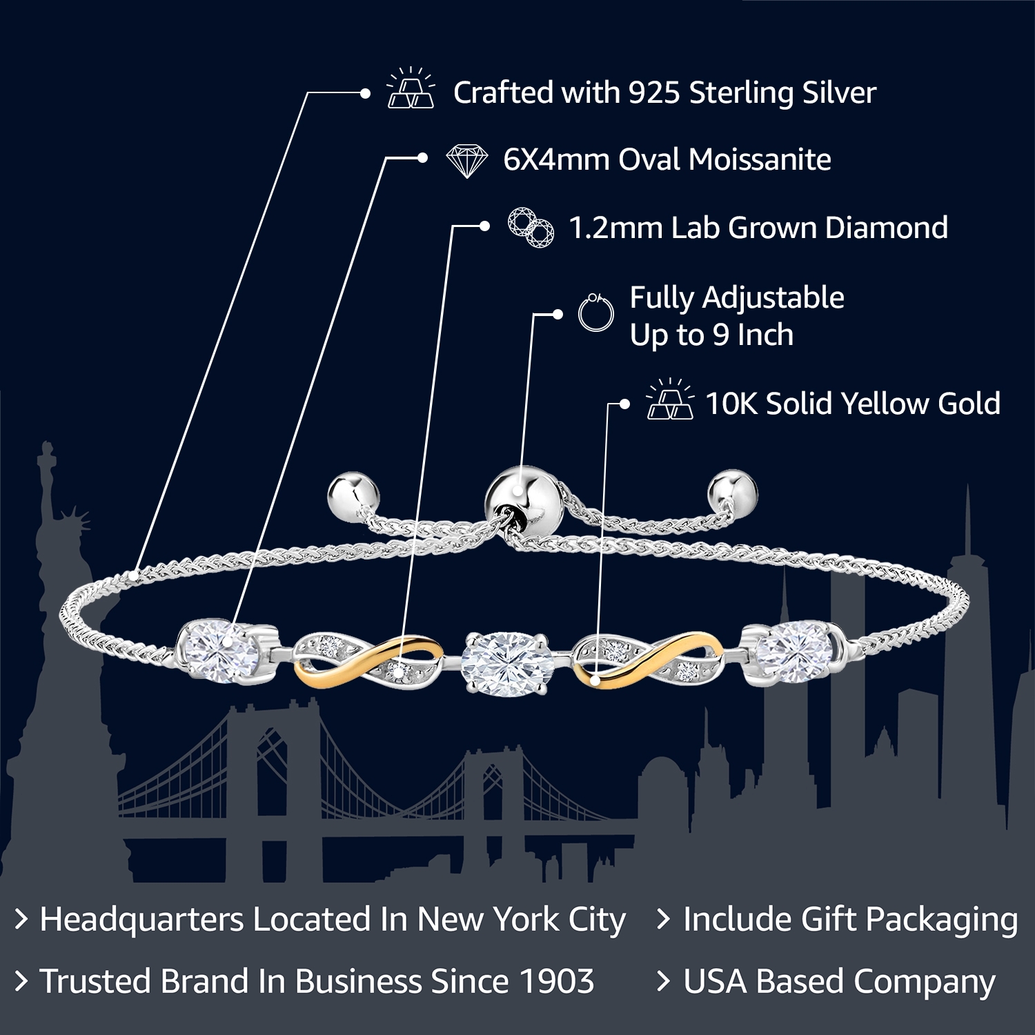 PREMIUM TWO-TONE METAL CRAFTSMANSHIP: Featuring 925 silver and 10K yellow gold, this bracelet combines hypoallergenic properties with tarnish resistance. Its durable construction ensures long-lasting beauty, making it ideal for everyday wear and effortless elegance.
