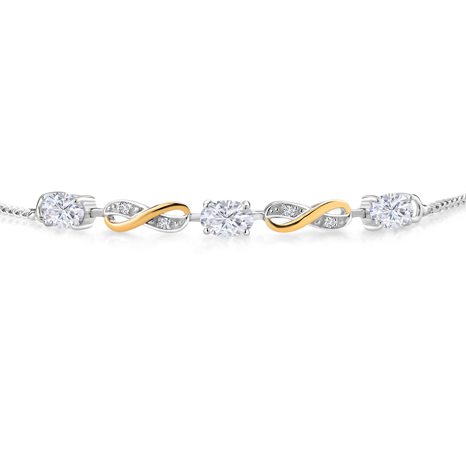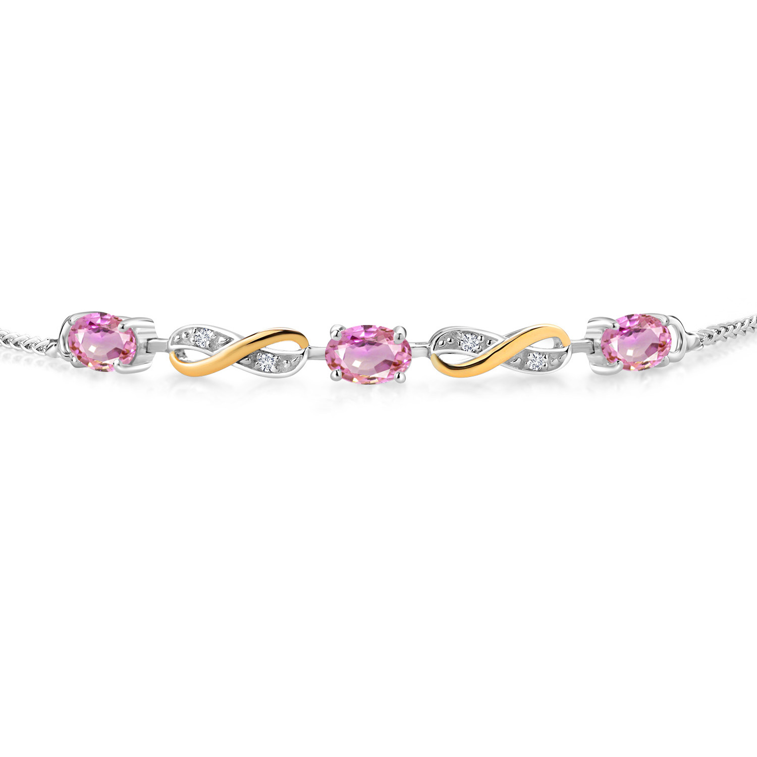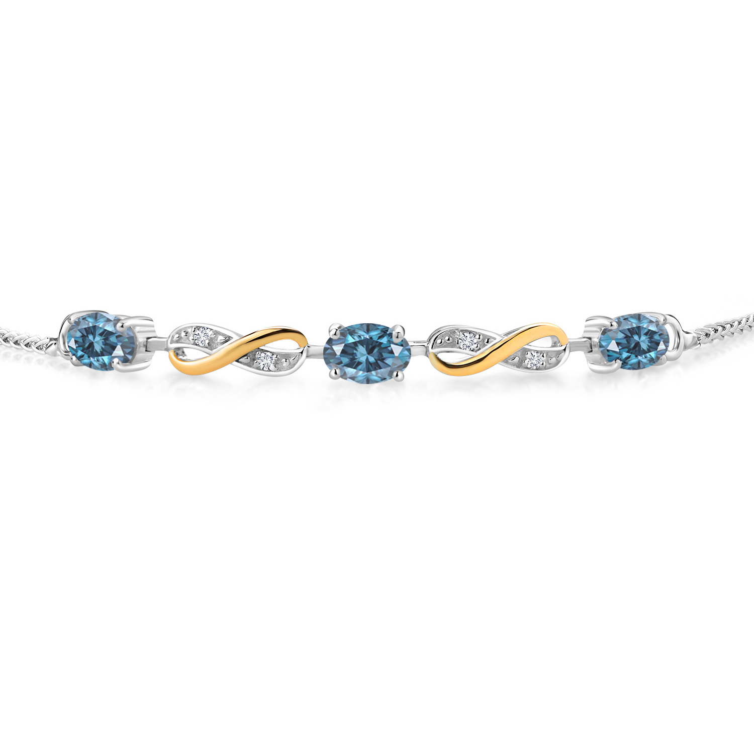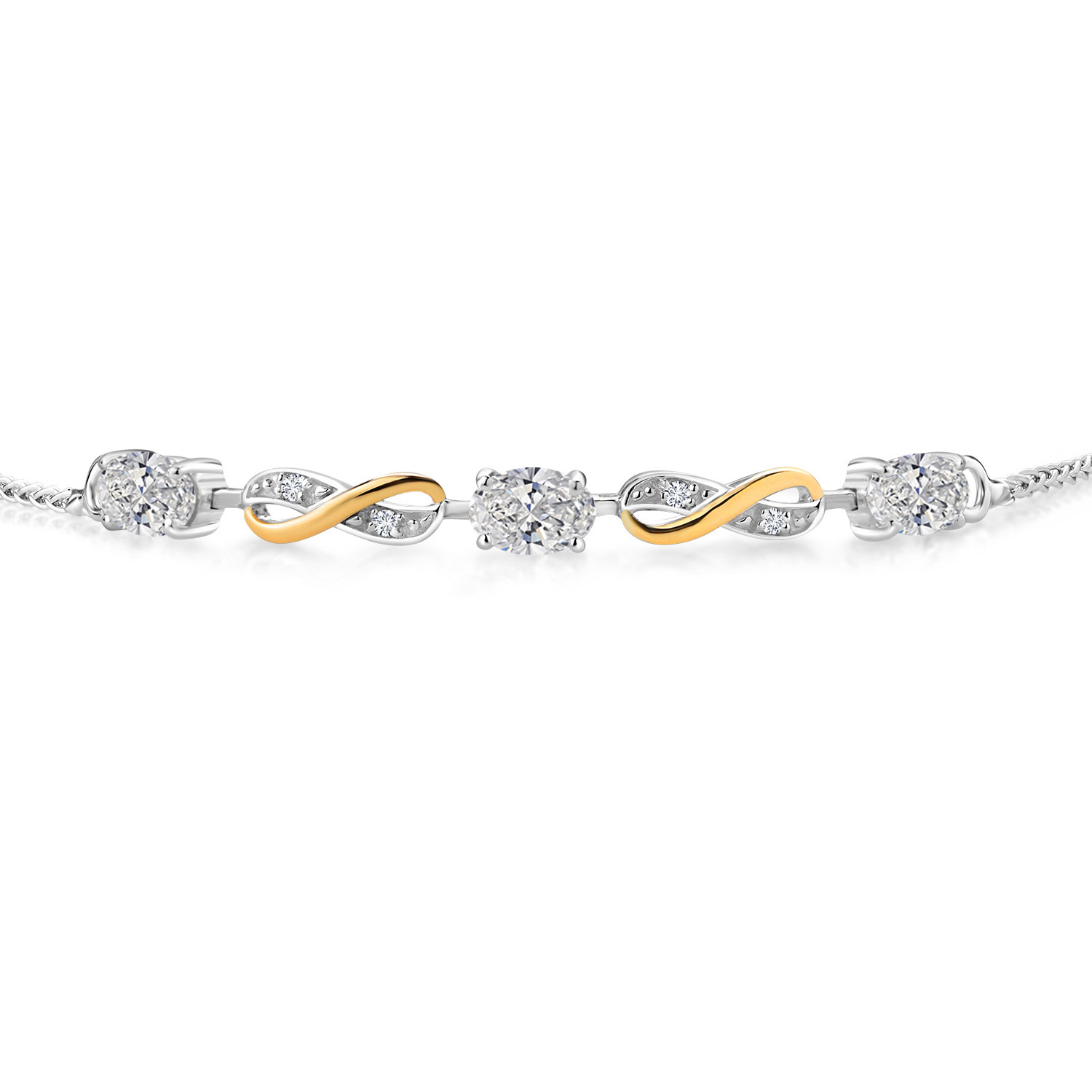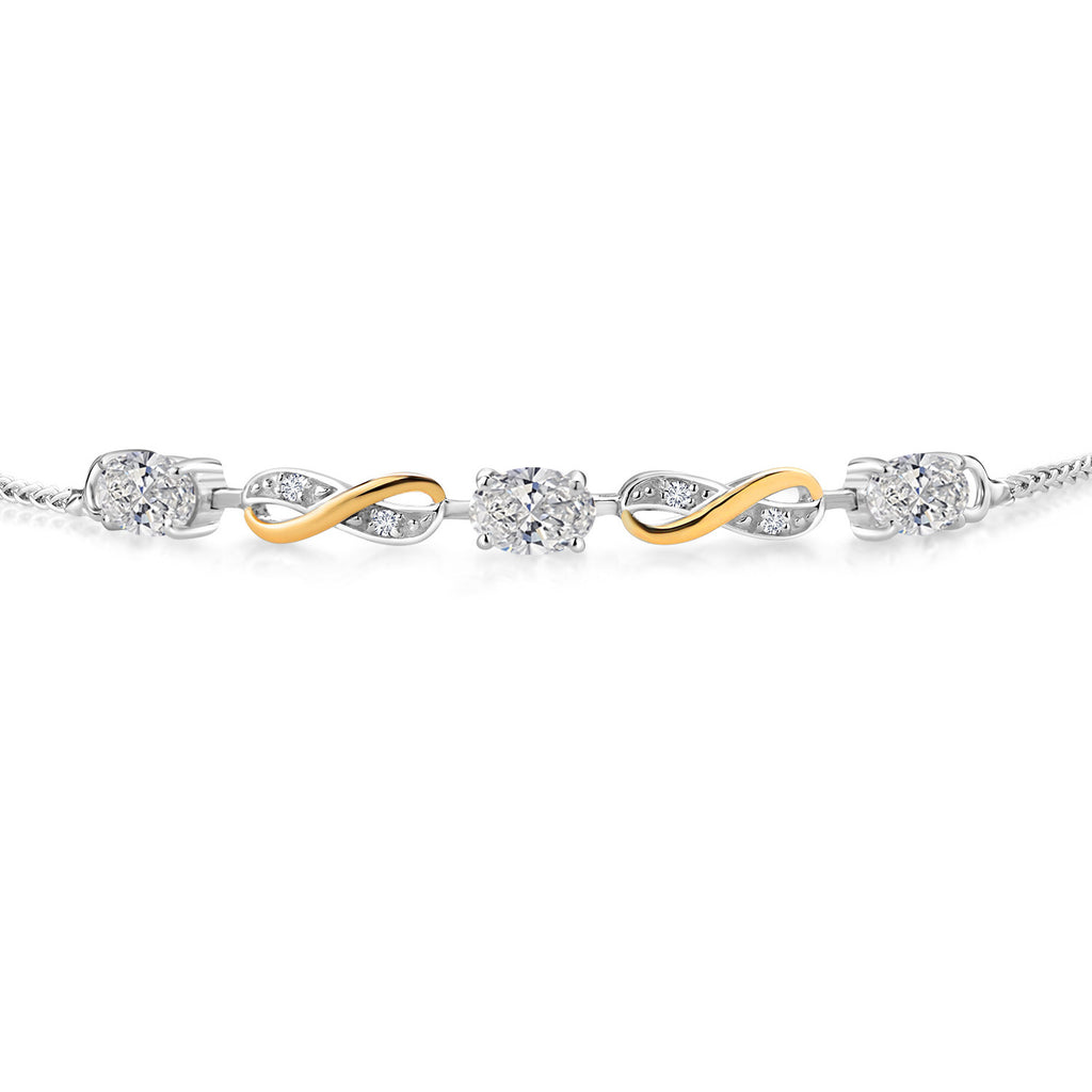 INFINITY DESIGN WITH DIAMOND ACCENTS: The sophisticated infinity motif, enhanced by lab-grown diamond accents, creates a harmonious blend of elegance and sparkle. The two-tone design highlights the gemstones, offering a timeless aesthetic that complements any wardrobe.
