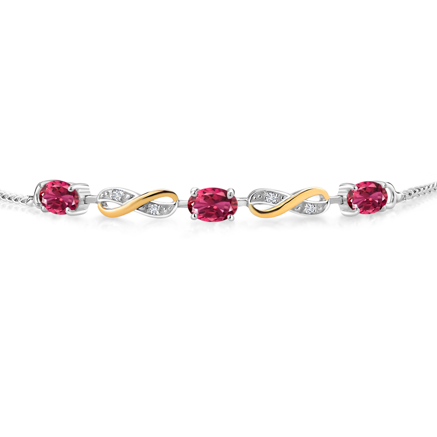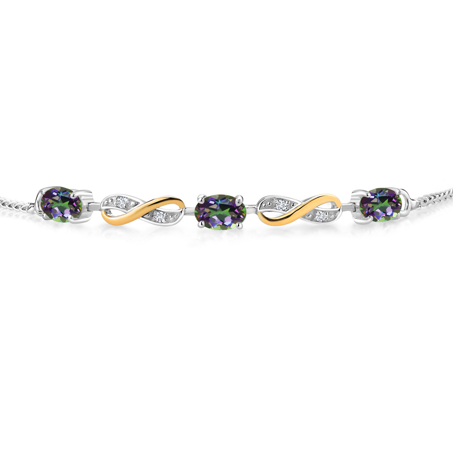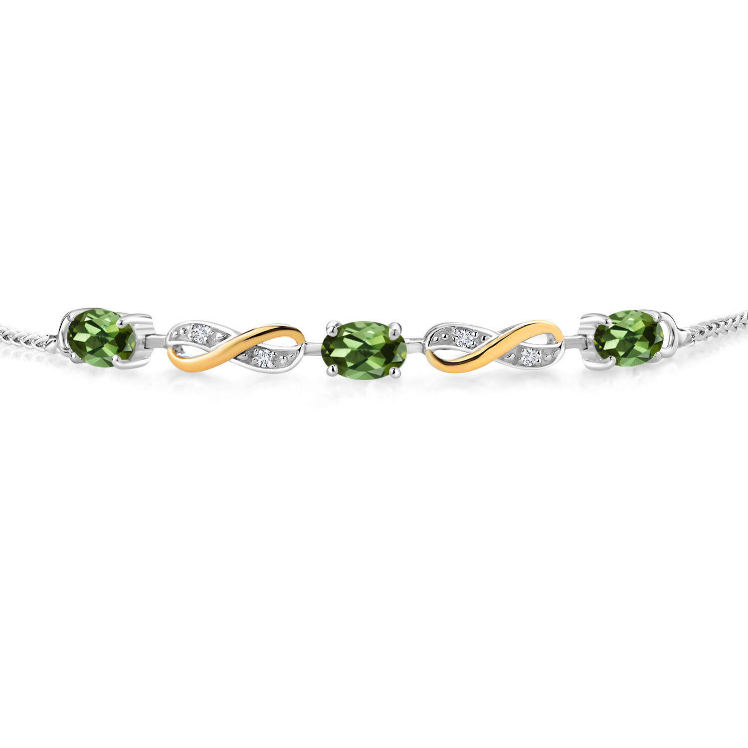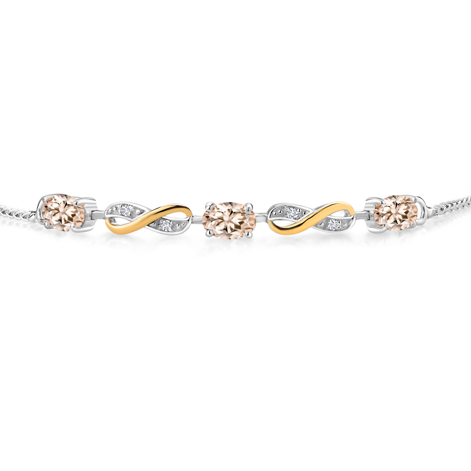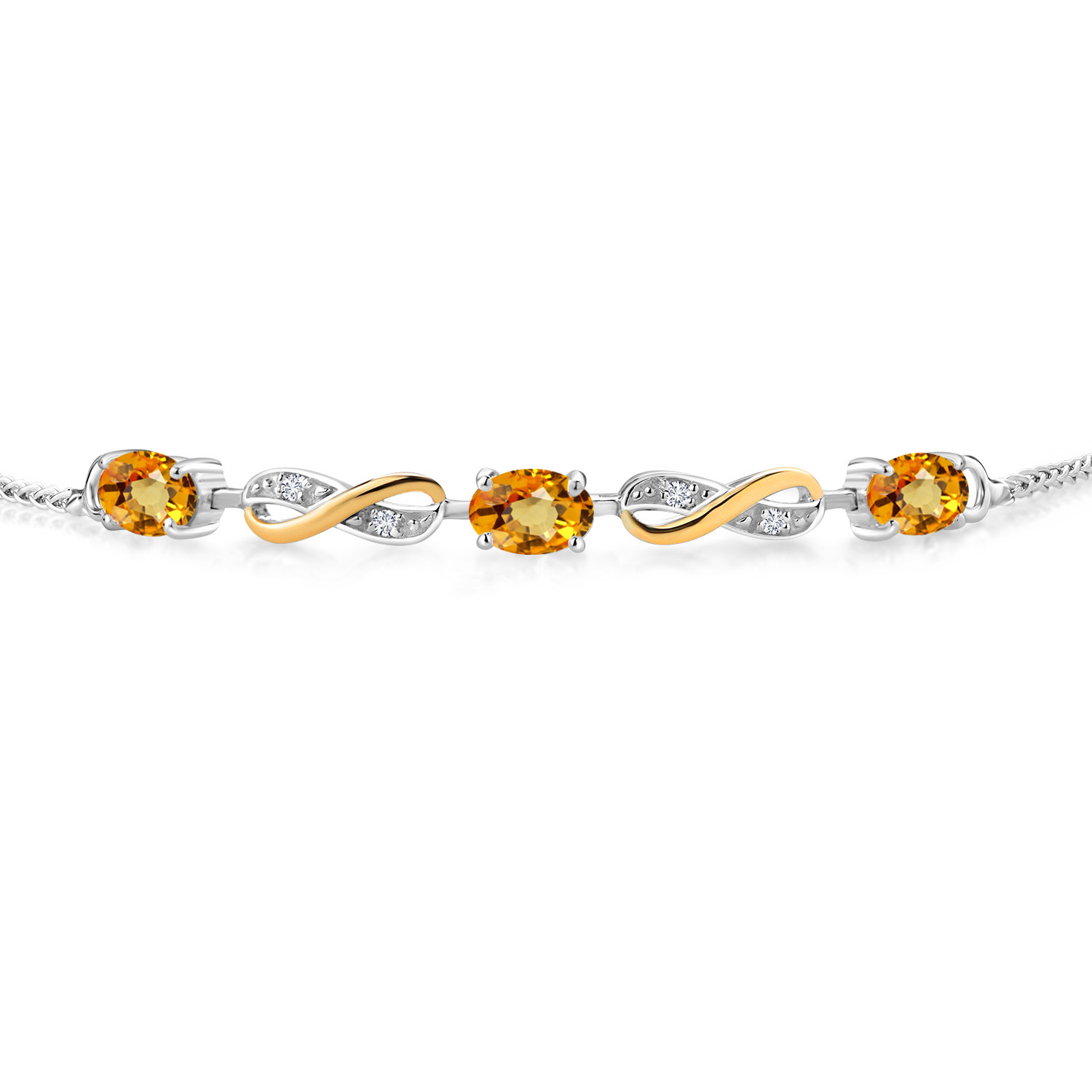 INFINITY DESIGN WITH DIAMOND ACCENTS: The sophisticated infinity motif, enhanced by lab-grown diamond accents, creates a harmonious blend of elegance and sparkle. The two-tone design highlights the gemstones, offering a timeless aesthetic that complements any wardrobe.