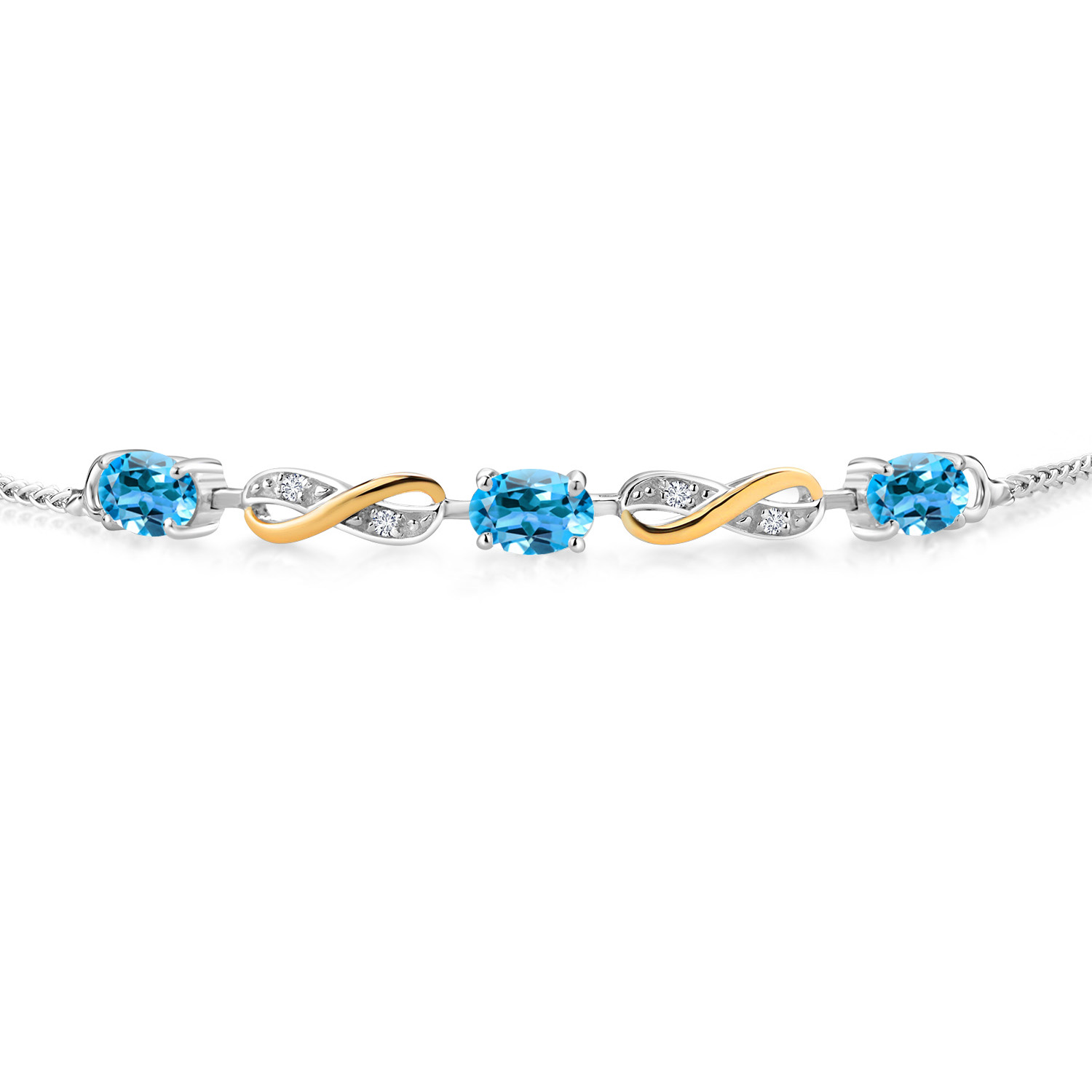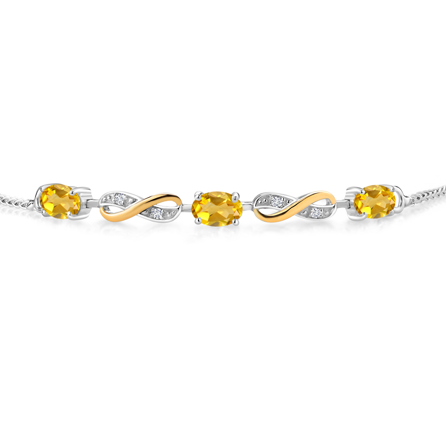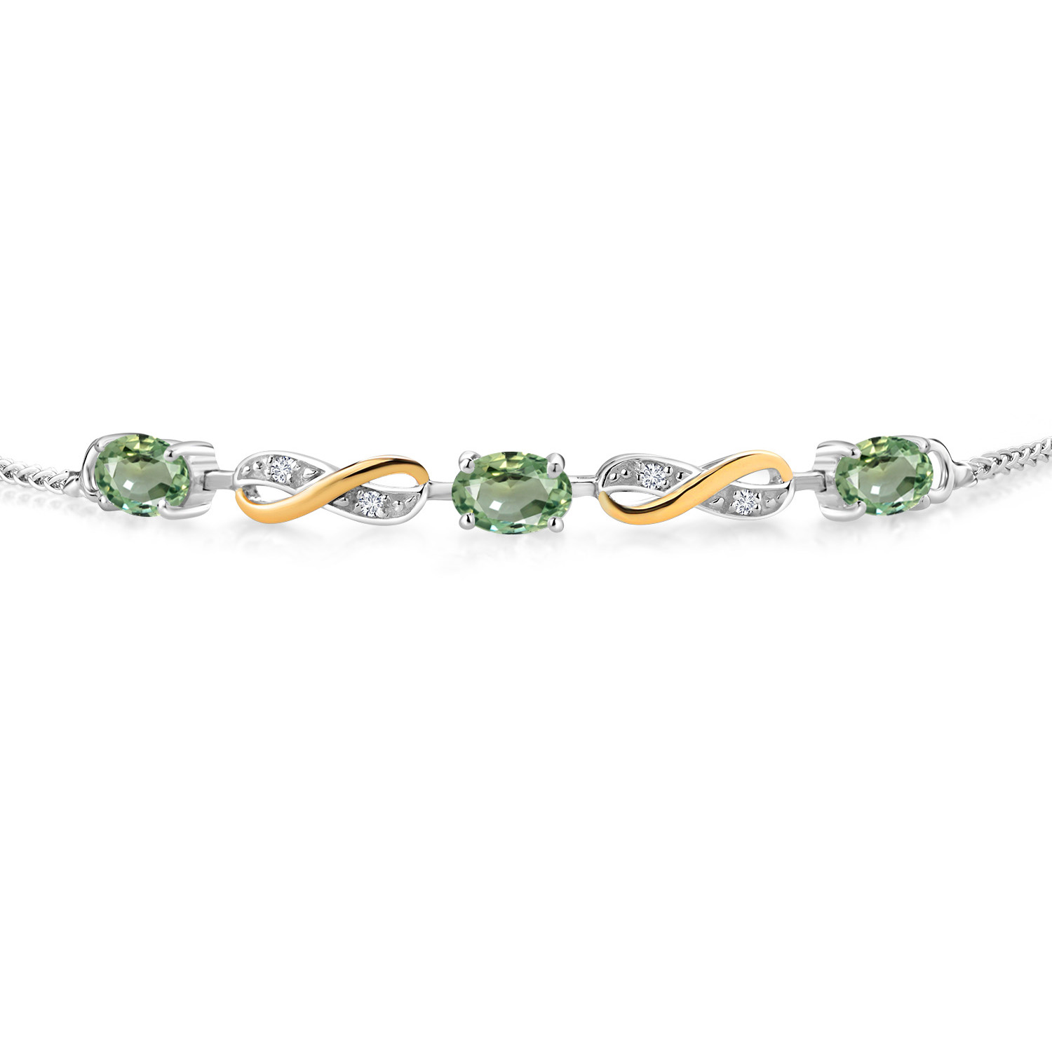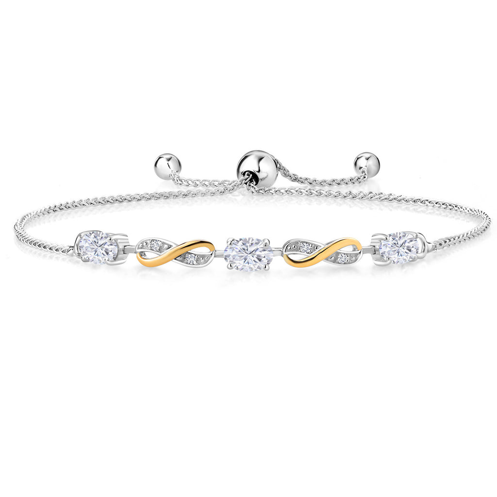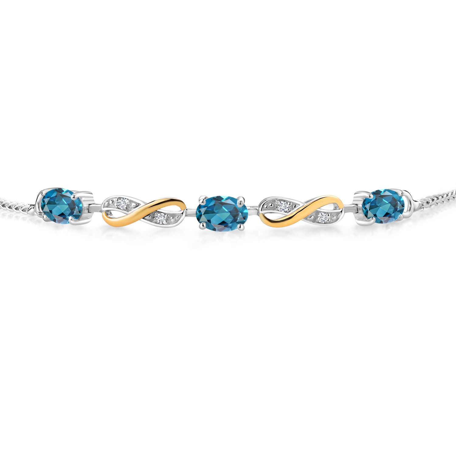 INFINITY DESIGN WITH DIAMOND ACCENTS: The sophisticated infinity motif, enhanced by lab-grown diamond accents, creates a harmonious blend of elegance and sparkle. The two-tone design highlights the gemstones, offering a timeless aesthetic that complements any wardrobe.