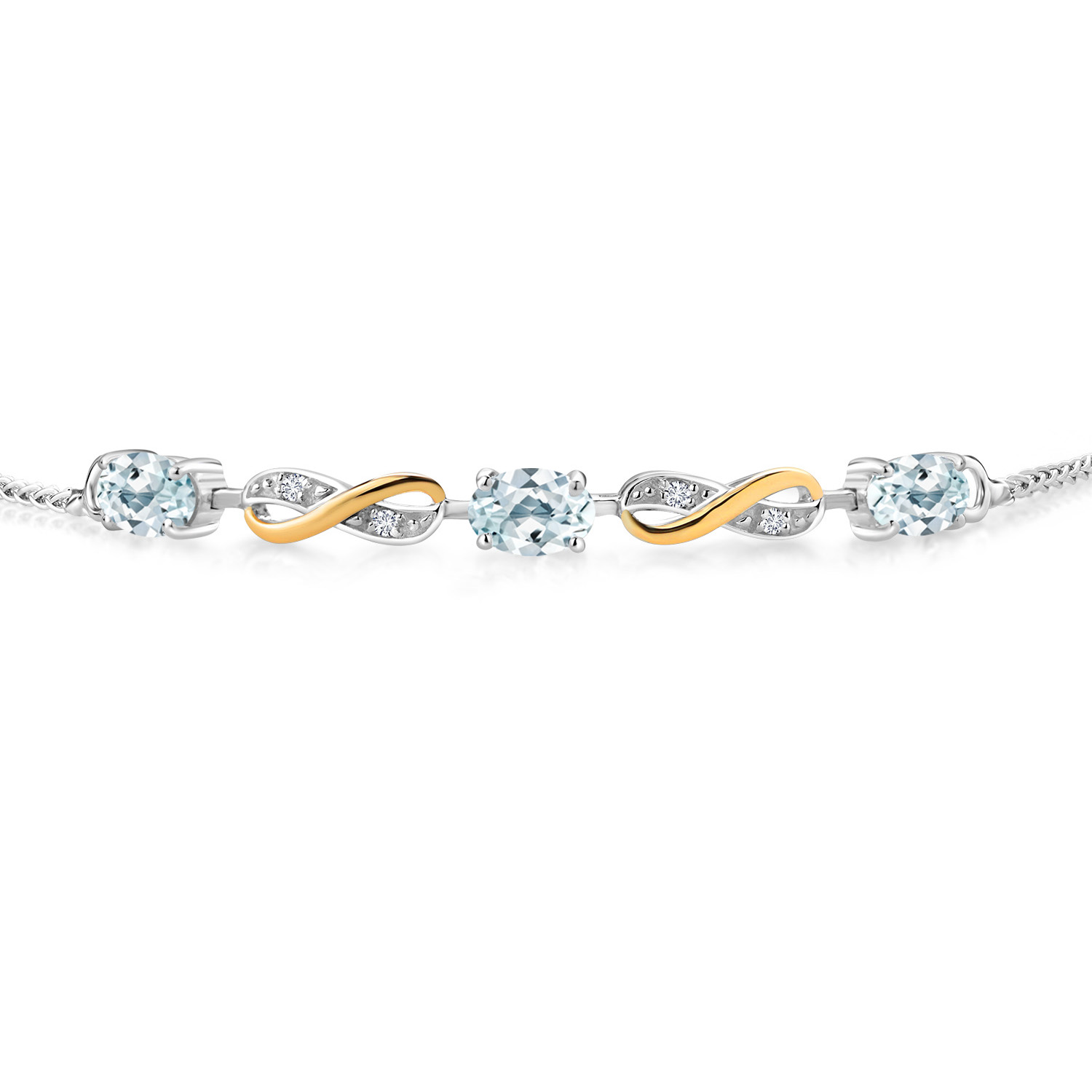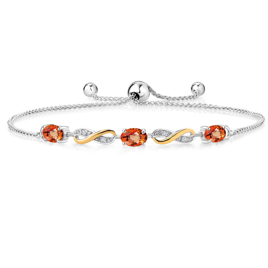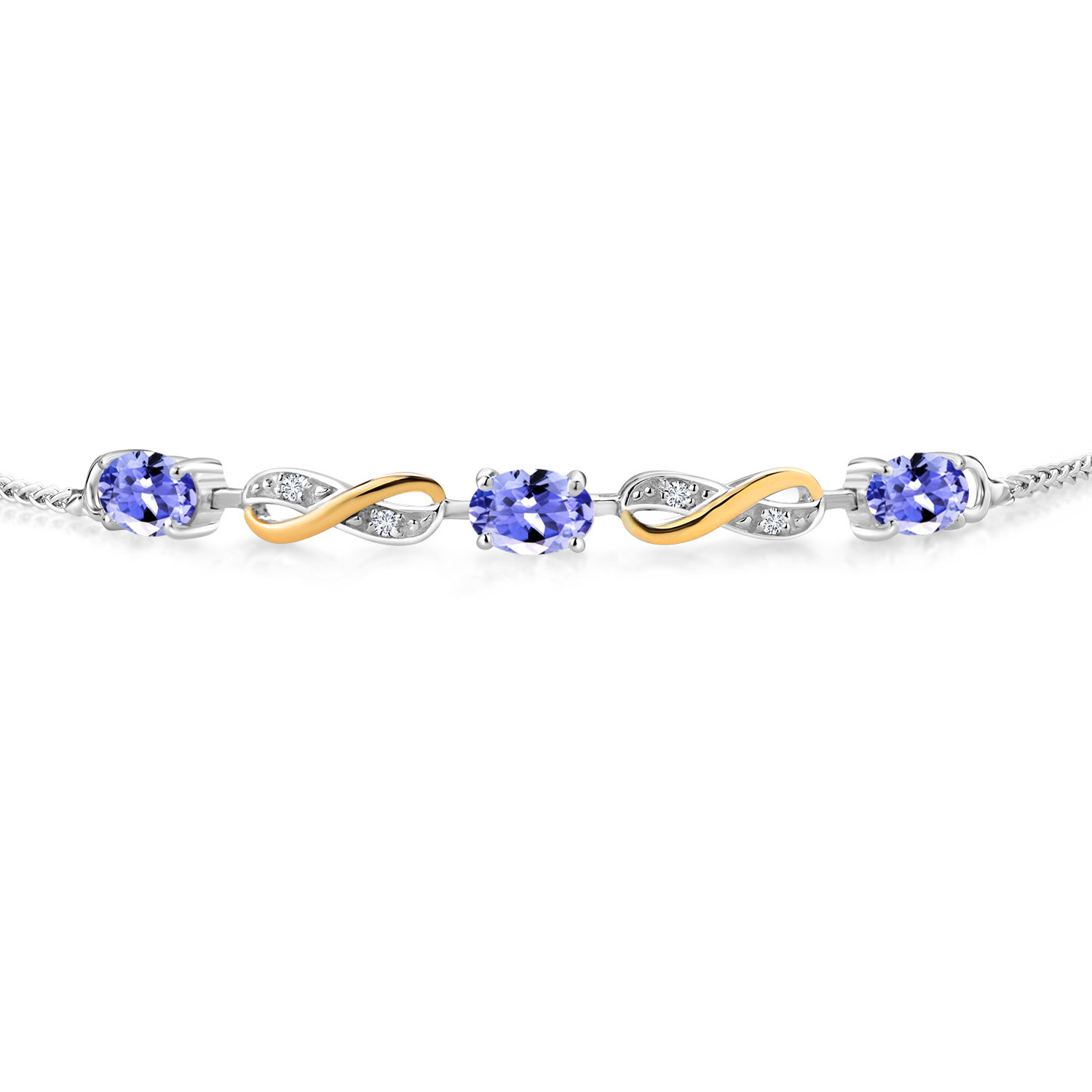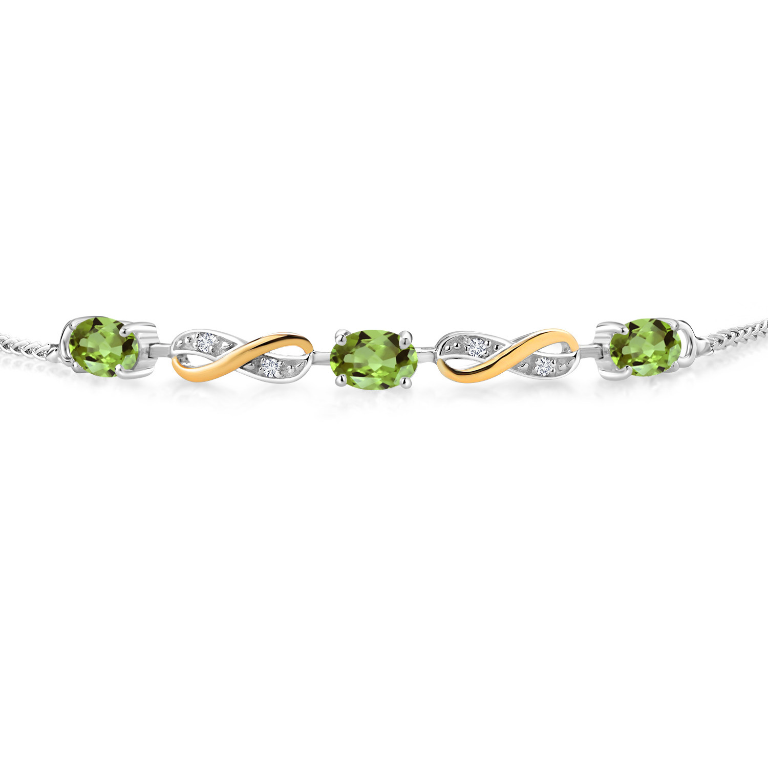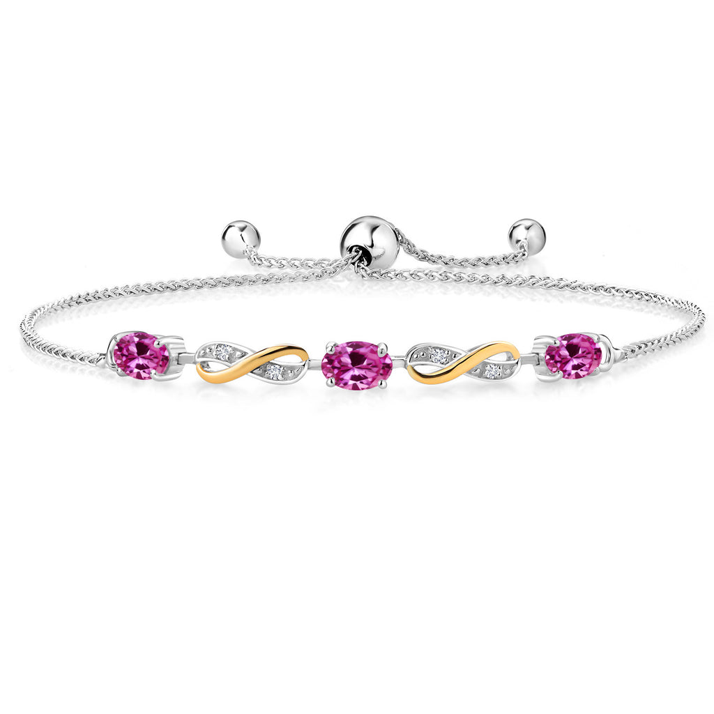 INFINITY DESIGN WITH DIAMOND ACCENTS: The sophisticated infinity motif, enhanced by lab-grown diamond accents, creates a harmonious blend of elegance and sparkle. The two-tone design highlights the gemstones, offering a timeless aesthetic that complements any wardrobe.