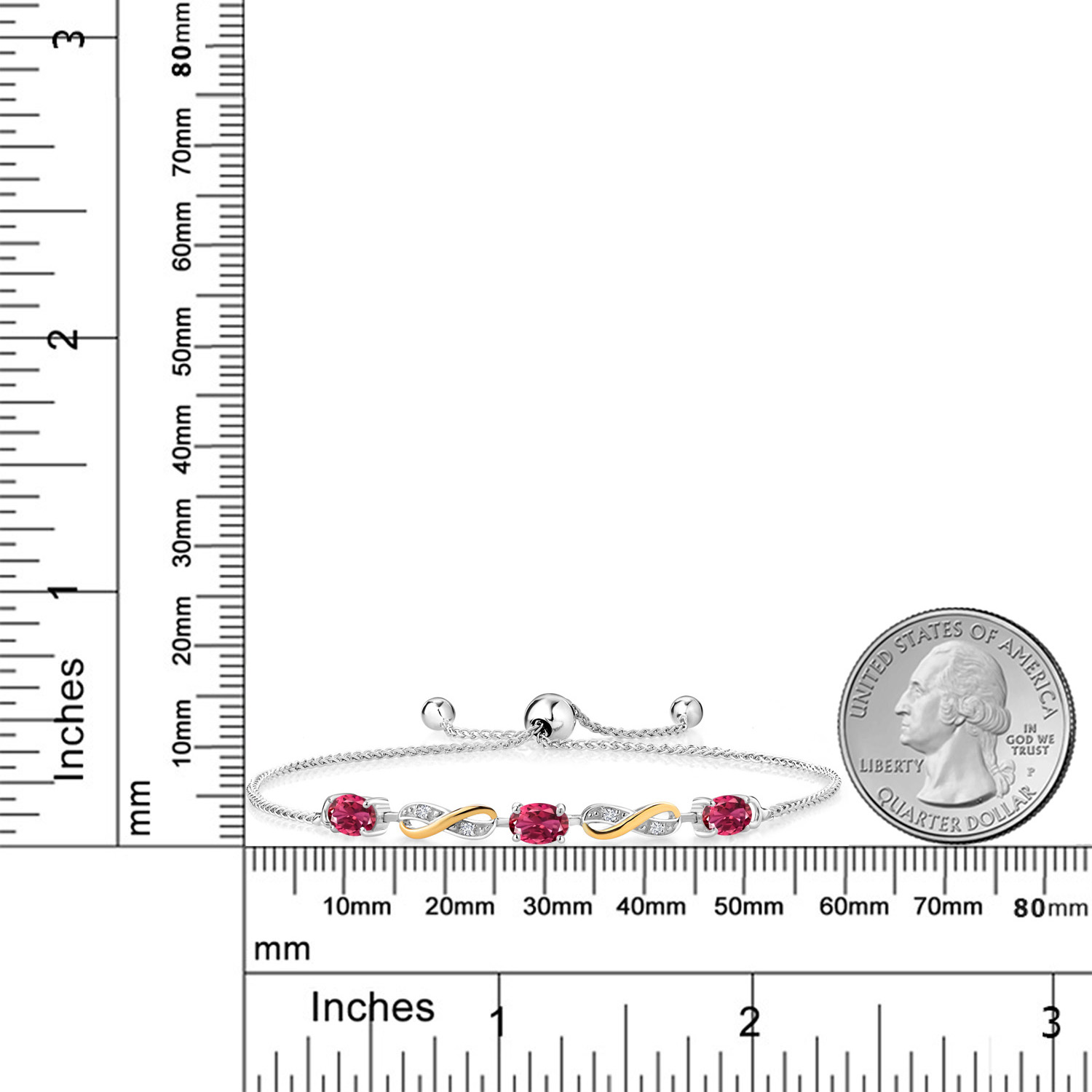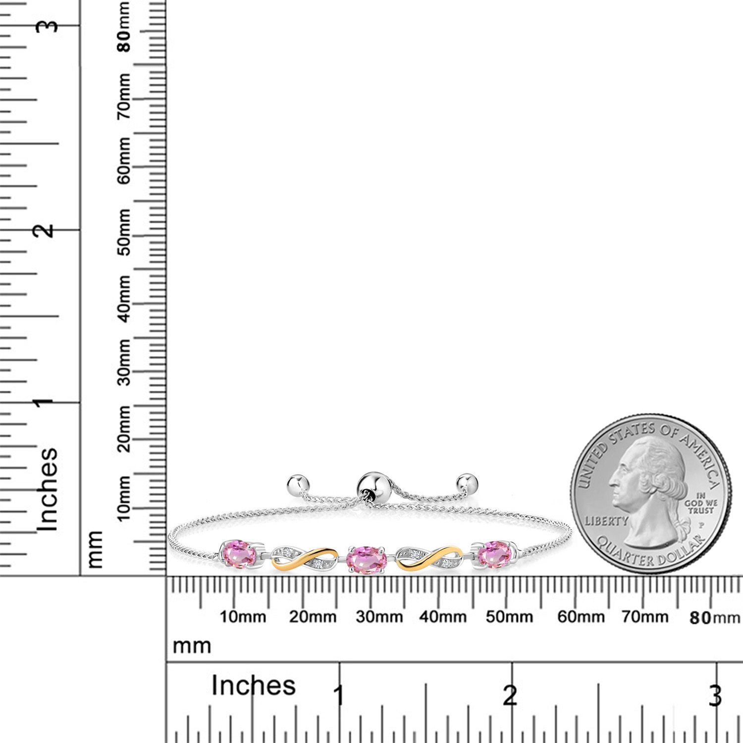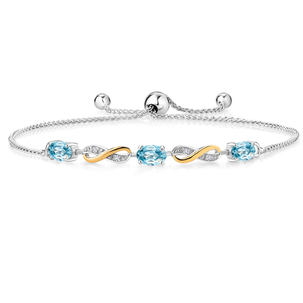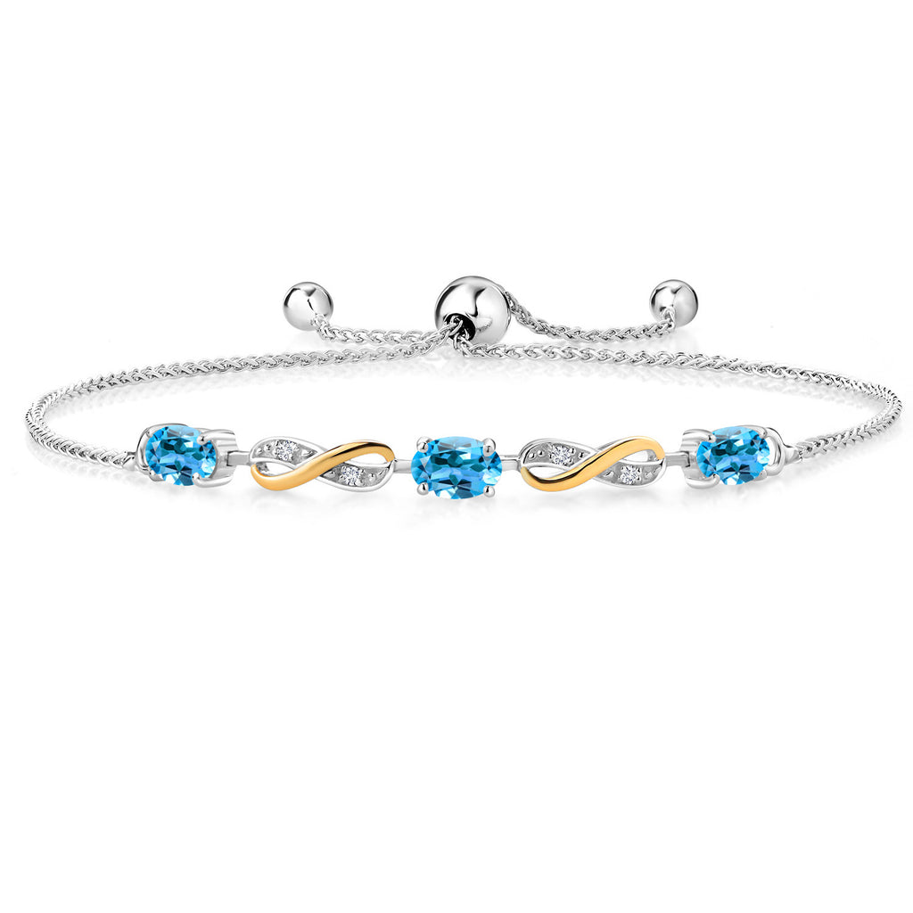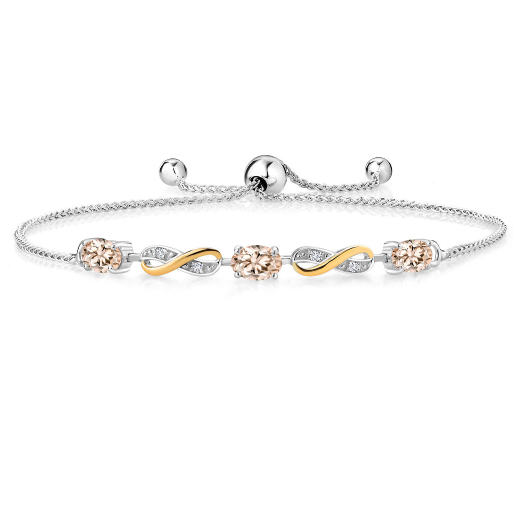 INFINITY DESIGN WITH DIAMOND ACCENTS: The sophisticated infinity motif, enhanced by lab-grown diamond accents, creates a harmonious blend of elegance and sparkle. The two-tone design highlights the gemstones, offering a timeless aesthetic that complements any wardrobe.