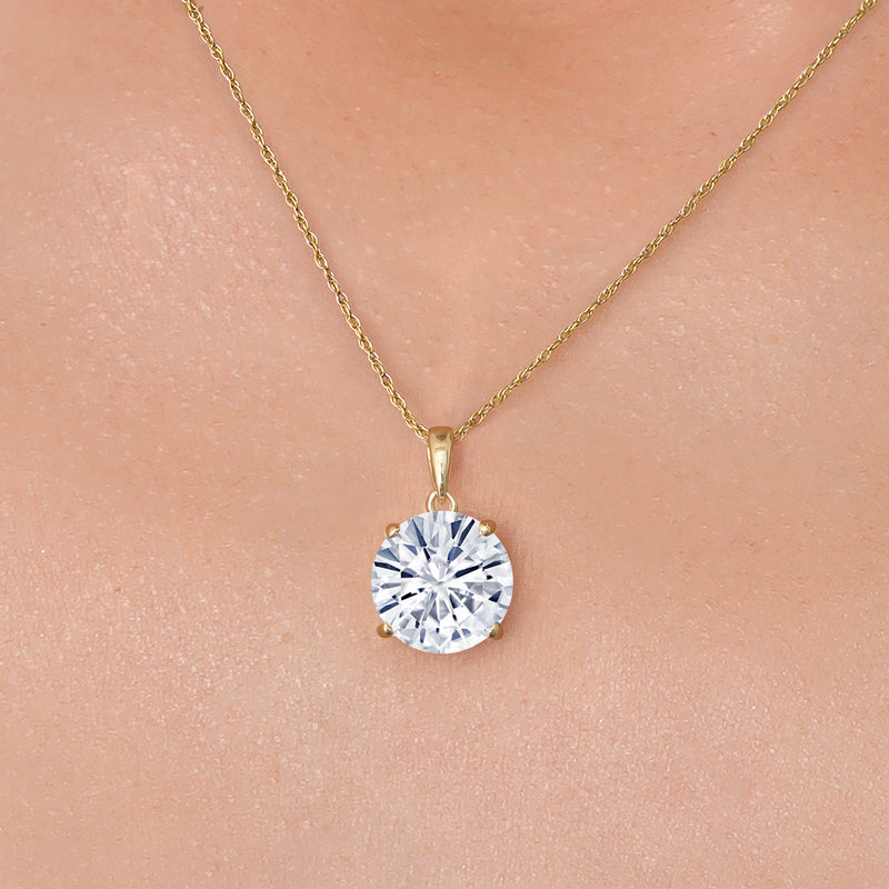 ELEGANT AND TIMELESS DESIGN: This 14K yellow gold pendant necklace features a breathtaking 4.00 Cttw round White Moissanite (10MM), offering unmatched brilliance and sophistication for any occasion.