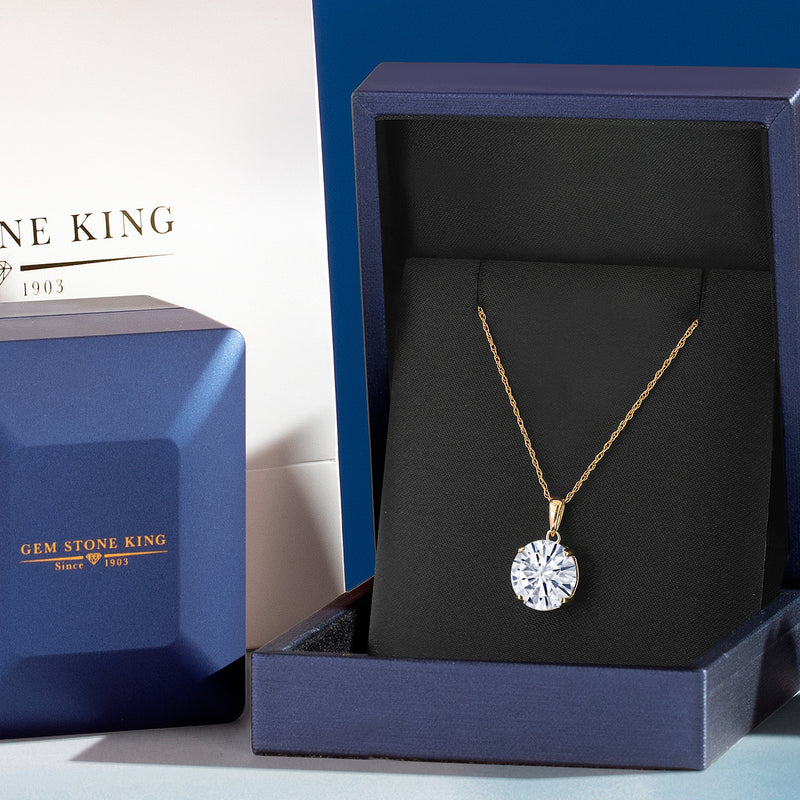 Gem Stone King 4.00 Cttw 14K Yellow Gold White Moissanite Pendant Necklace | Gemstone Birthstone | Round 10MM | Gold Necklace For Women | With 18 Inch Gold Chain