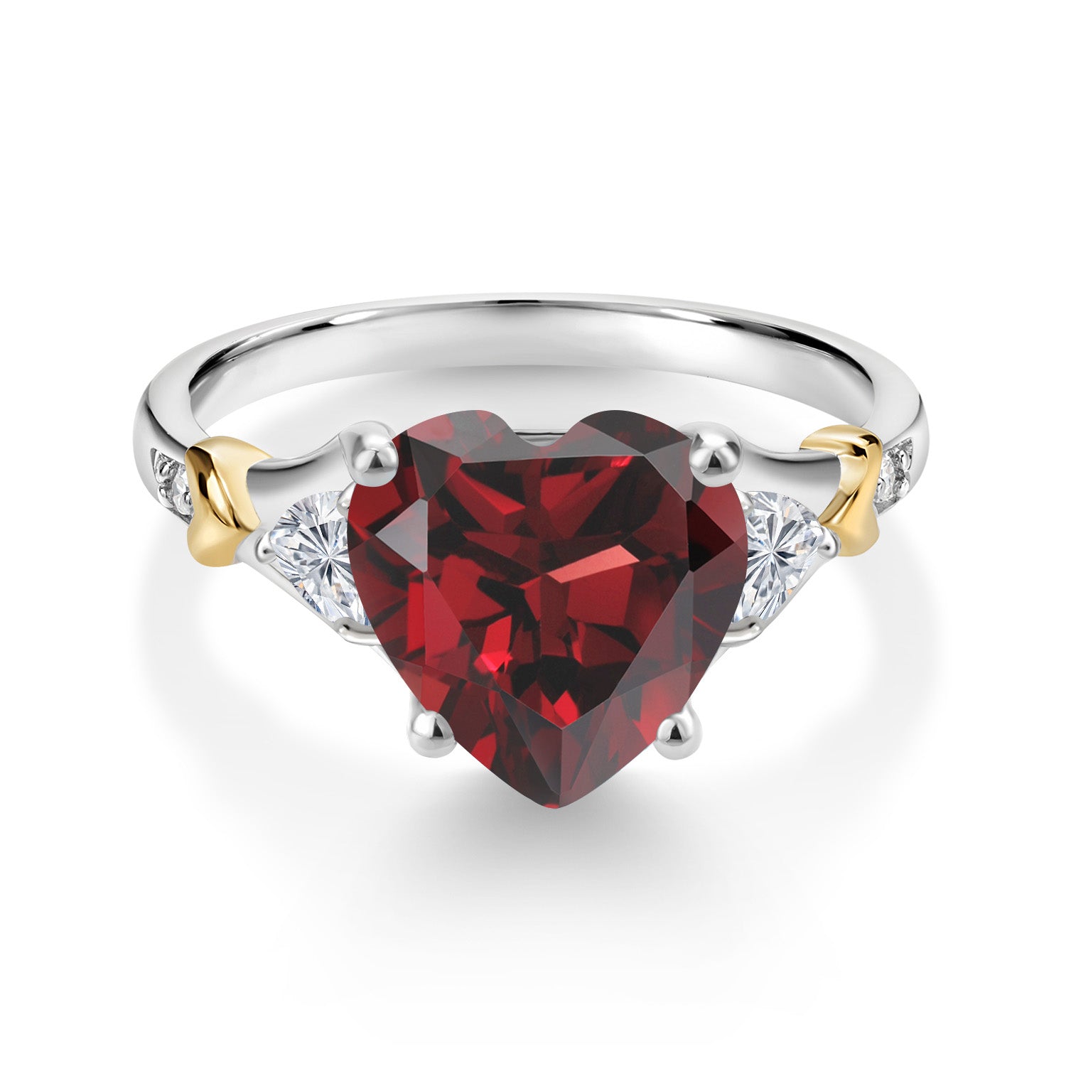 MEASUREMENTS: 10x10mm Heart Shape Red Garnet, 3.5x3.5mm Trillion DEF Lab Grown Diamond1.15, x, 1.15, mm Round White Diamond. Total Carat Weight is 4.3 cttw