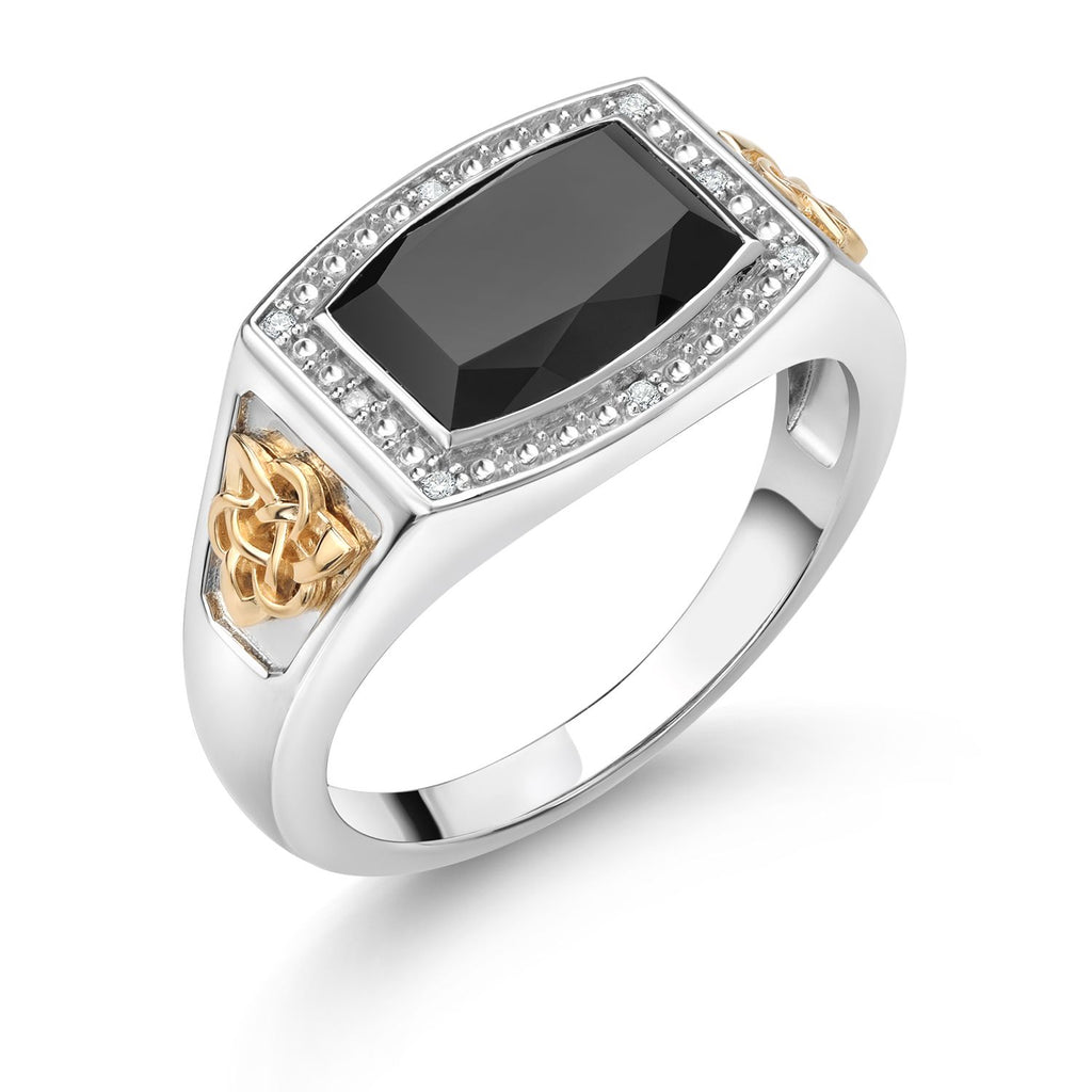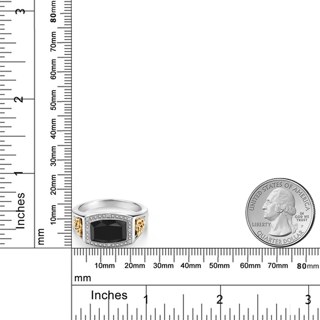 4.51 Cttw Black Onyx and White Lab Grown Diamond Ring For Men | 925 Silver and 10K Yellow Gold | Emerald Cut 11X8MM | Available In Size 7, 8, 9, 10, 11, 12, 13