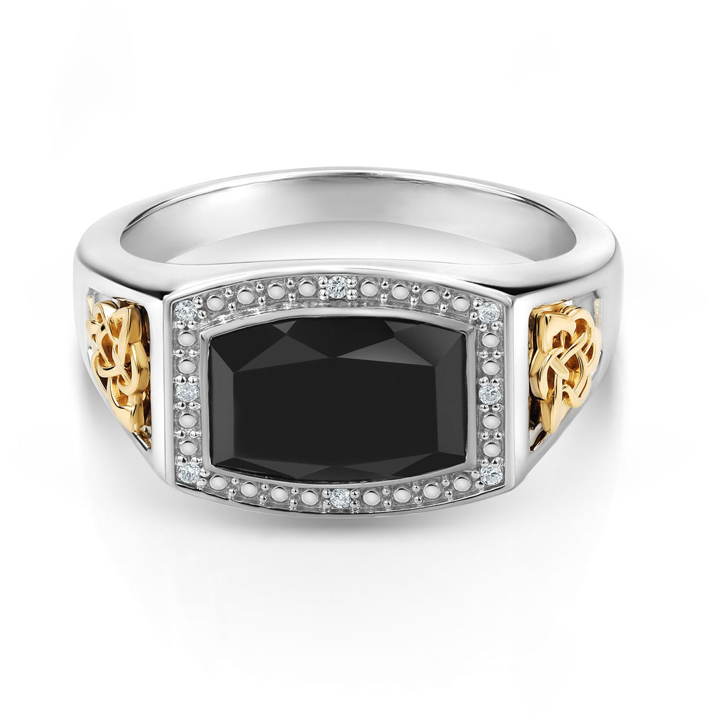 BOLD STATEMENT PIECE: Elevate your style with the captivating allure of this men's ring. Featuring an Emerald Cut 11X8MM Black Onyx and White Lab Grown Diamond accents, the total weight of 4.51 Cttw radiates a powerful and bold presence.
