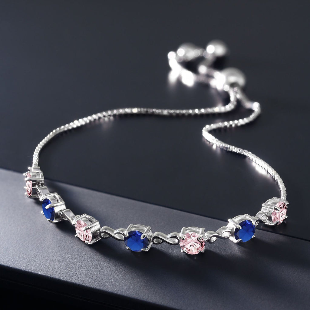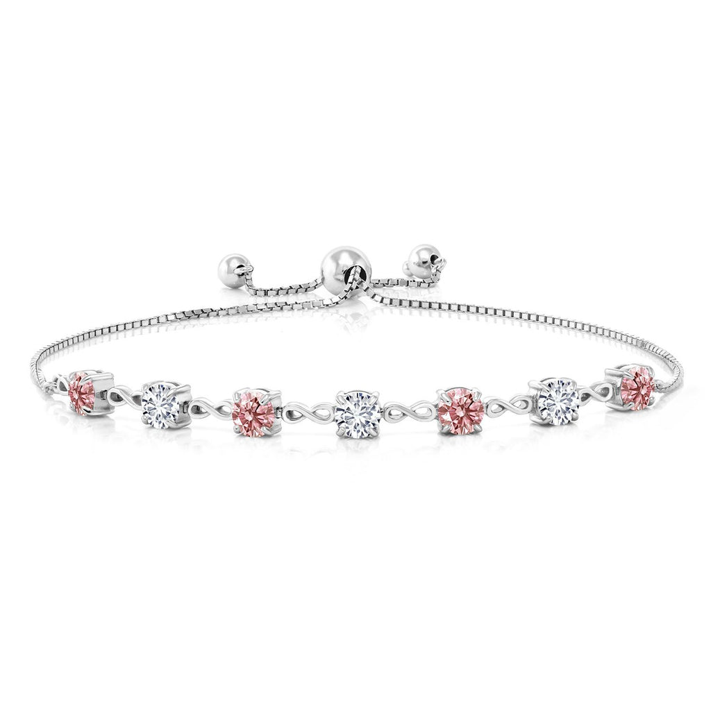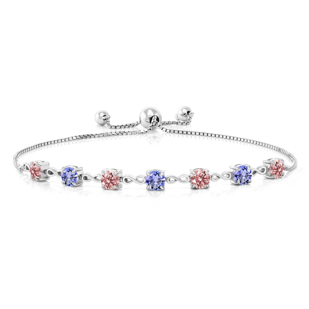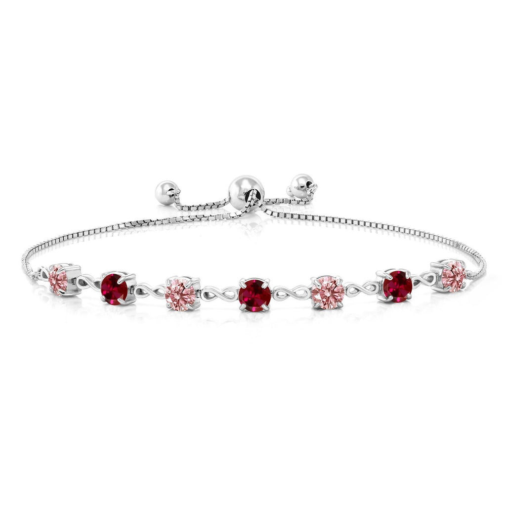 4.5MM Round Gemstone Birthstone and Pink Lab Grown Diamond Infinity Tennis Bracelet for Women | 925 Sterling Silver | Fully Adjustable to 9 Inch | Fine Jewelry for Her Mom Wife