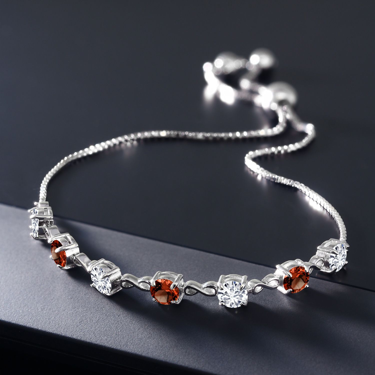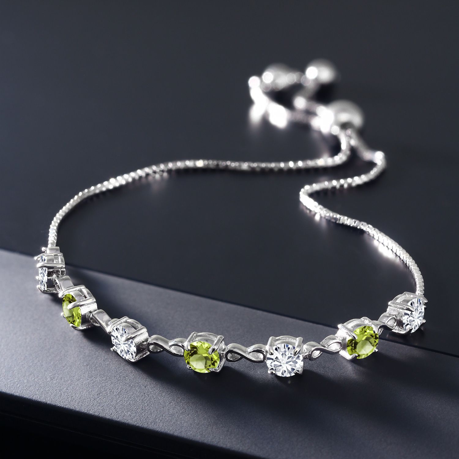 4.5MM Round Gemstone Birthstone and White Lab Grown Diamond Infinity Tennis Bracelet for Women | 925 Sterling Silver | Fully Adjustable to 9 Inch | Fine Jewelry for Her Mom Wife