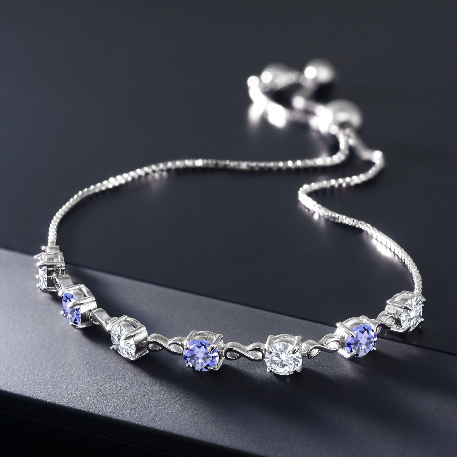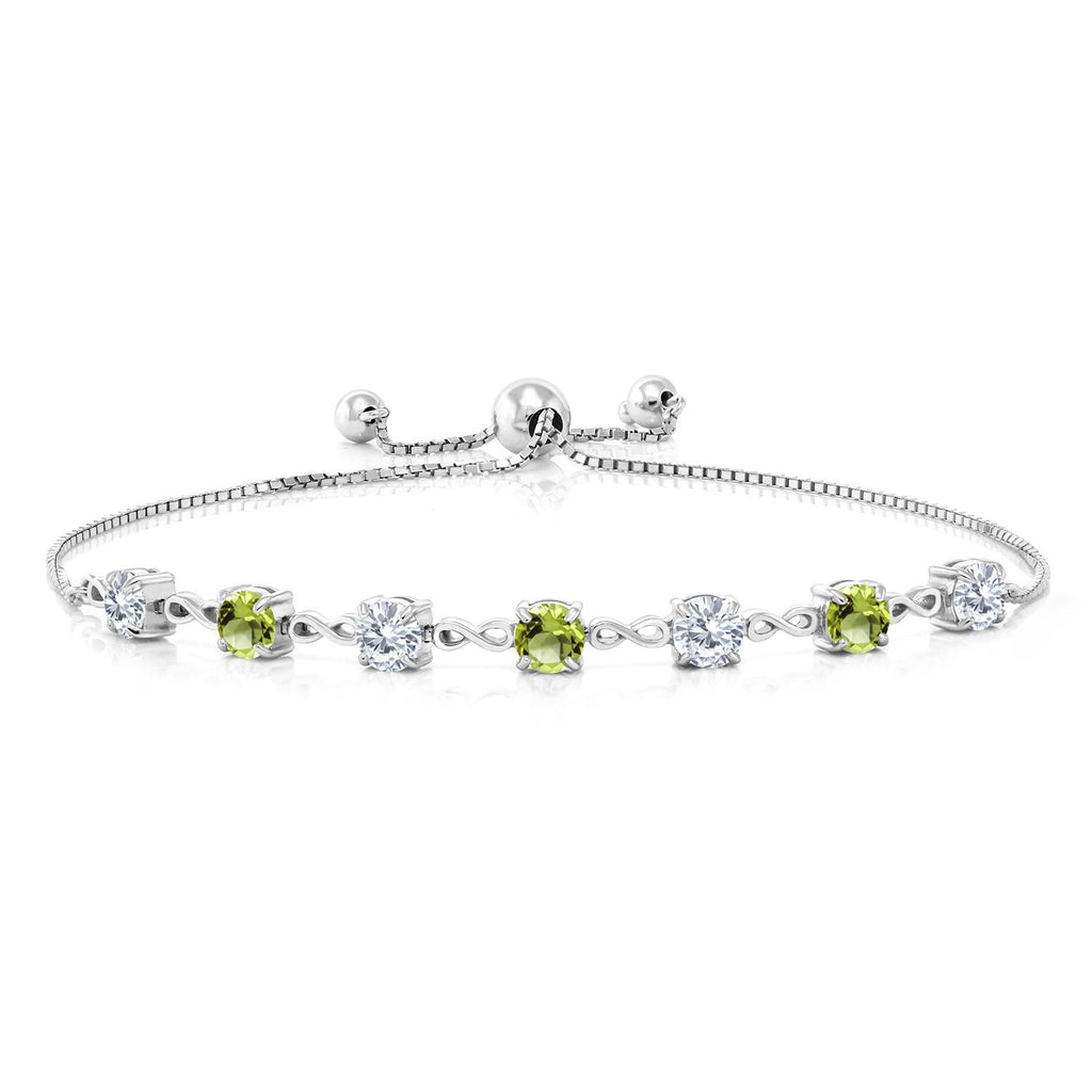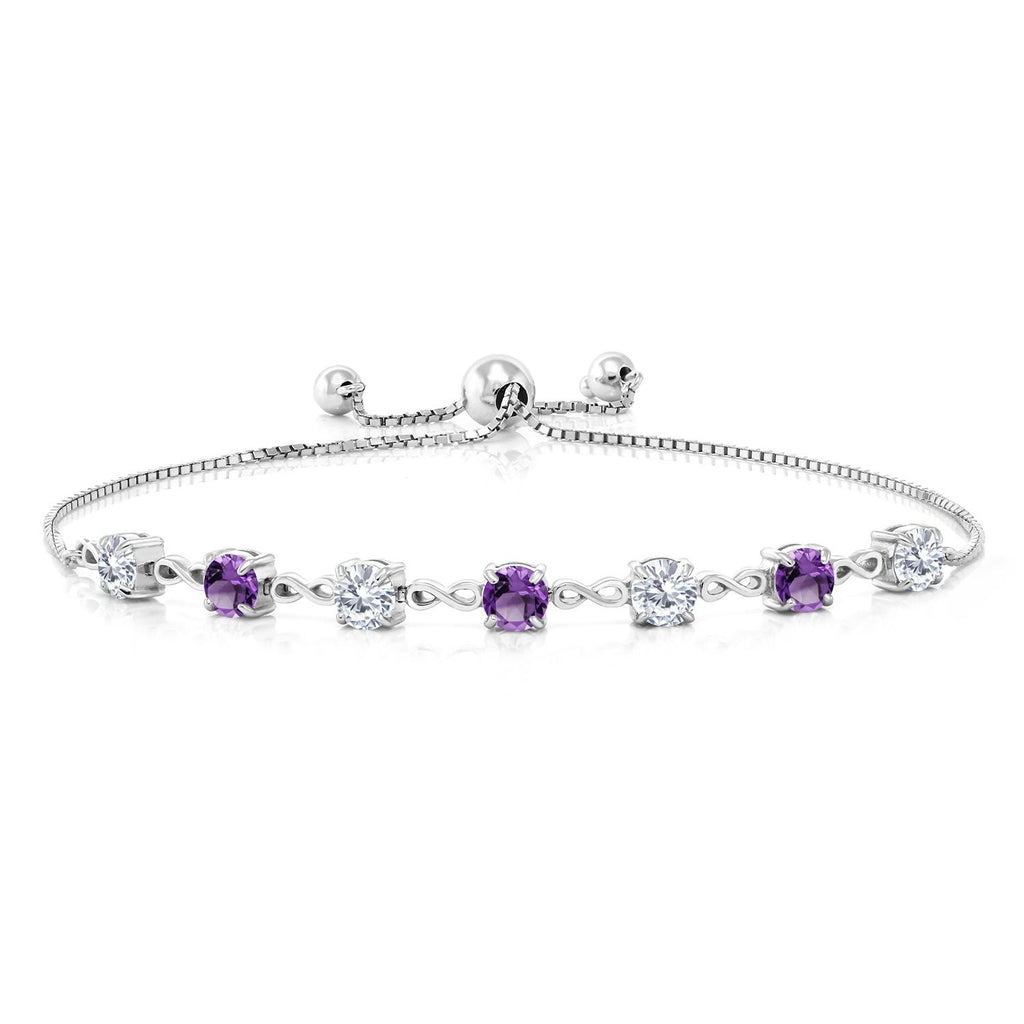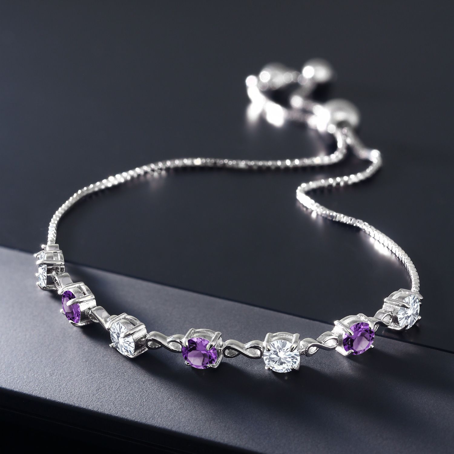 4.5MM Round Gemstone Birthstone and White Moissanite Infinity Tennis Bracelet for Women | 925 Sterling Silver | Fully Adjustable to 9 Inch | Fine Jewelry for Her Mom Wife