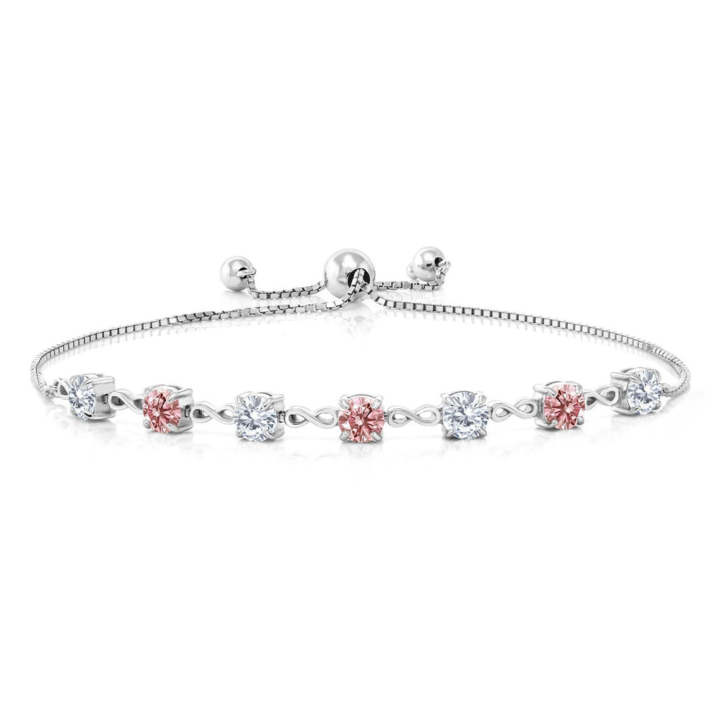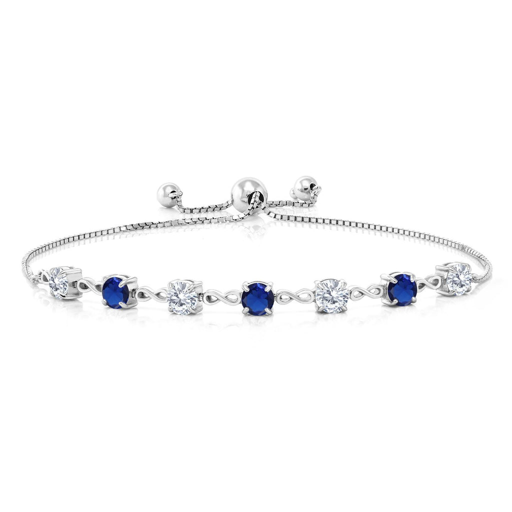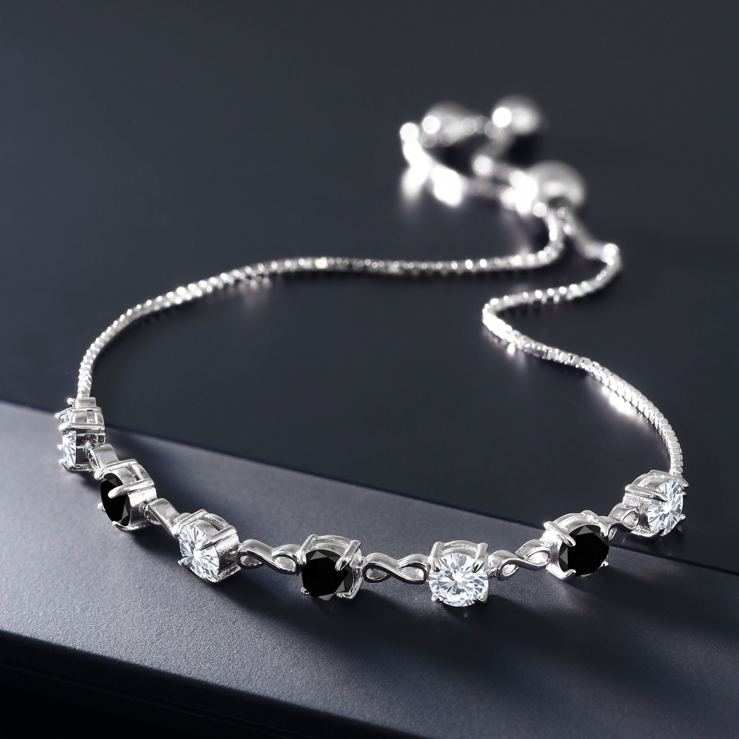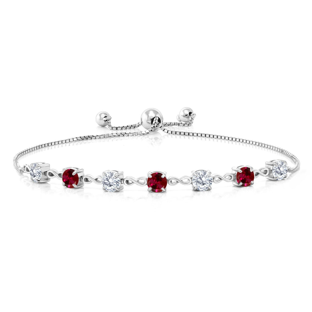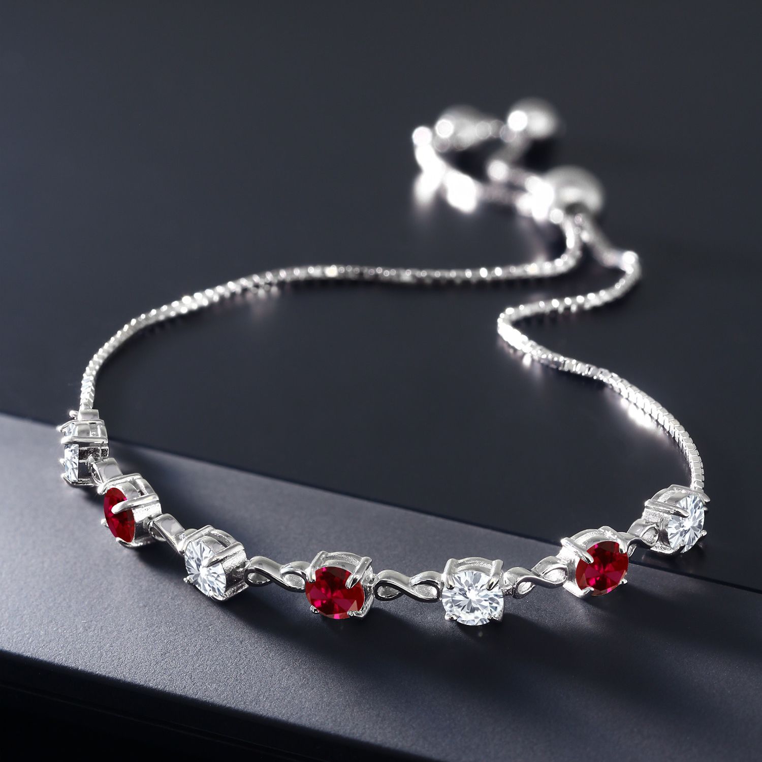 4.5MM Round Gemstone Birthstone and White Moissanite Infinity Tennis Bracelet for Women | 925 Sterling Silver | Fully Adjustable to 9 Inch | Fine Jewelry for Her Mom Wife