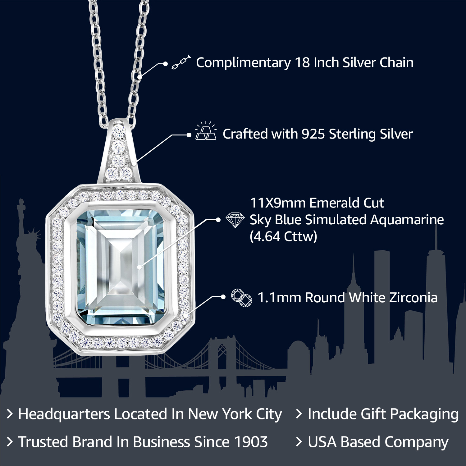 4-6 Cttw Gemstone Birthstone Pendant Necklace for Women | 11X9MM Emerald Cut | 925 Sterling Silver | With 18 Inch Silver Chain | Fine Jewelry Gifts for Her Mom Women Wife