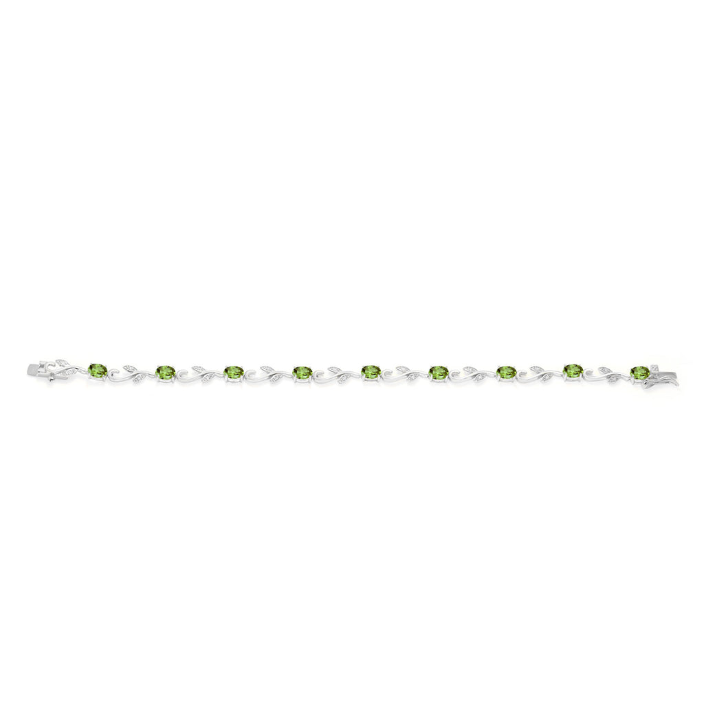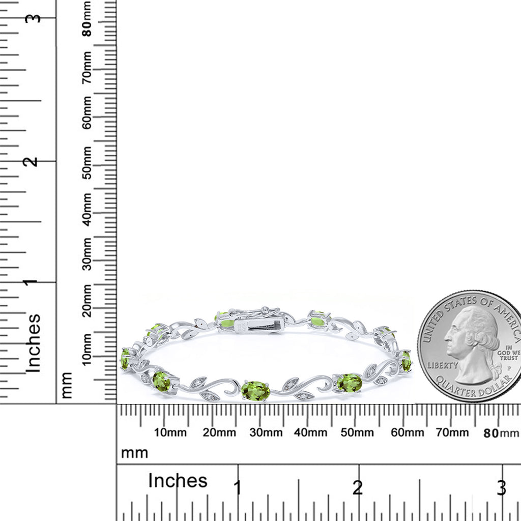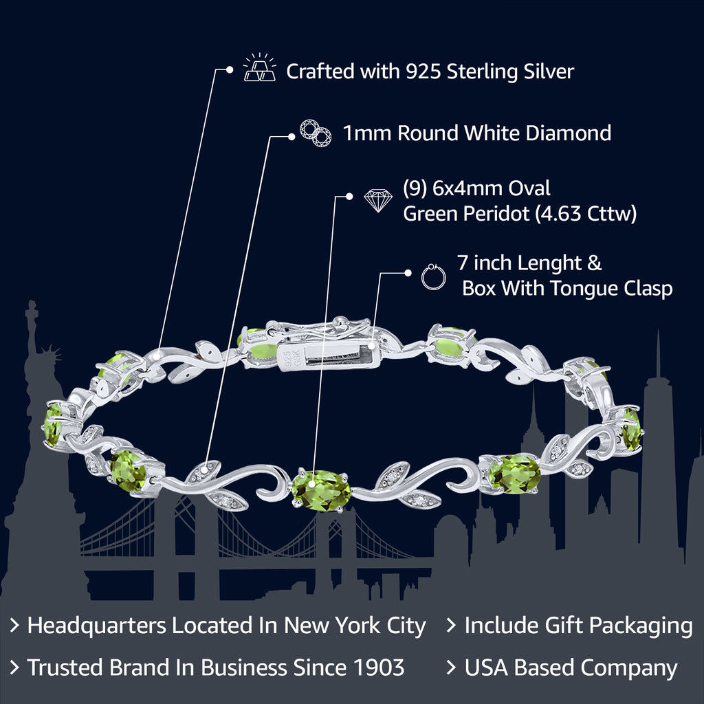 EXQUISITE GREEN PERIDOT GEMSTONES: This tennis bracelet showcases exquisite 6X4MM oval-shaped green peridot gemstones. With a total carat weight of 4.63, the peridot stones exhibit a vibrant green color and exceptional clarity, creating a captivating and eye-catching bracelet.