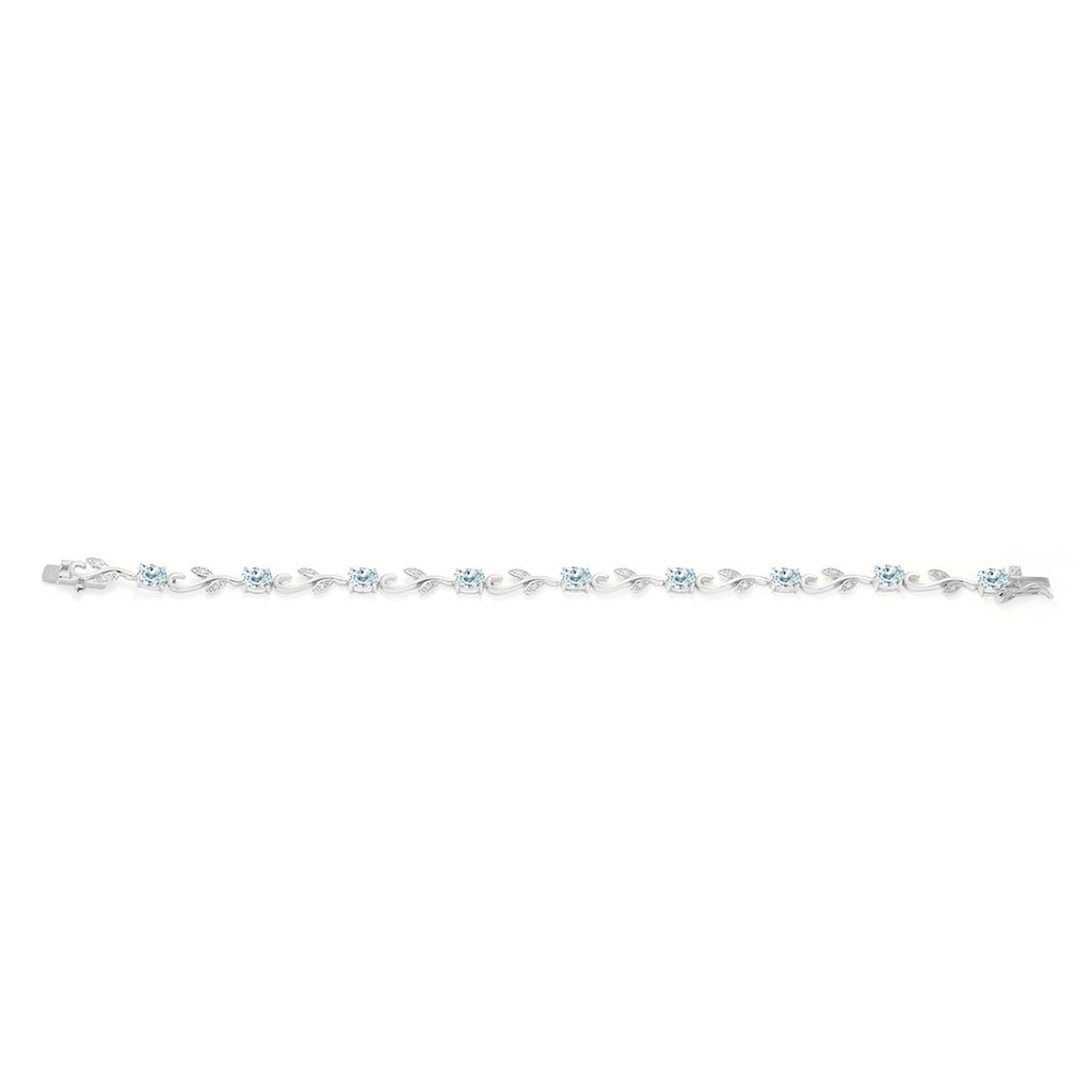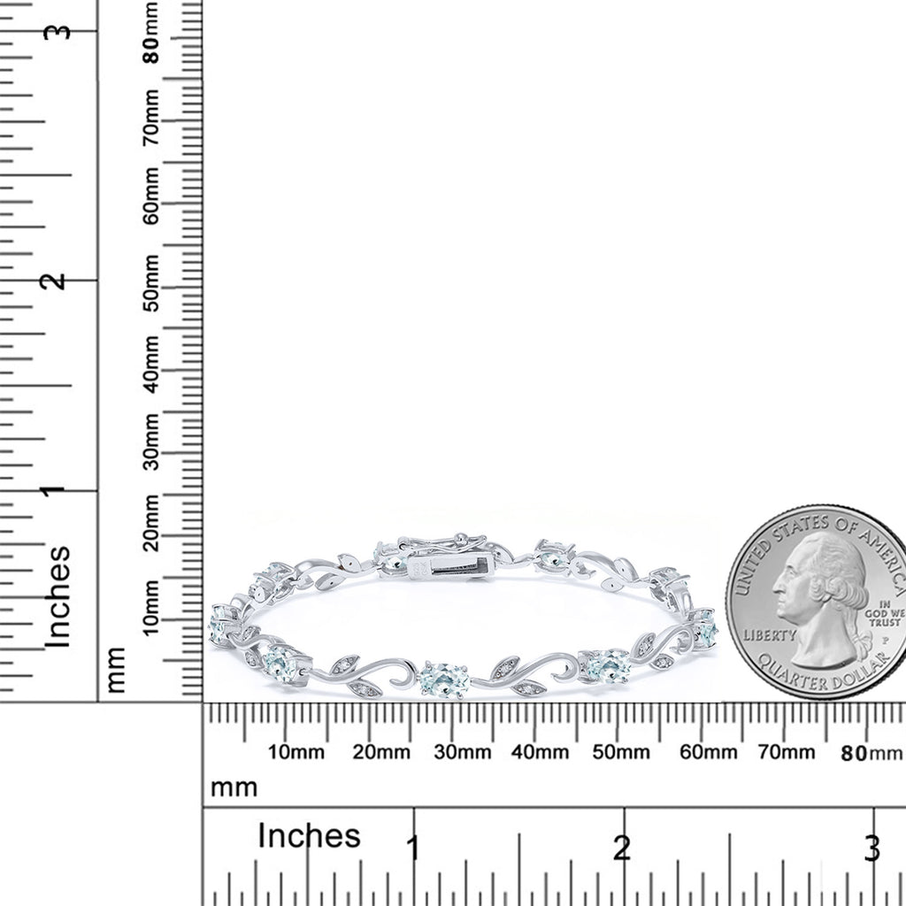 STUNNING GEMSTONE COMBINATION: This tennis bracelet features a stunning combination of 6X4MM oval-cut sky blue aquamarine gemstones and sparkling diamonds with a total carat weight of 4.63 Cttw, creating a mesmerizing and eye-catching display on the wrist.