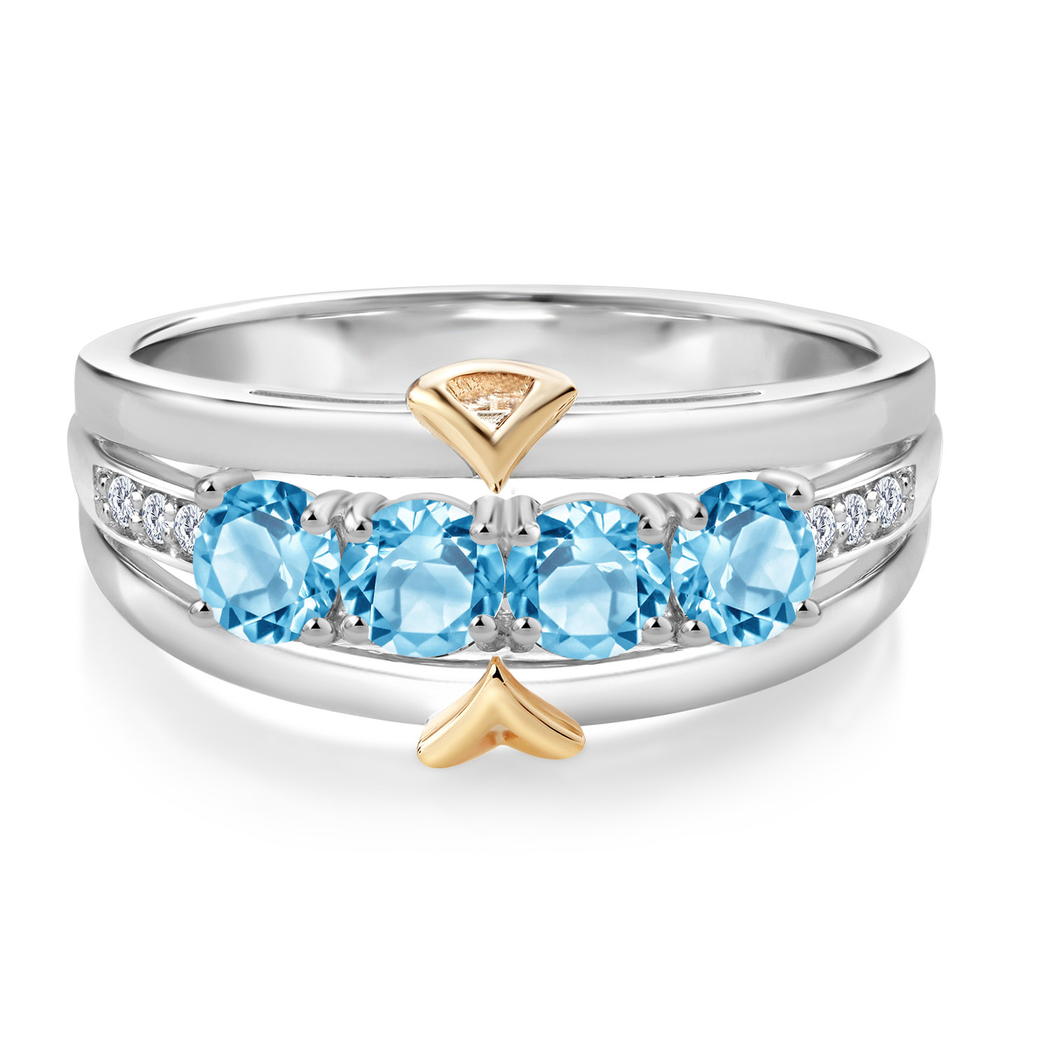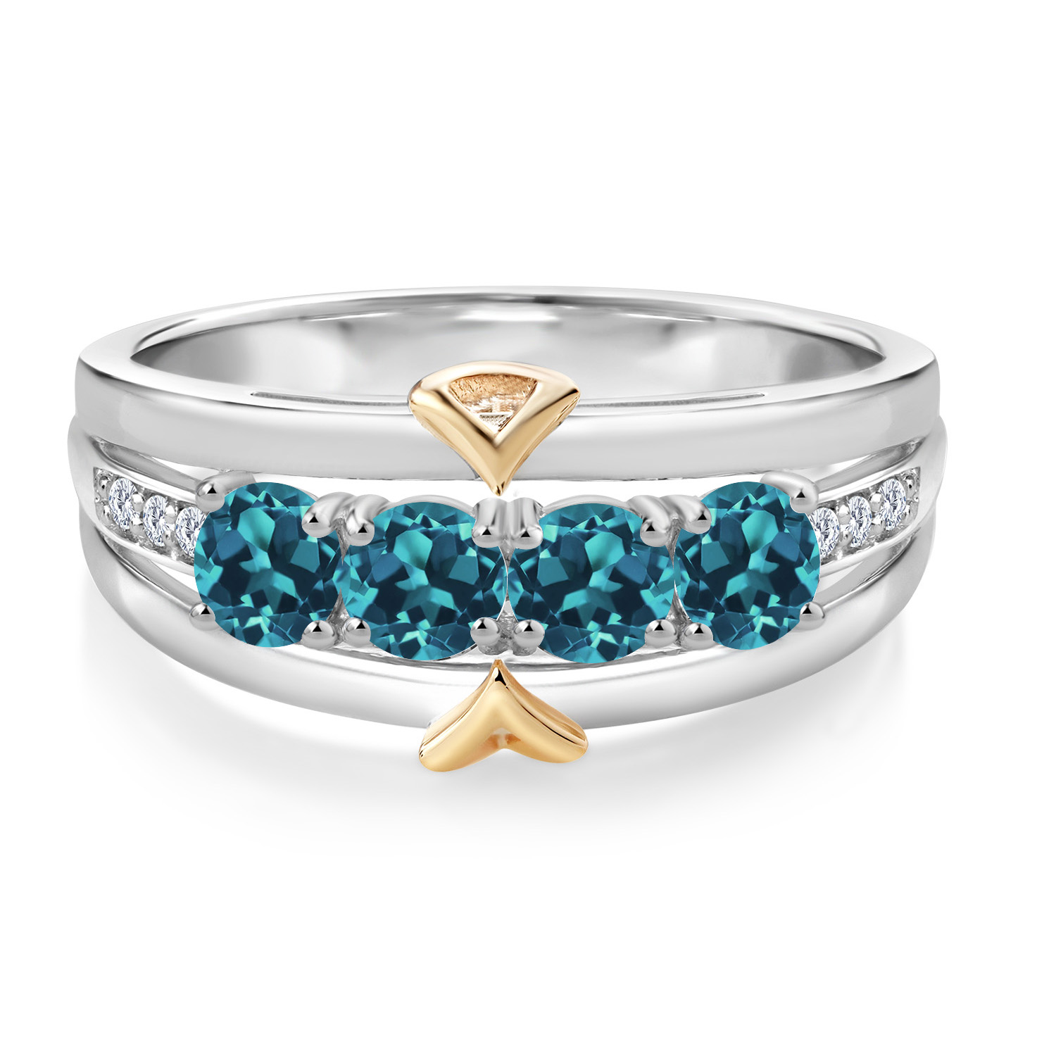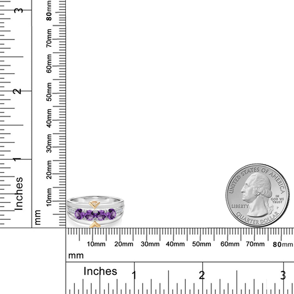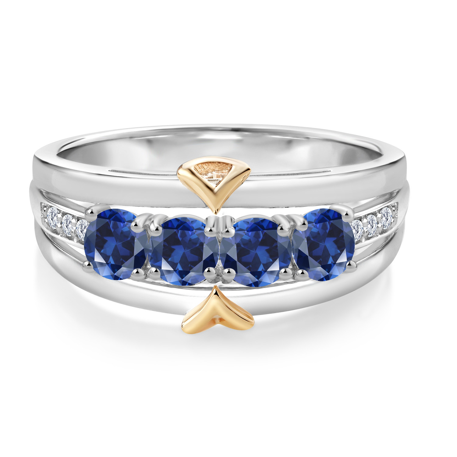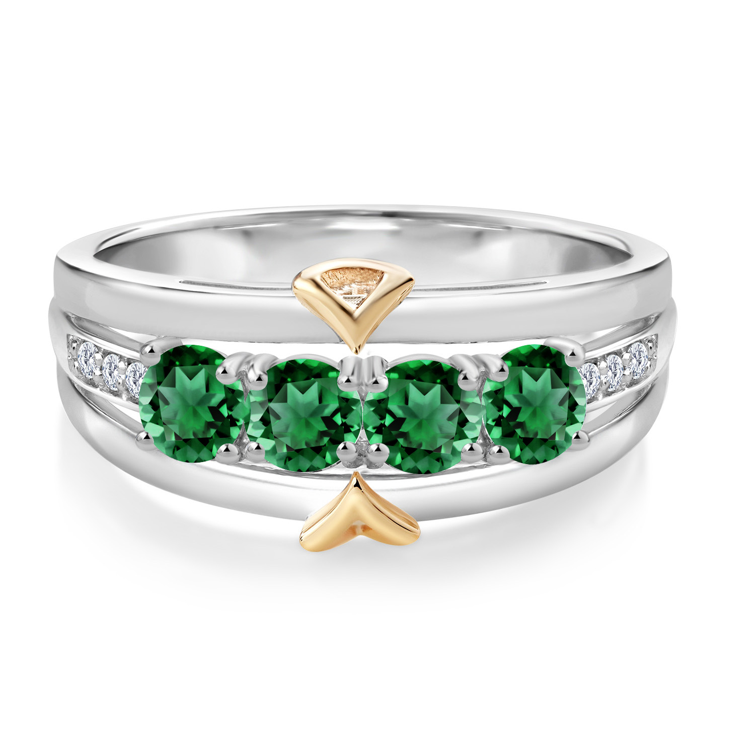 ELEGANT CRAFTSMANSHIP AND UNIQUE DESIGN: This 4-stone wedding band ring features a beautiful combination of four 4MM each gemstones and accent lab grown diamonds, set in a blend of 925 silver and 10K yellow gold. The dual-metal design adds a touch of sophistication and timeless appeal, making it a standout piece in any jewelry collection.