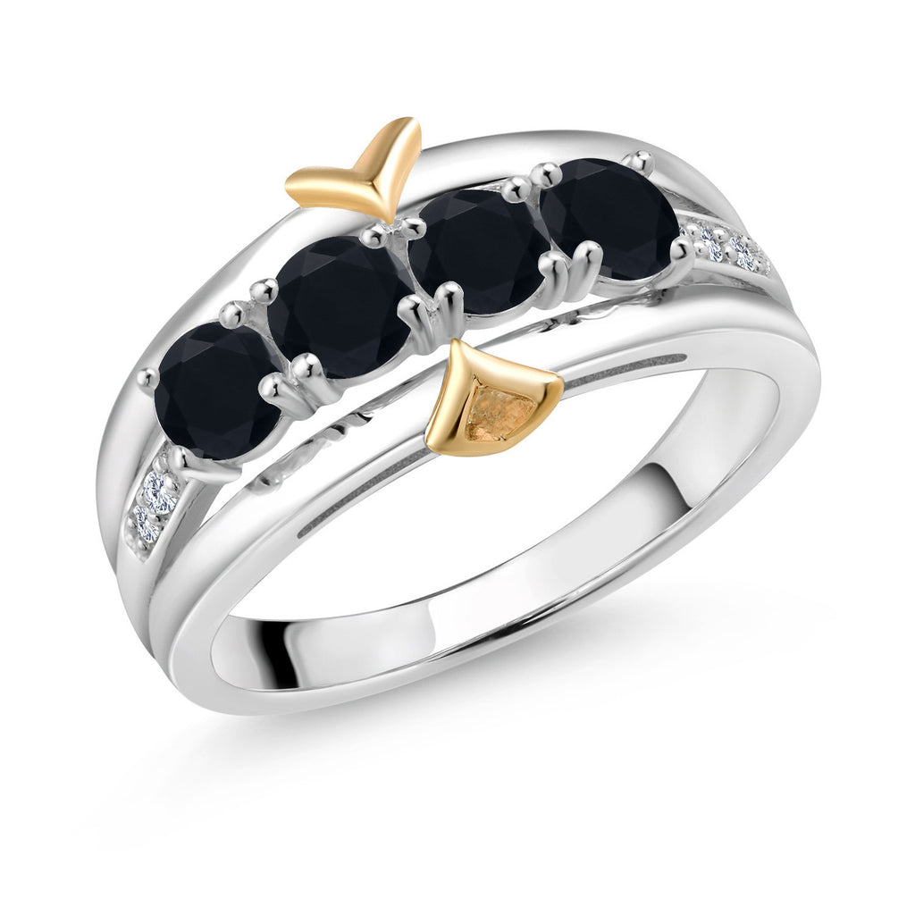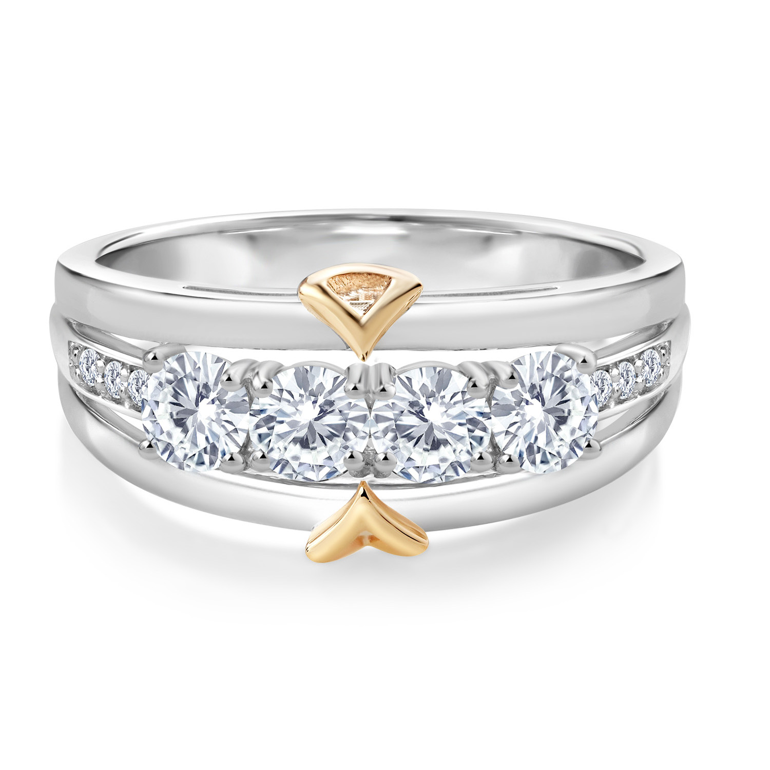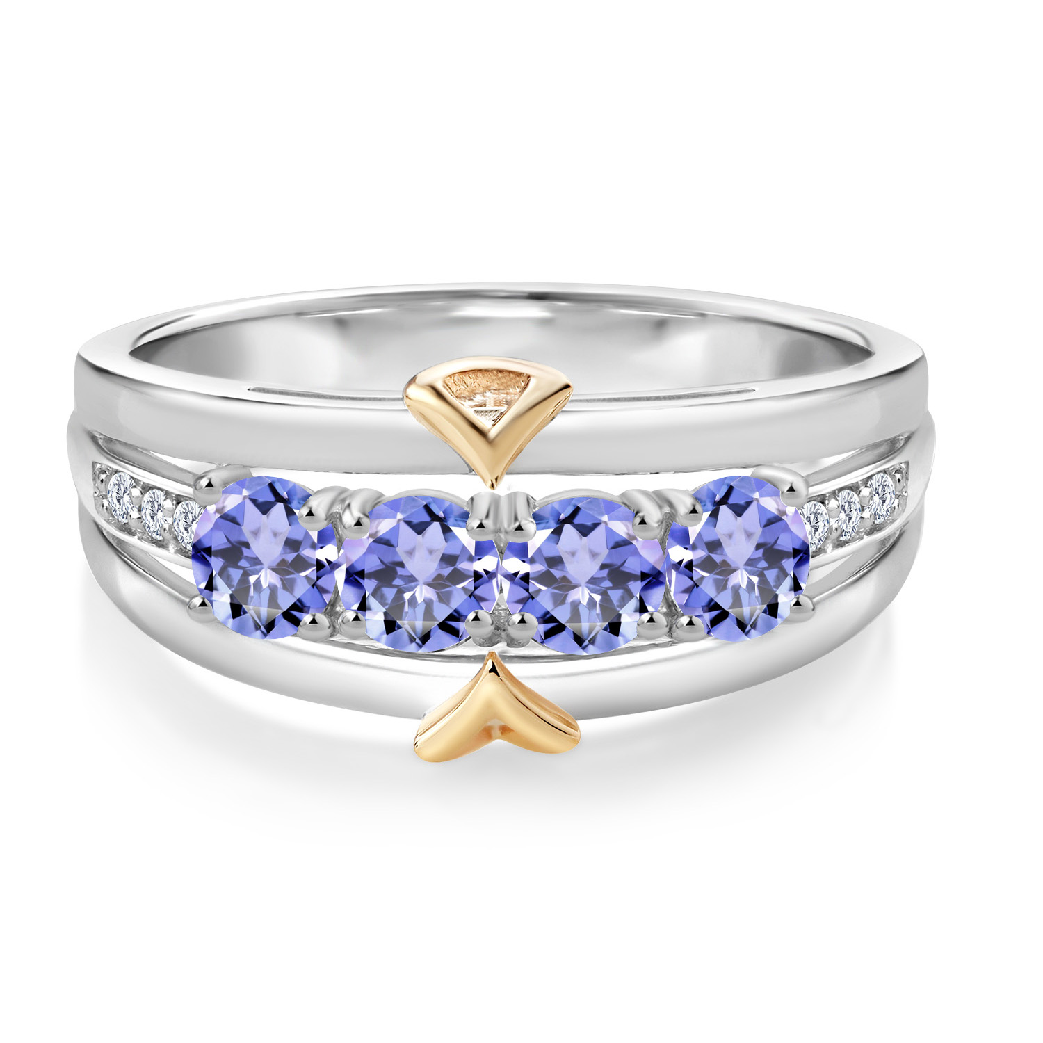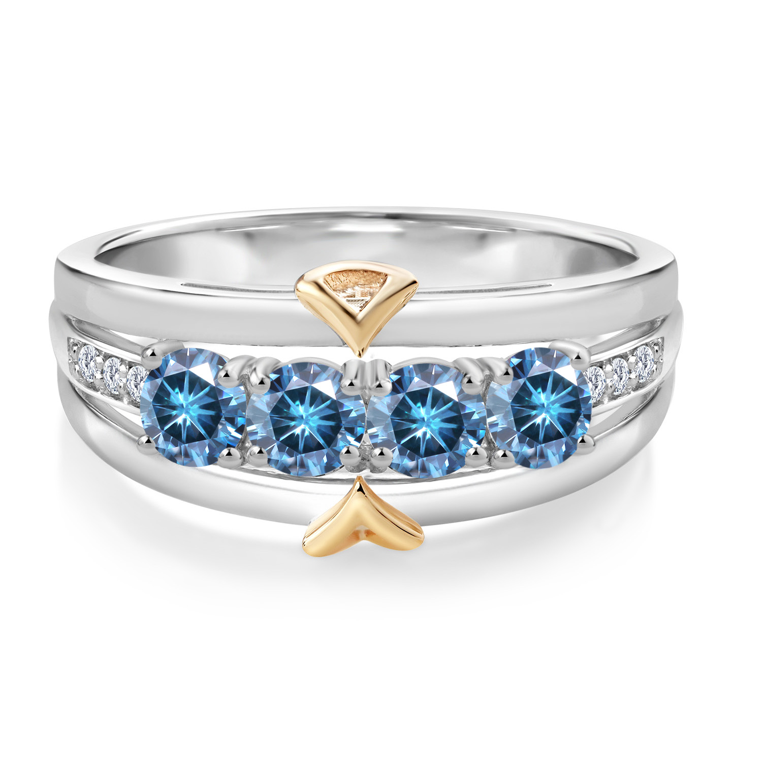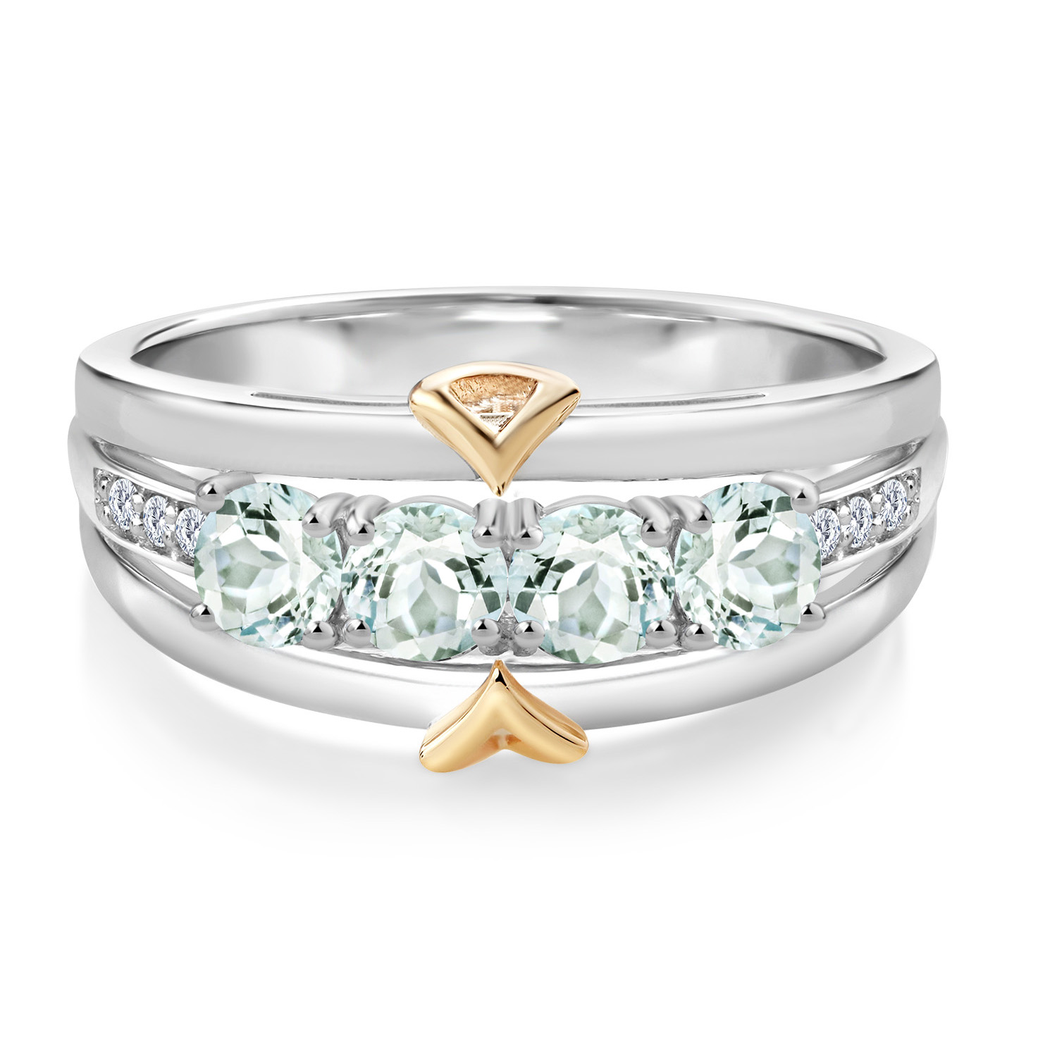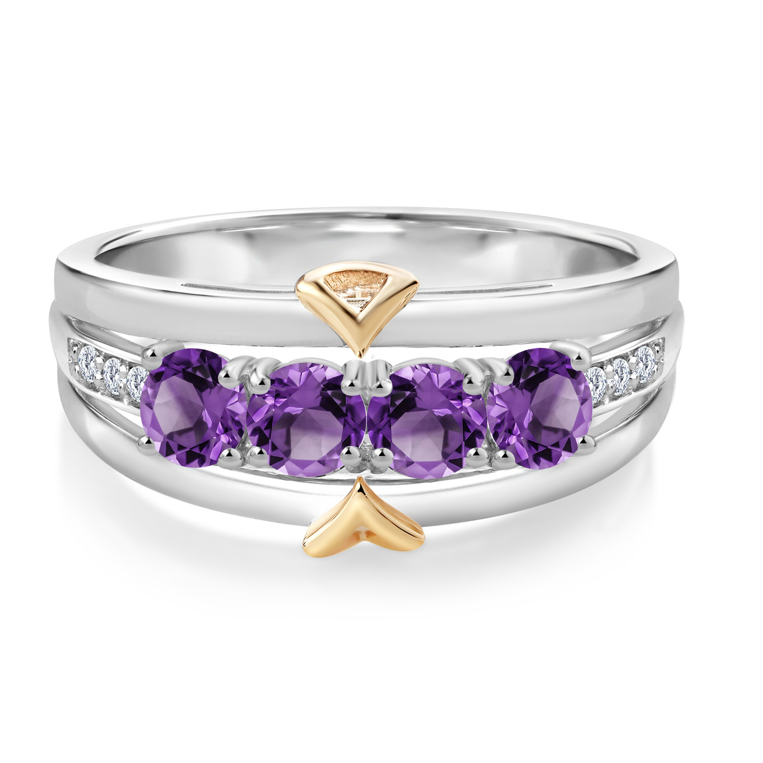 ELEGANT CRAFTSMANSHIP AND UNIQUE DESIGN: This 4-stone wedding band ring features a beautiful combination of four 4MM each gemstones and accent lab grown diamonds, set in a blend of 925 silver and 10K yellow gold. The dual-metal design adds a touch of sophistication and timeless appeal, making it a standout piece in any jewelry collection.