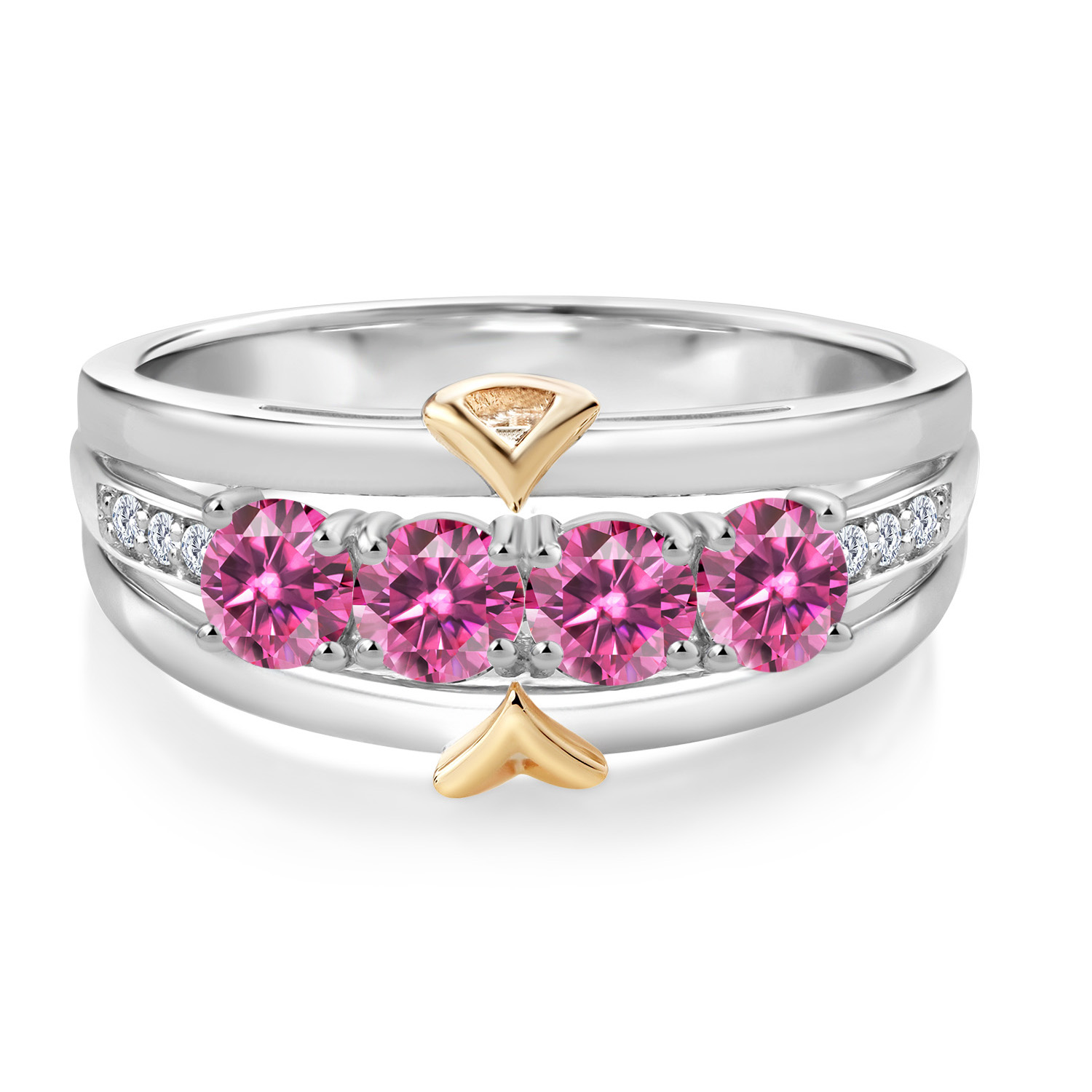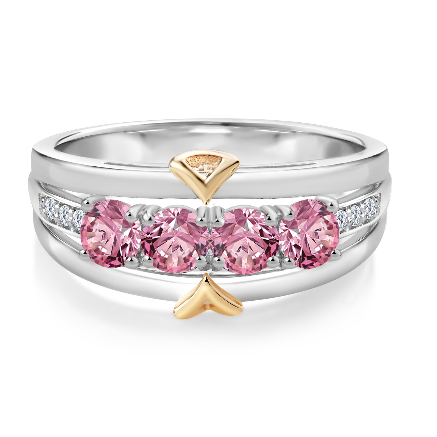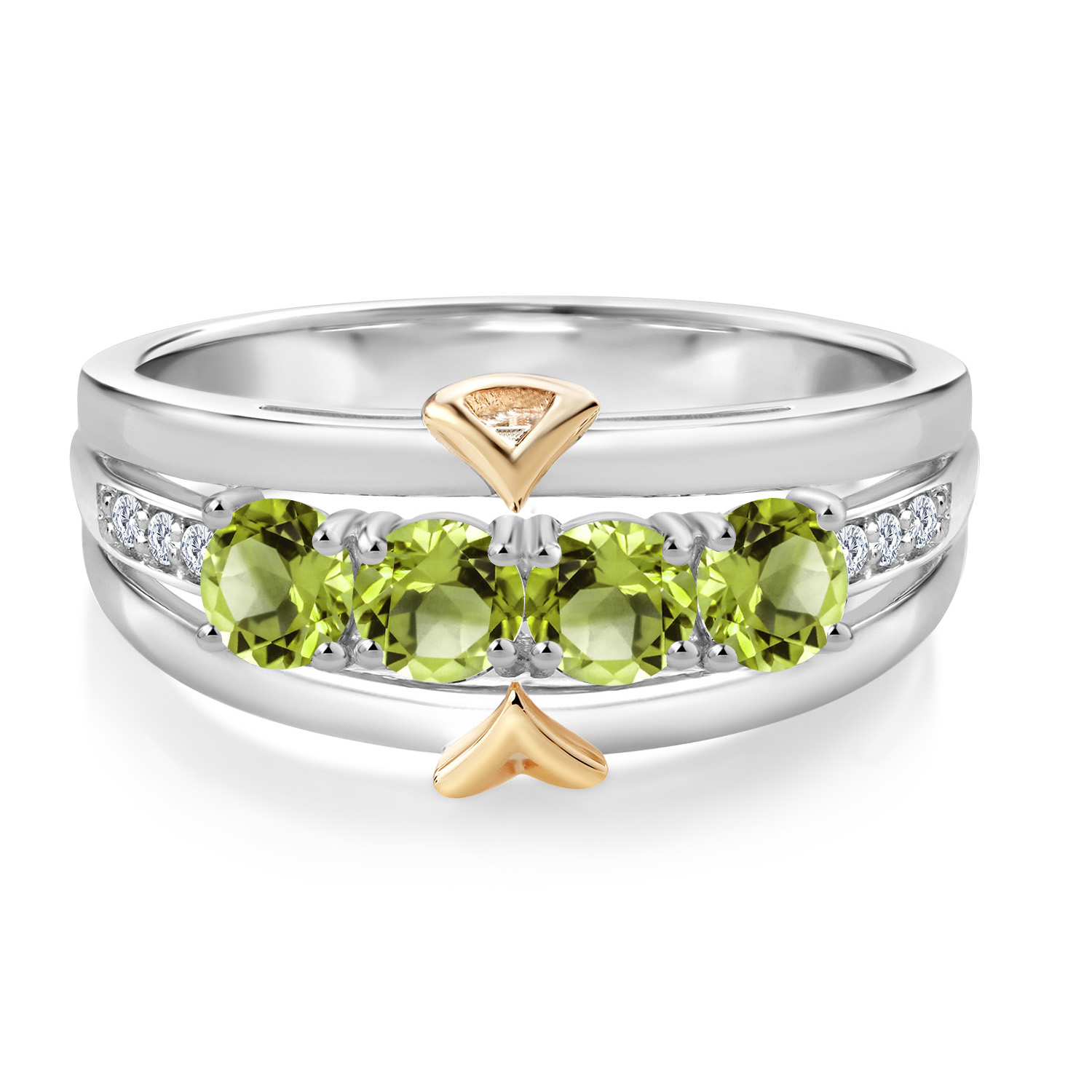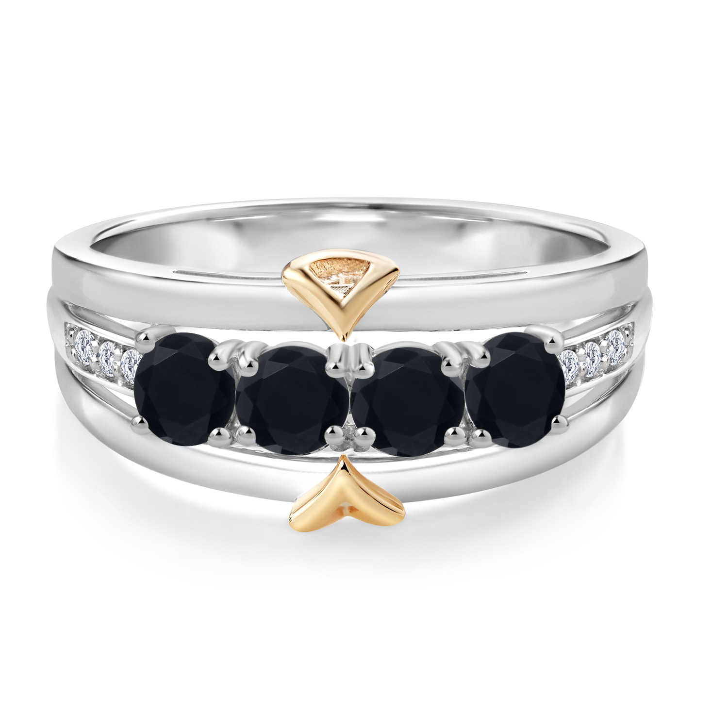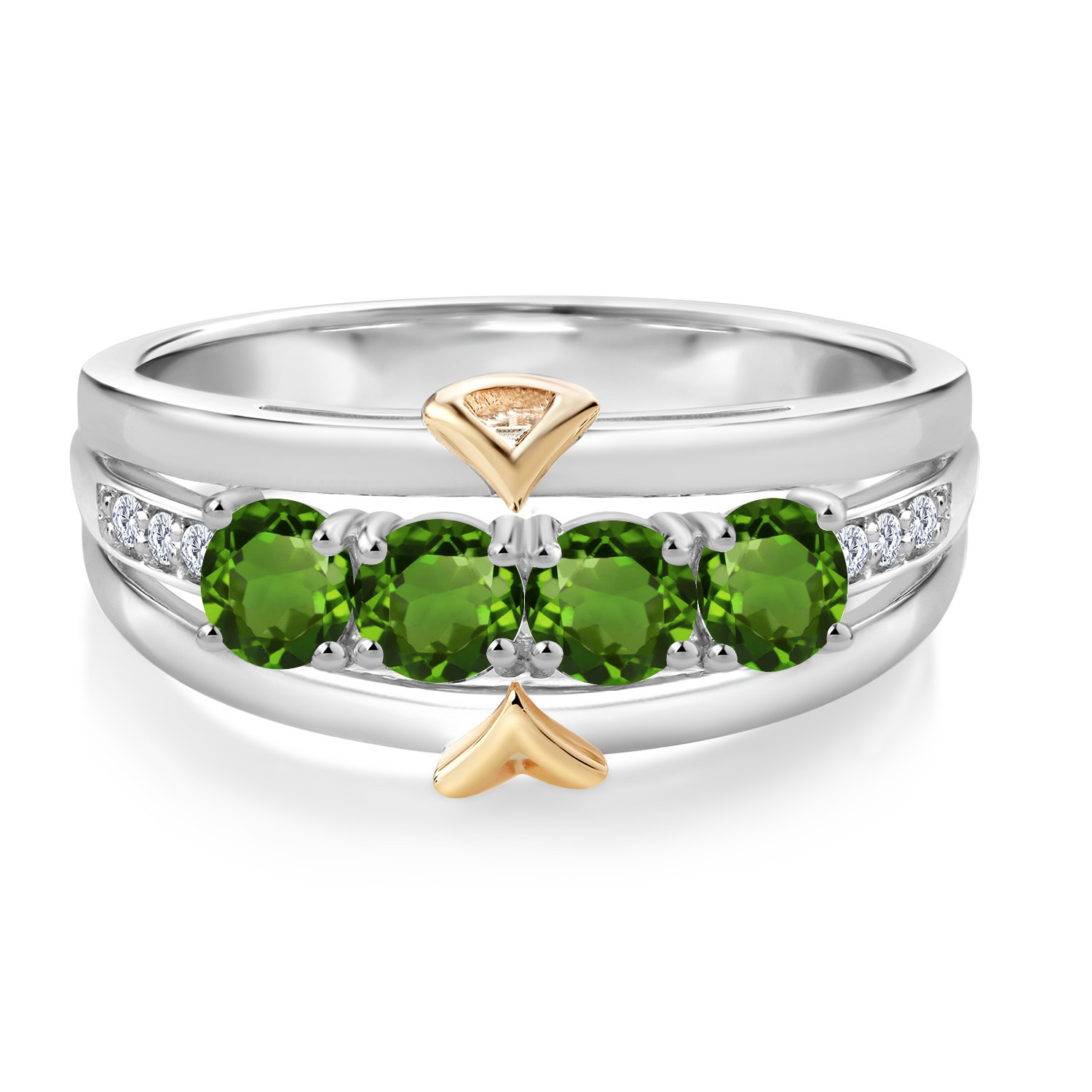 ELEGANT CRAFTSMANSHIP AND UNIQUE DESIGN: This 4-stone wedding band ring features a beautiful combination of four 4MM each gemstones and accent lab grown diamonds, set in a blend of 925 silver and 10K yellow gold. The dual-metal design adds a touch of sophistication and timeless appeal, making it a standout piece in any jewelry collection.