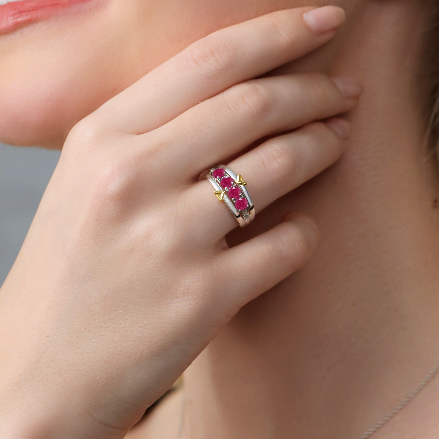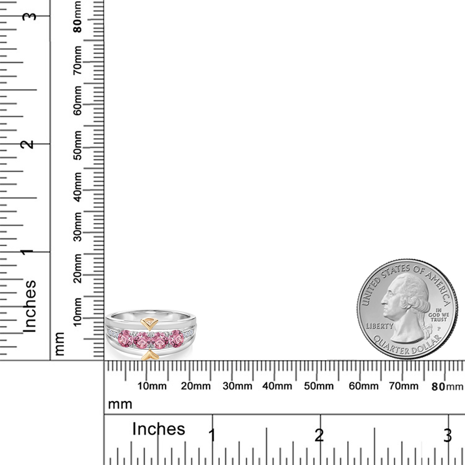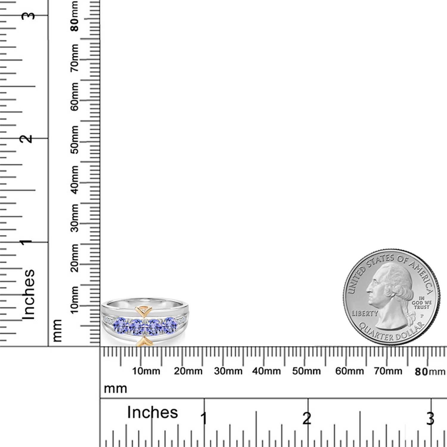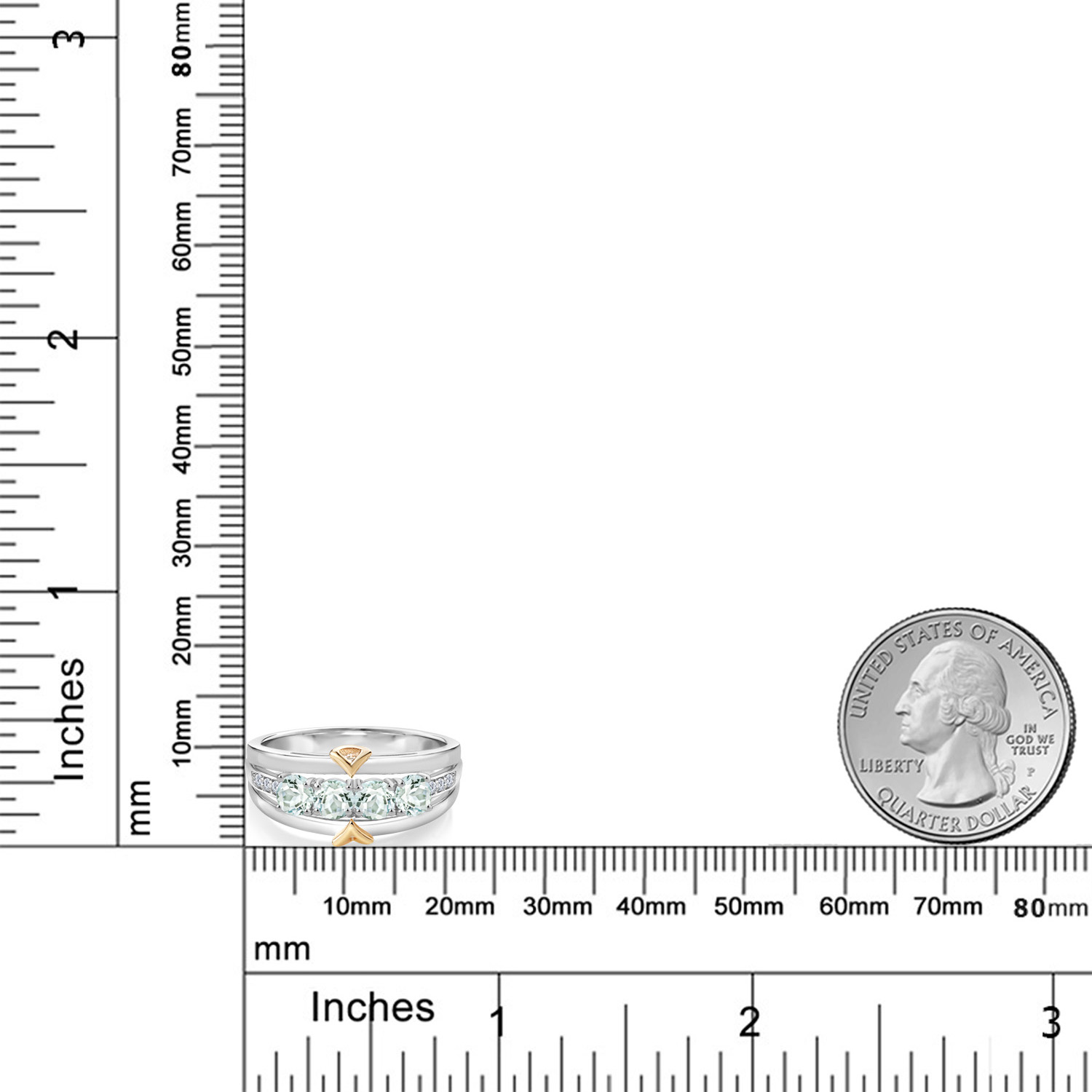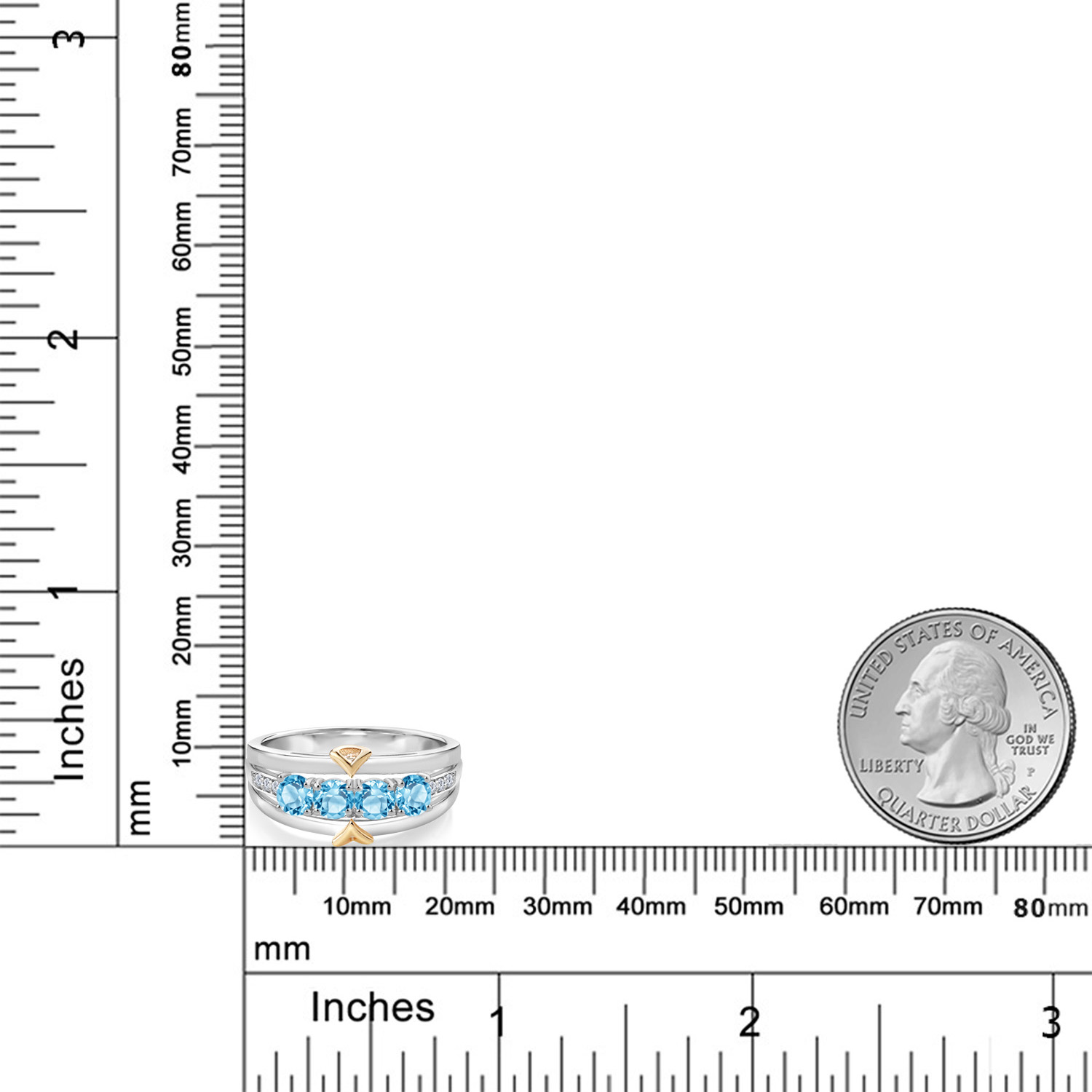 ELEGANT CRAFTSMANSHIP AND UNIQUE DESIGN: This 4-stone wedding band ring features a beautiful combination of four 4MM each gemstones and accent lab grown diamonds, set in a blend of 925 silver and 10K yellow gold. The dual-metal design adds a touch of sophistication and timeless appeal, making it a standout piece in any jewelry collection.