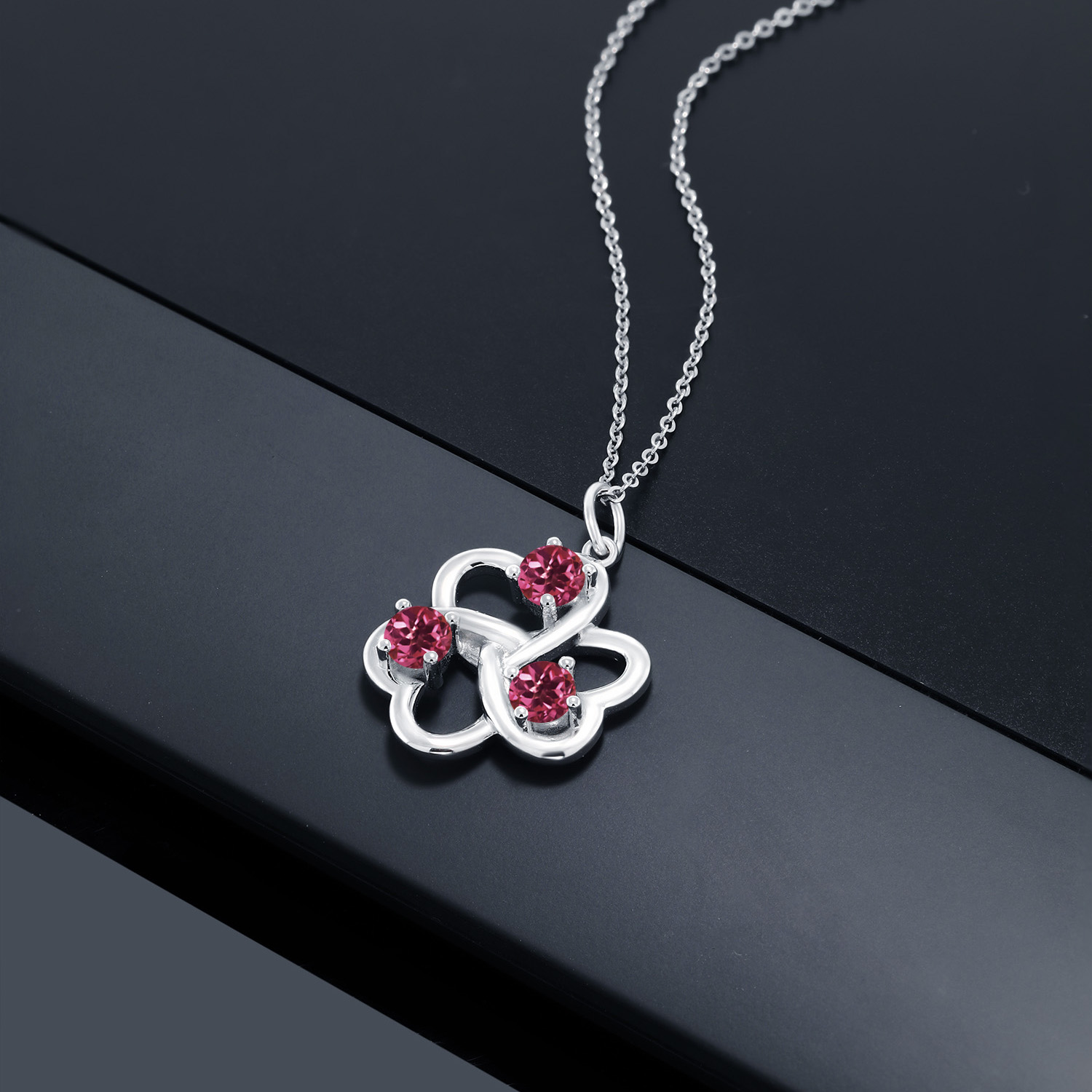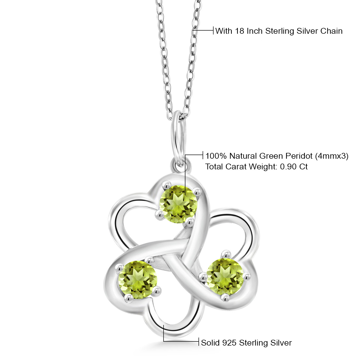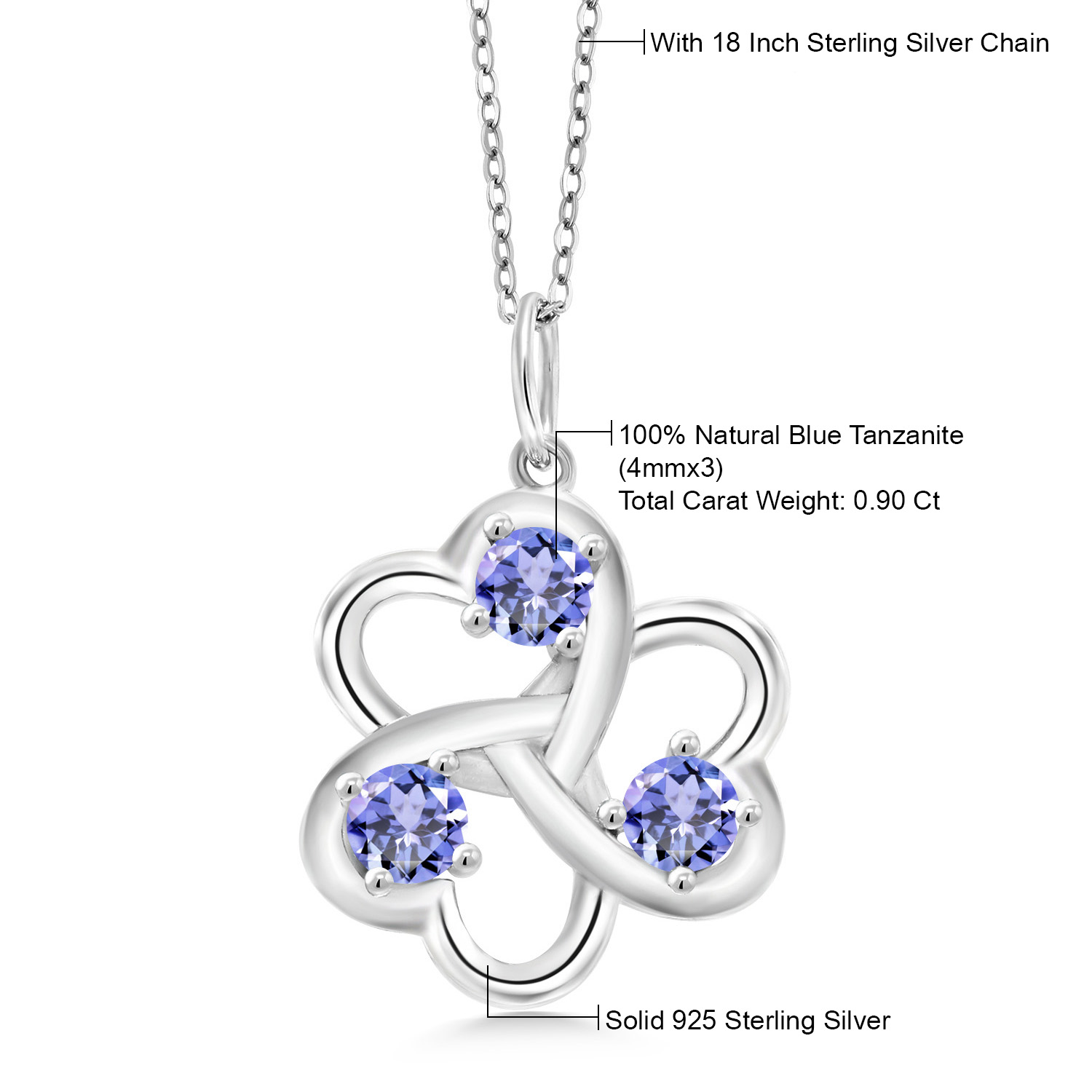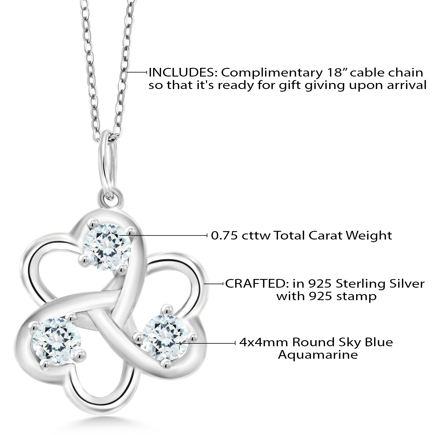 4MM Round Gemstone Birthstone 3 Hearts Interlock Pendant Necklace For Women | 925 Sterling Silver | Fine Jewelry Gifts for Her Mom Women Wife | With 18 Inch Silver Chain