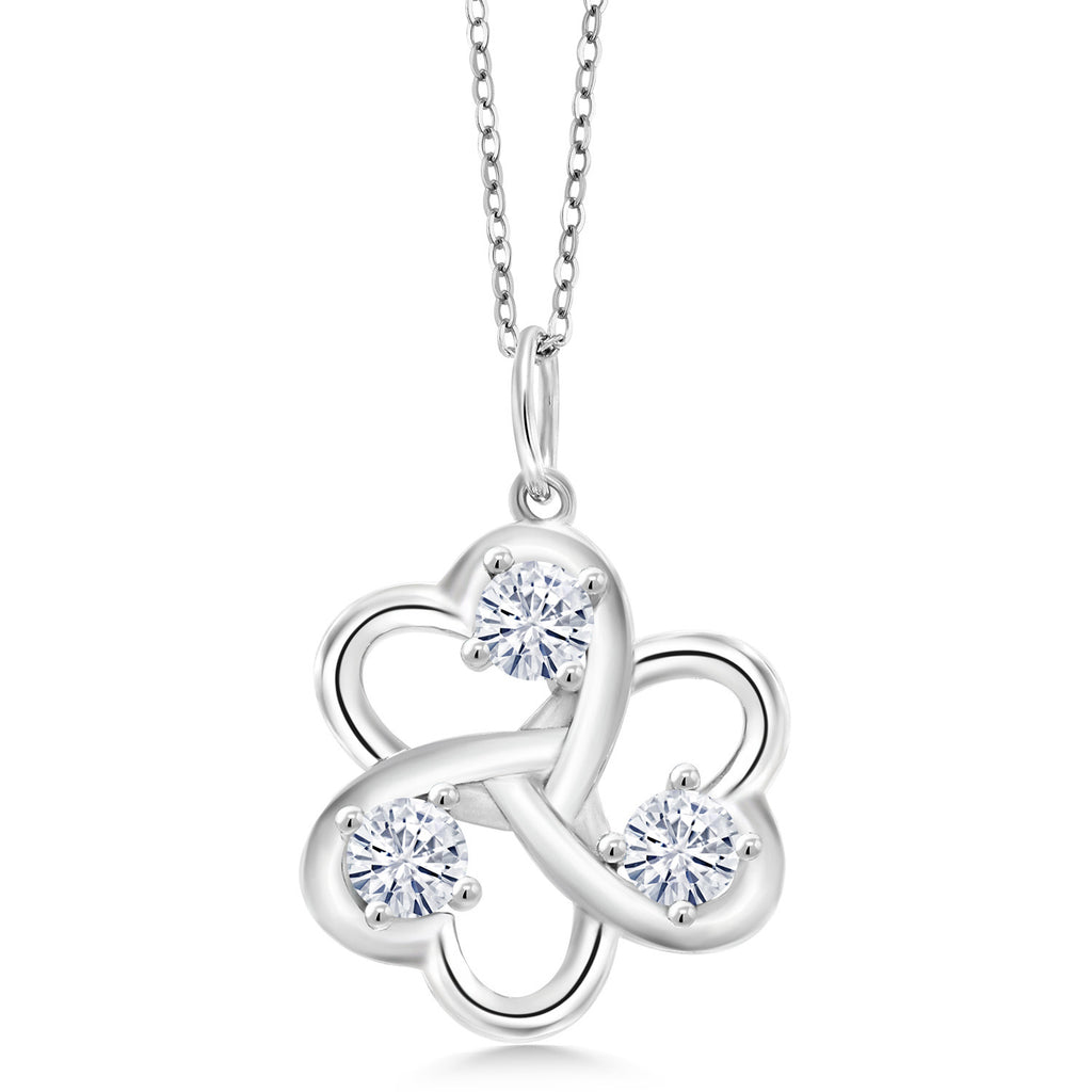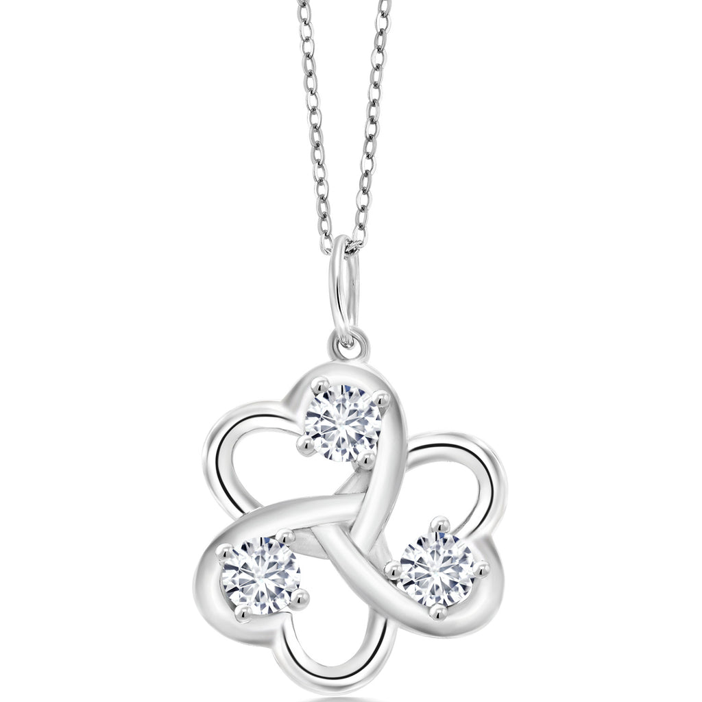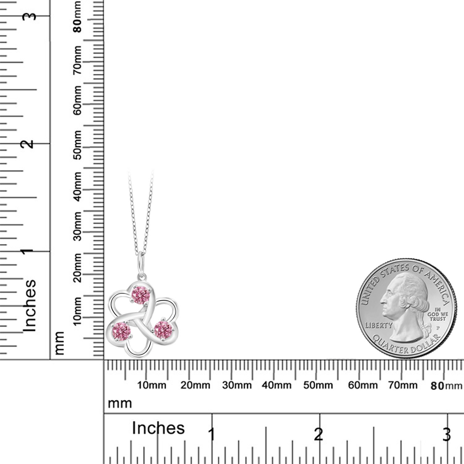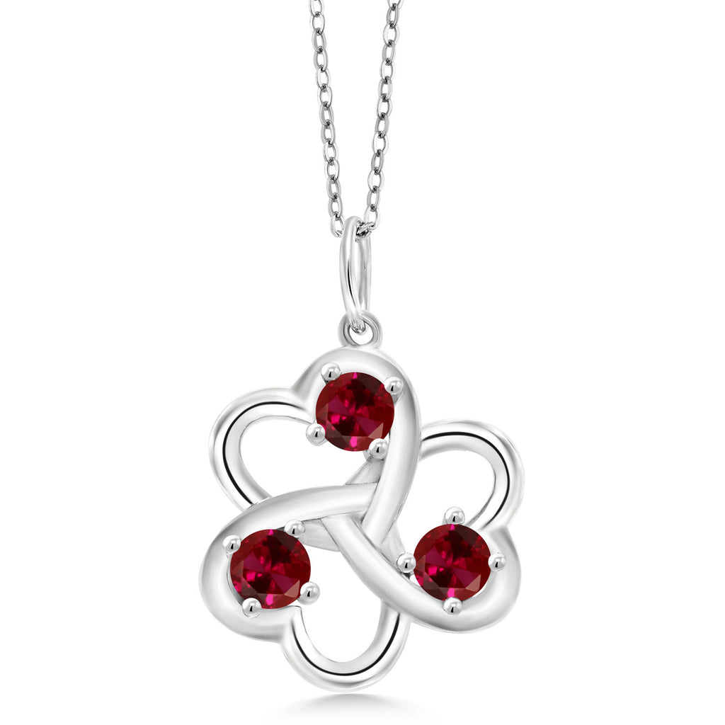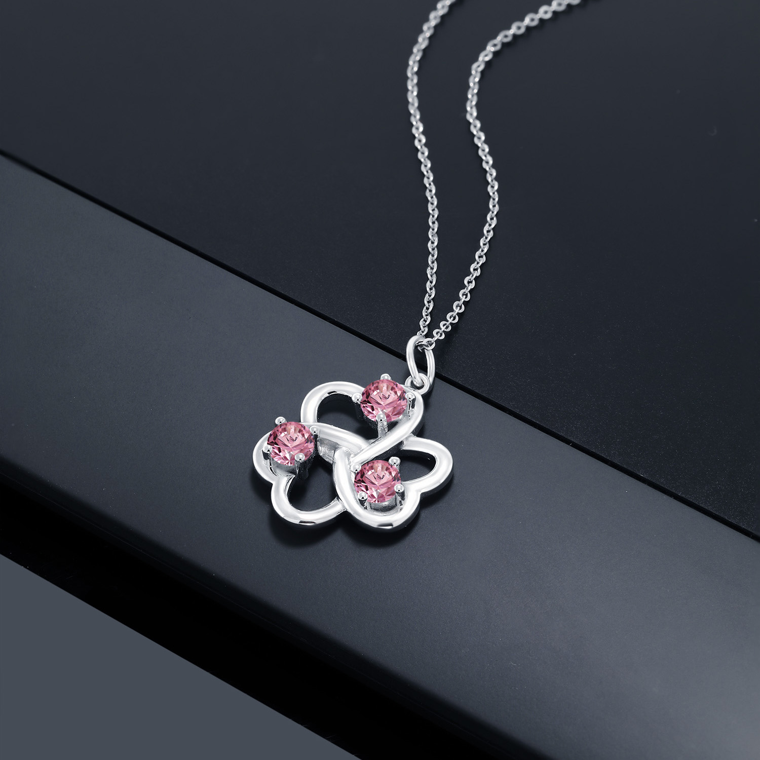 4MM Round Gemstone Birthstone 3 Hearts Interlock Pendant Necklace For Women | 925 Sterling Silver | Fine Jewelry Gifts for Her Mom Women Wife | With 18 Inch Silver Chain
