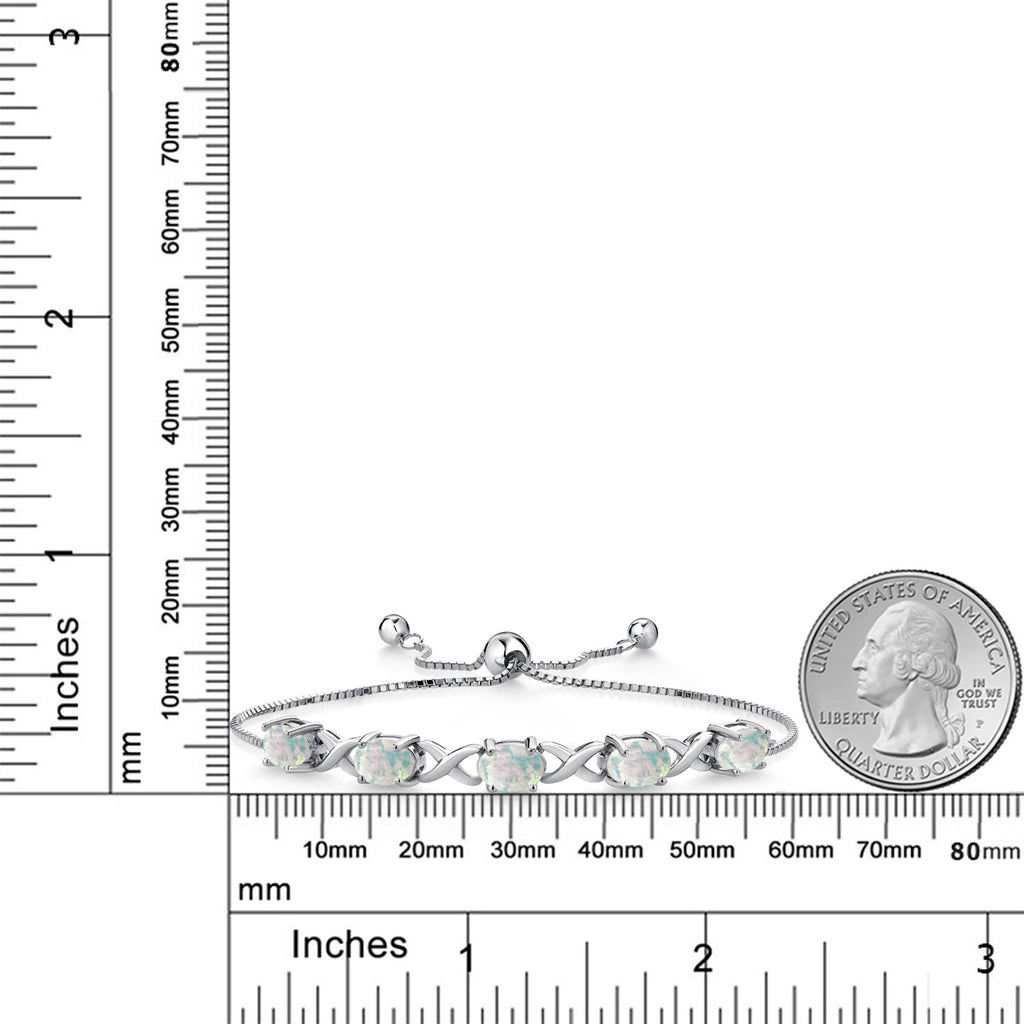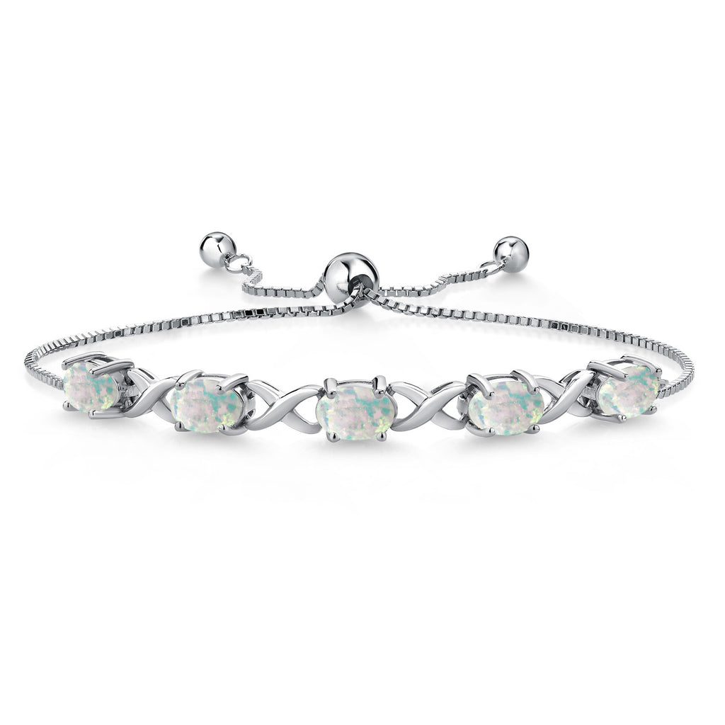 5.00 Cttw 925 Sterling Silver Simulated White Opal Bracelet For Women | Gemstone October Birthstone | Oval Cabochon 7X5MM | Fully Adjustable Up to 9 Inches