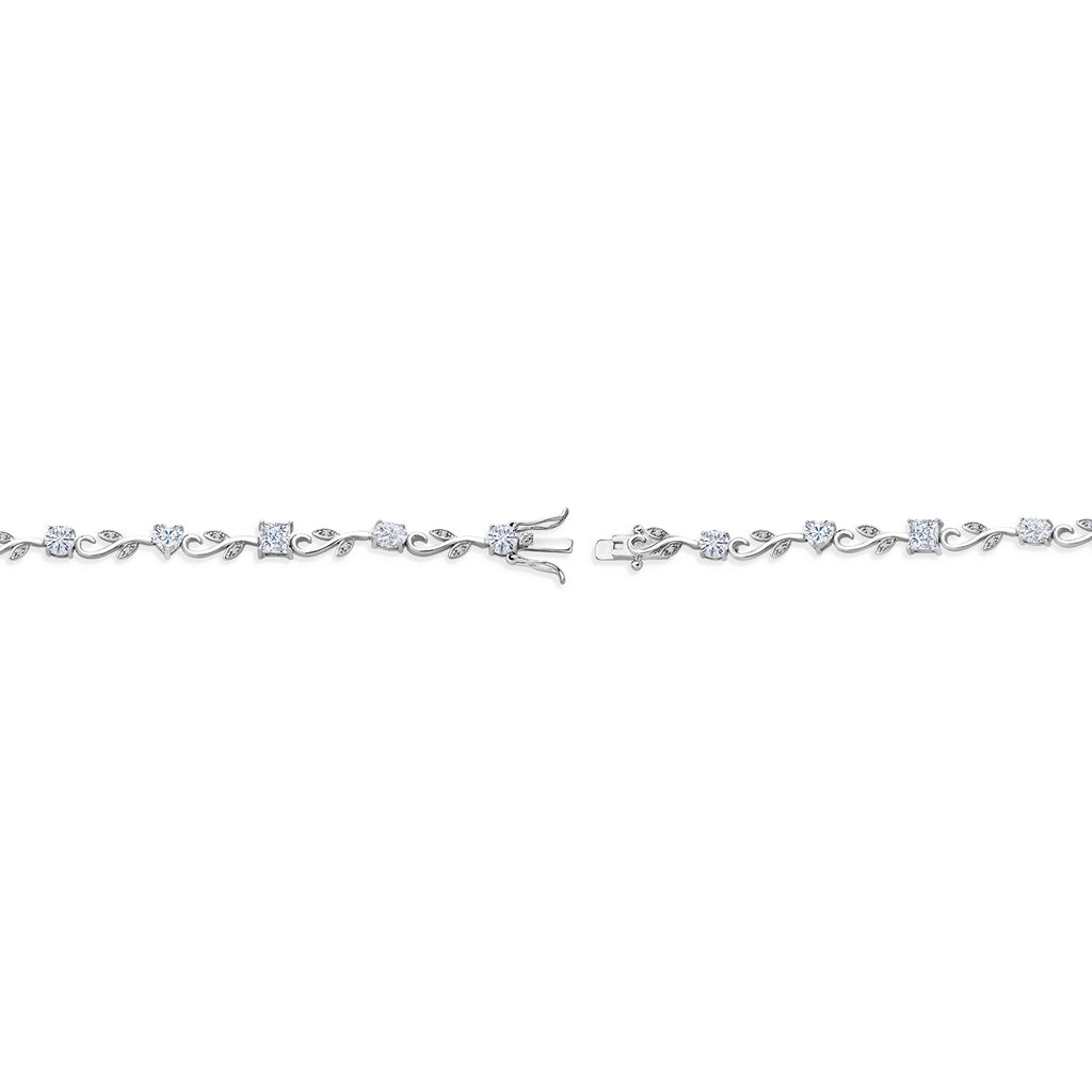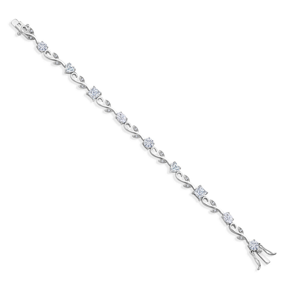 EXQUISITE WHITE MOISSANITE GEMSTONES: This tennis bracelet showcases a stunning combination of round, oval, princess, and heart-shaped white moissanite gemstones (5MM Each). The arrangement of these gemstones in flower and leaf motifs creates a beautiful and unique design.