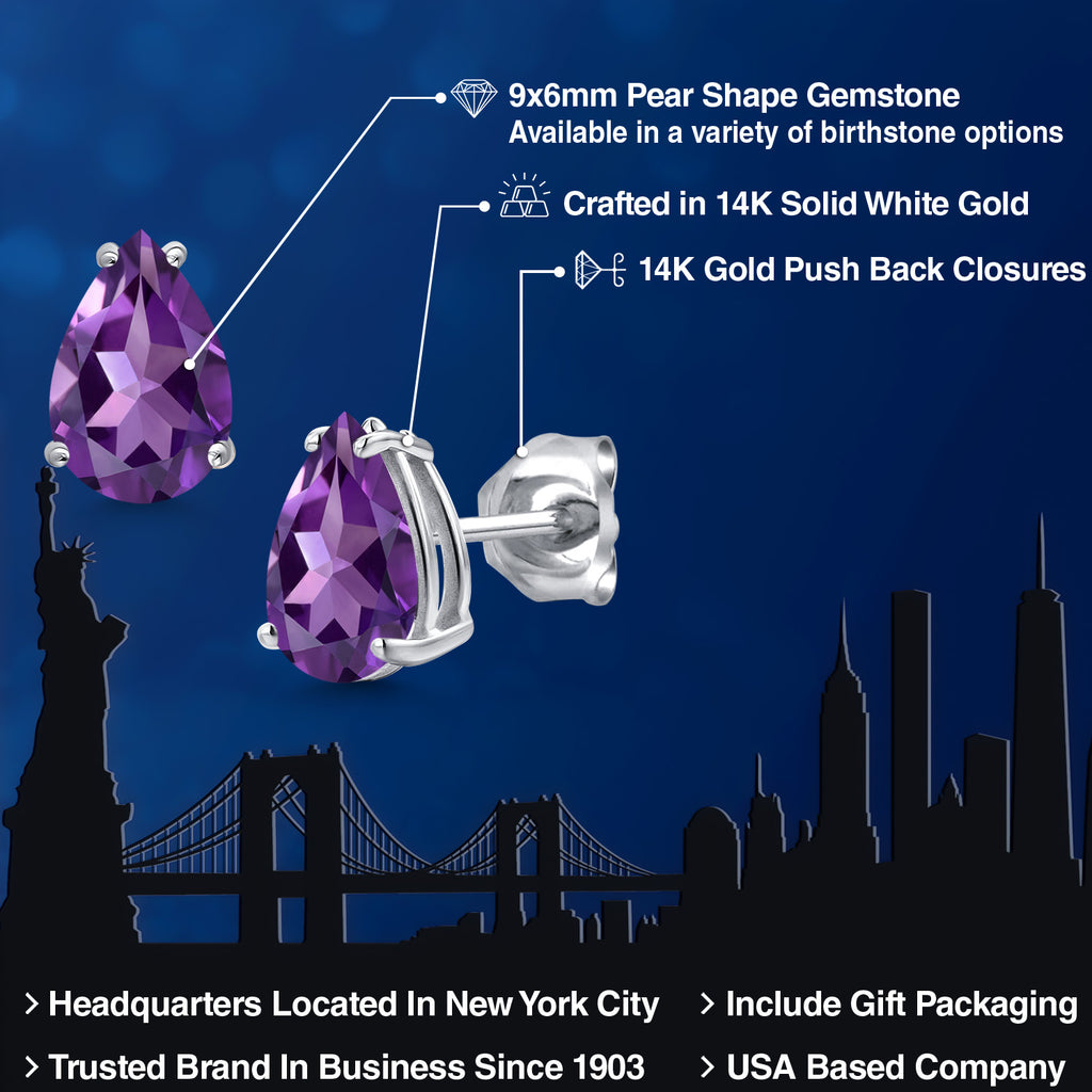 PEAR-SHAPED ELEGANCE: Showcasing a 9x6mm pear-shaped gemstone, these earrings bring a sophisticated touch to any outfit. The elongated silhouette enhances the brilliance of the gemstone, adding a sleek and refined accent to your look. Available in a range of birthstones, these earrings offer a personalized style, making them perfect for both everyday wear and special occasions.