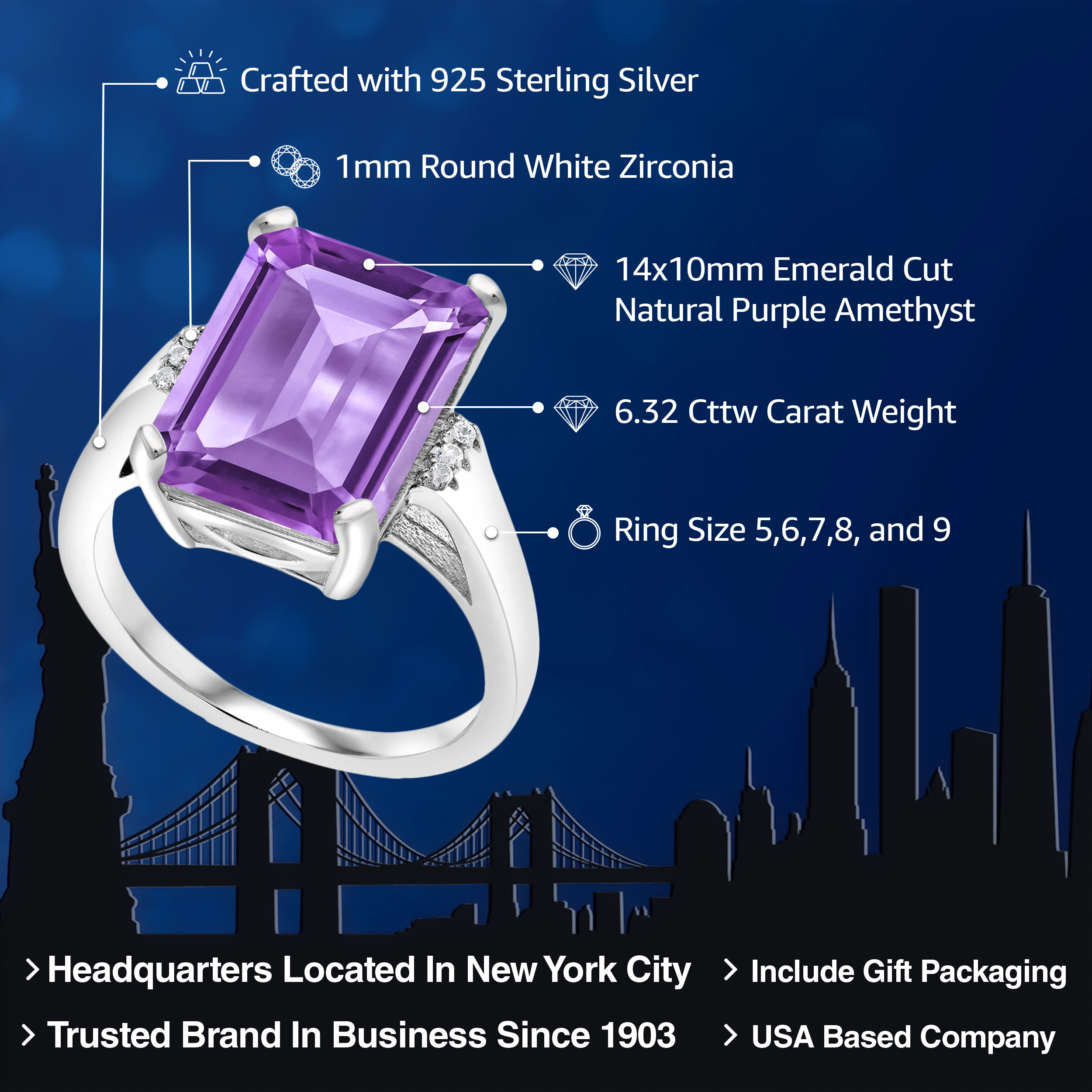 ELEGANT DESIGN WITH ACCENT STONES: Features a central emerald-cut gemstone with sparkling accents for enhanced visual impact. The polished silver band complements the centerpiece, creating a refined, harmonious look that exudes timeless charm.