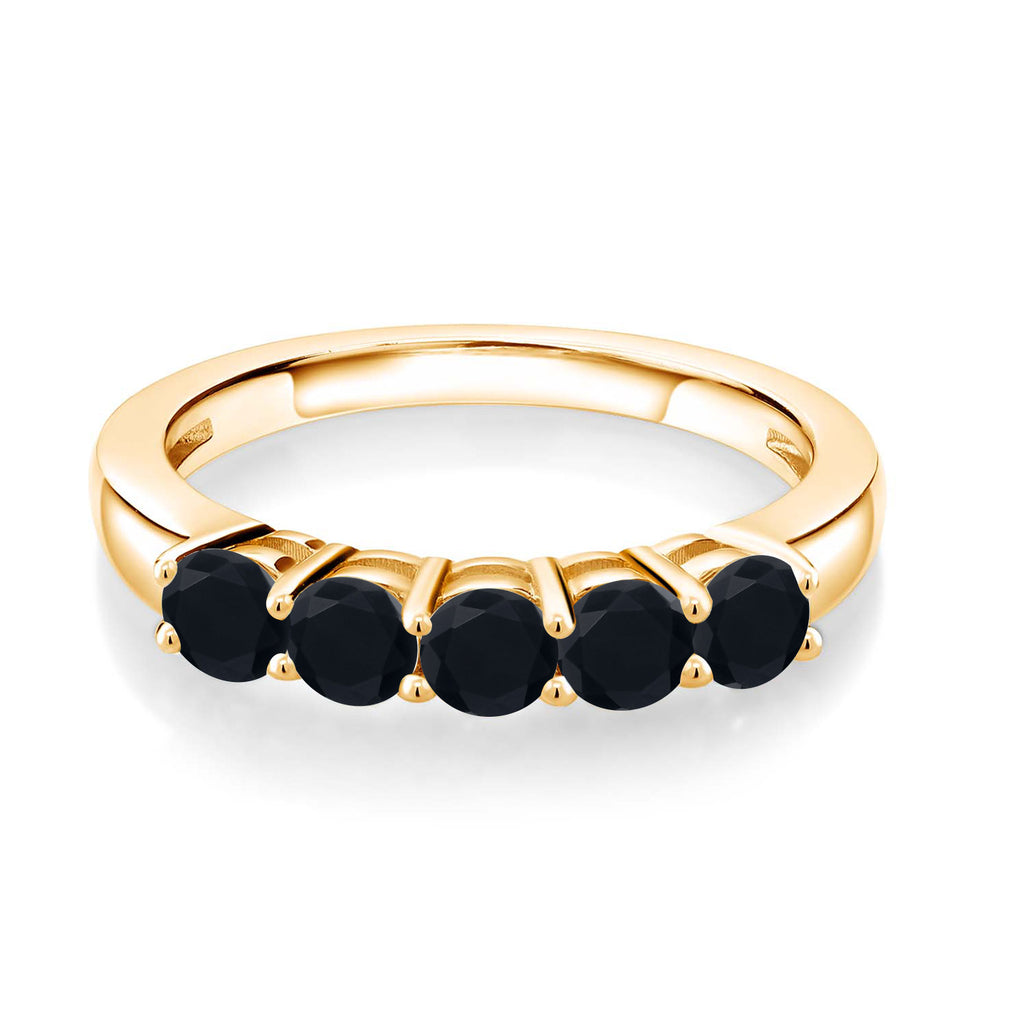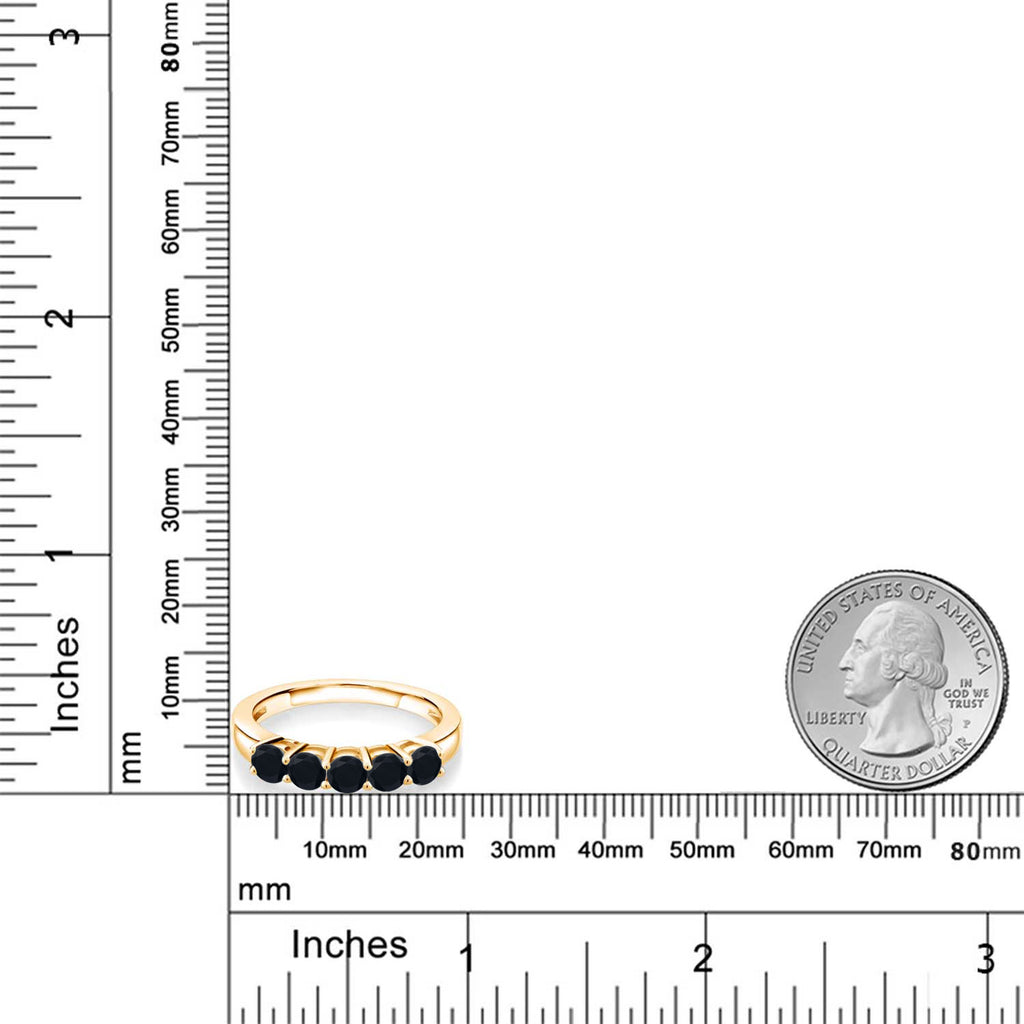 5-Stone Gemstone Birthstone Wedding Band Ring for Women in 18K Yellow Gold Plated Silver | Round 3.5MM | Stackable Engagement Anniversary Promise Ring | Fine Jewelry for Her Mom Wife | Sizes 5-9
