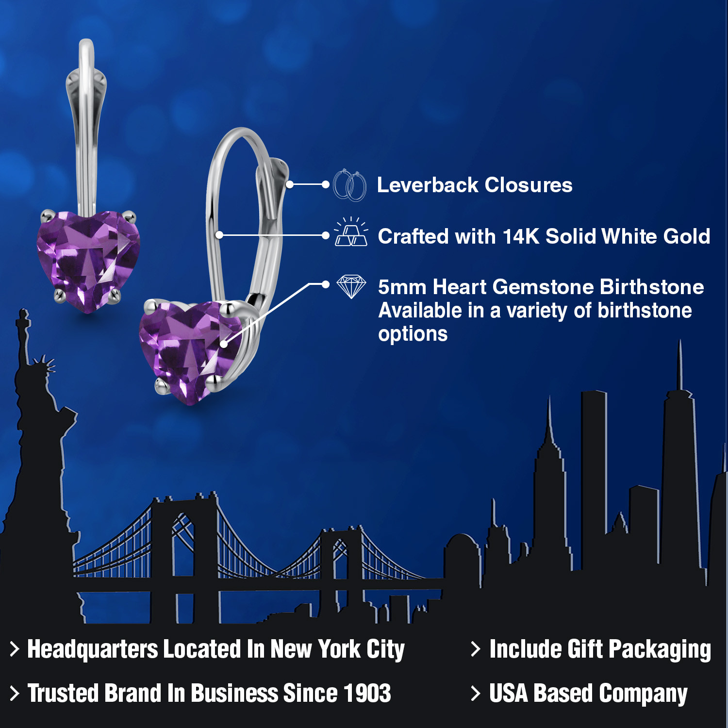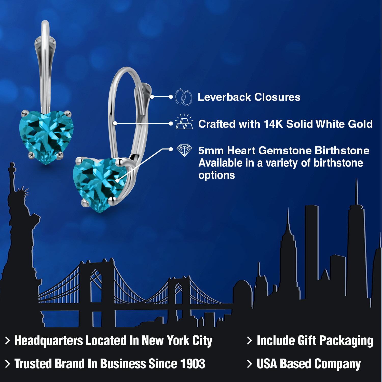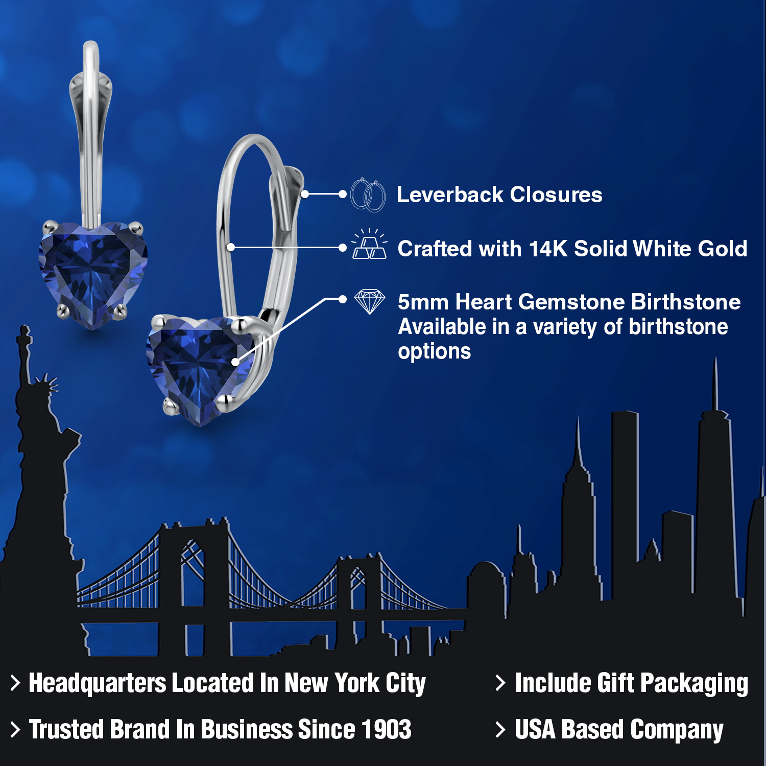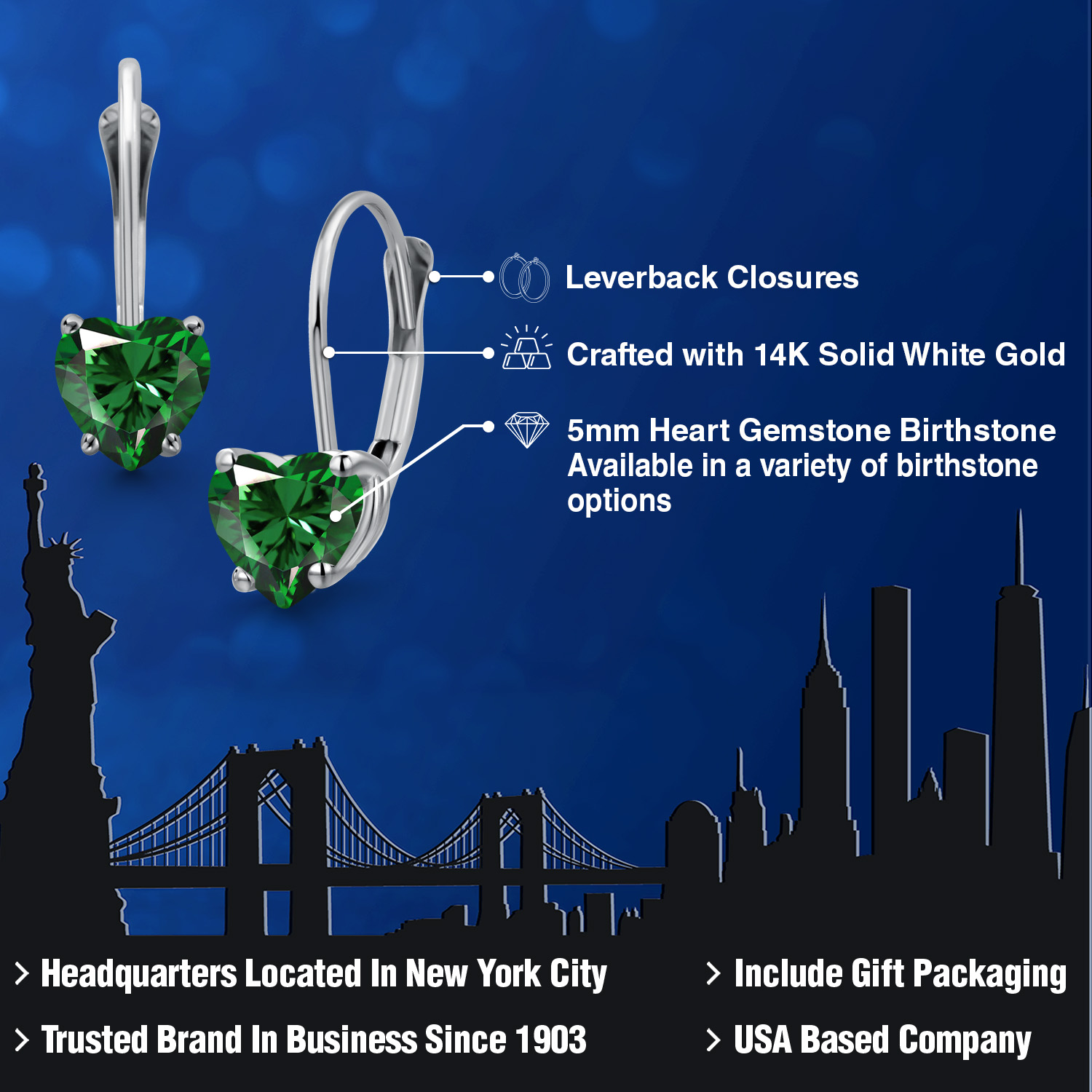 EXQUISITE HEART-SHAPED GEMSTONE: These stunning 14K white gold earrings feature a captivating 5MM heart-shaped gemstone, meticulously cut to enhance its brilliance and sparkle. Available in various birthstone options, these earrings make a perfect personalized gift for any occasion. The vibrant gemstone adds a touch of elegance and sophistication, making these earrings a standout piece in any jewelry collection.
