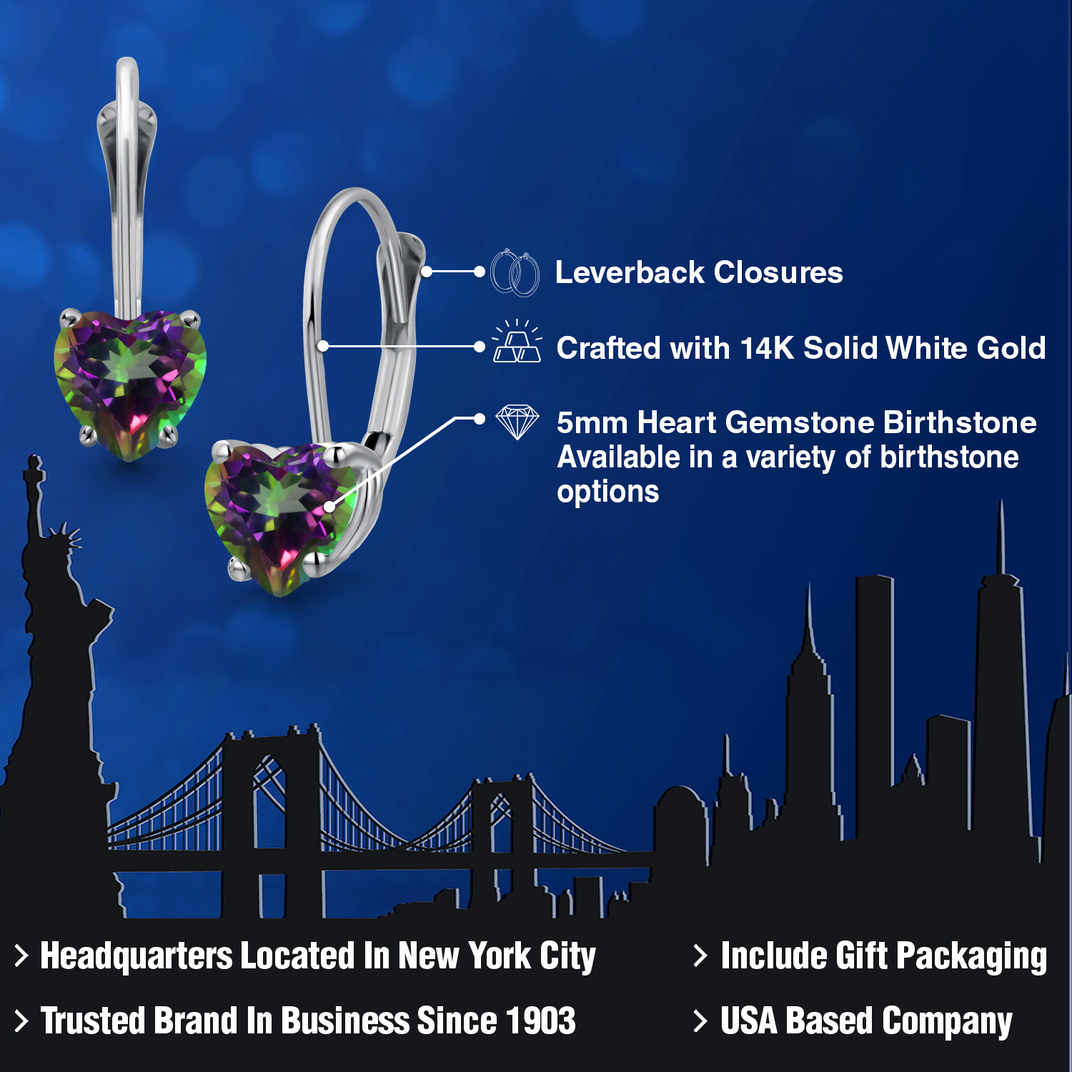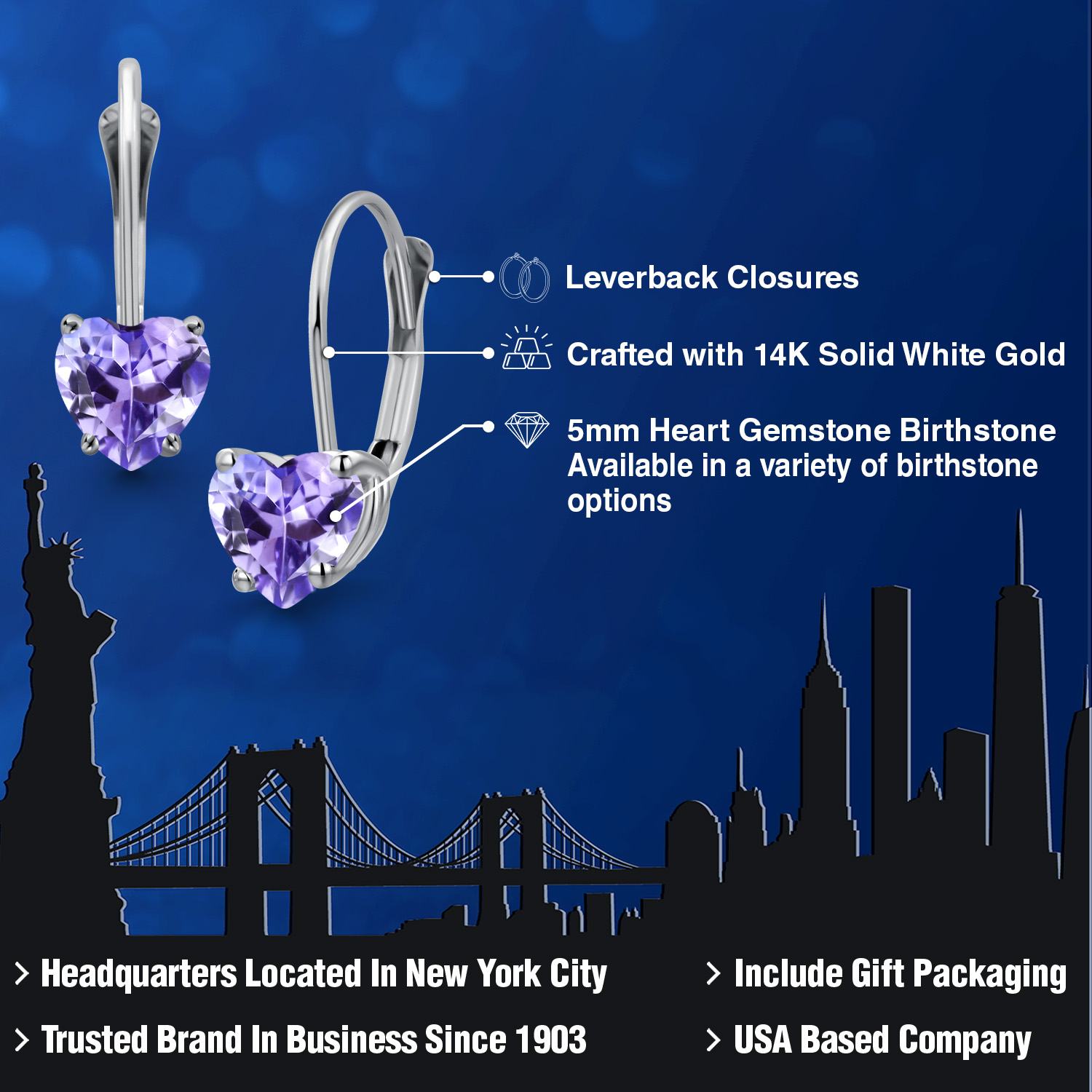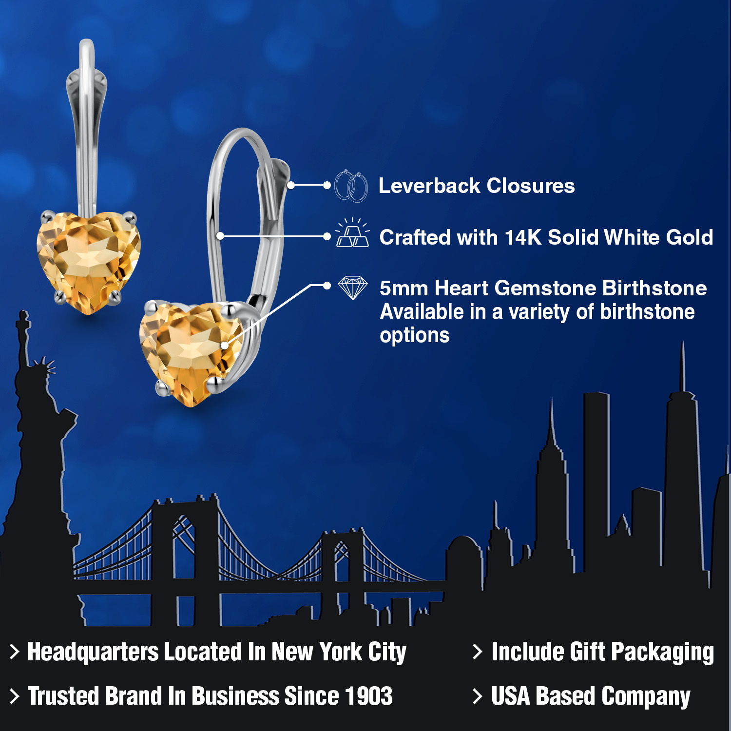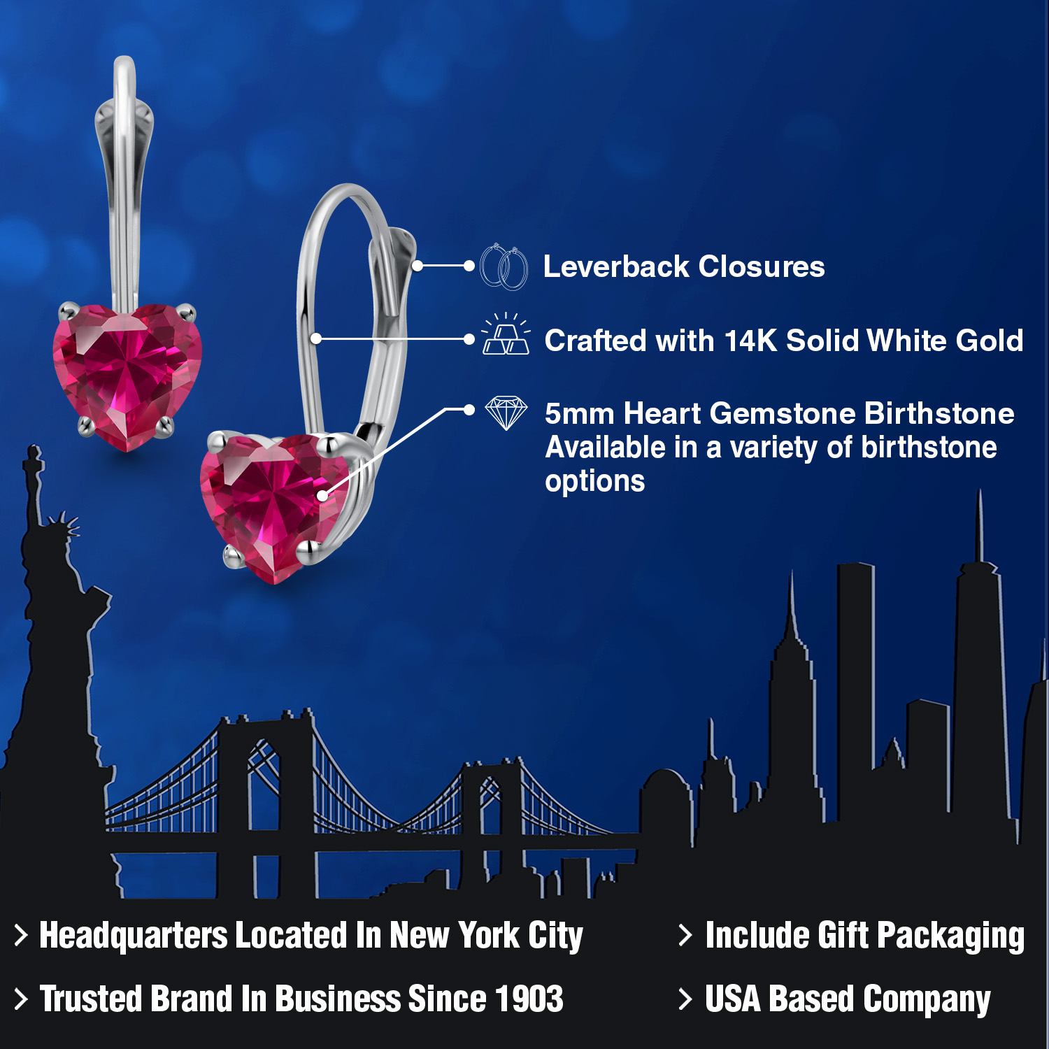 EXQUISITE HEART-SHAPED GEMSTONE: These stunning 14K white gold earrings feature a captivating 5MM heart-shaped gemstone, meticulously cut to enhance its brilliance and sparkle. Available in various birthstone options, these earrings make a perfect personalized gift for any occasion. The vibrant gemstone adds a touch of elegance and sophistication, making these earrings a standout piece in any jewelry collection.