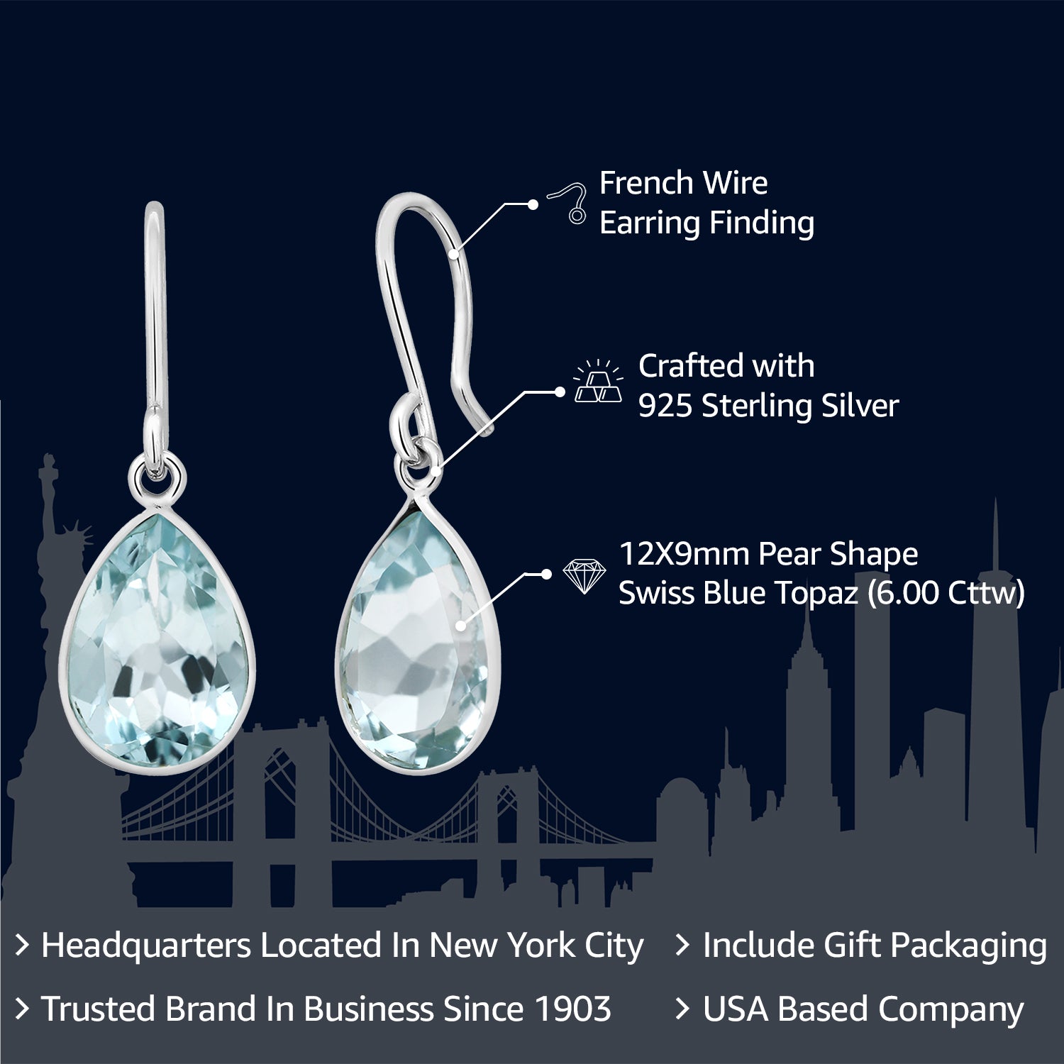 BIRTHSTONE SIGNIFICANCE: Swiss blue topaz is the birthstone for December, making these earrings a meaningful and personalized choice for December-born individuals. Celebrate birthdays or special moments with a gemstone that holds personal significance.