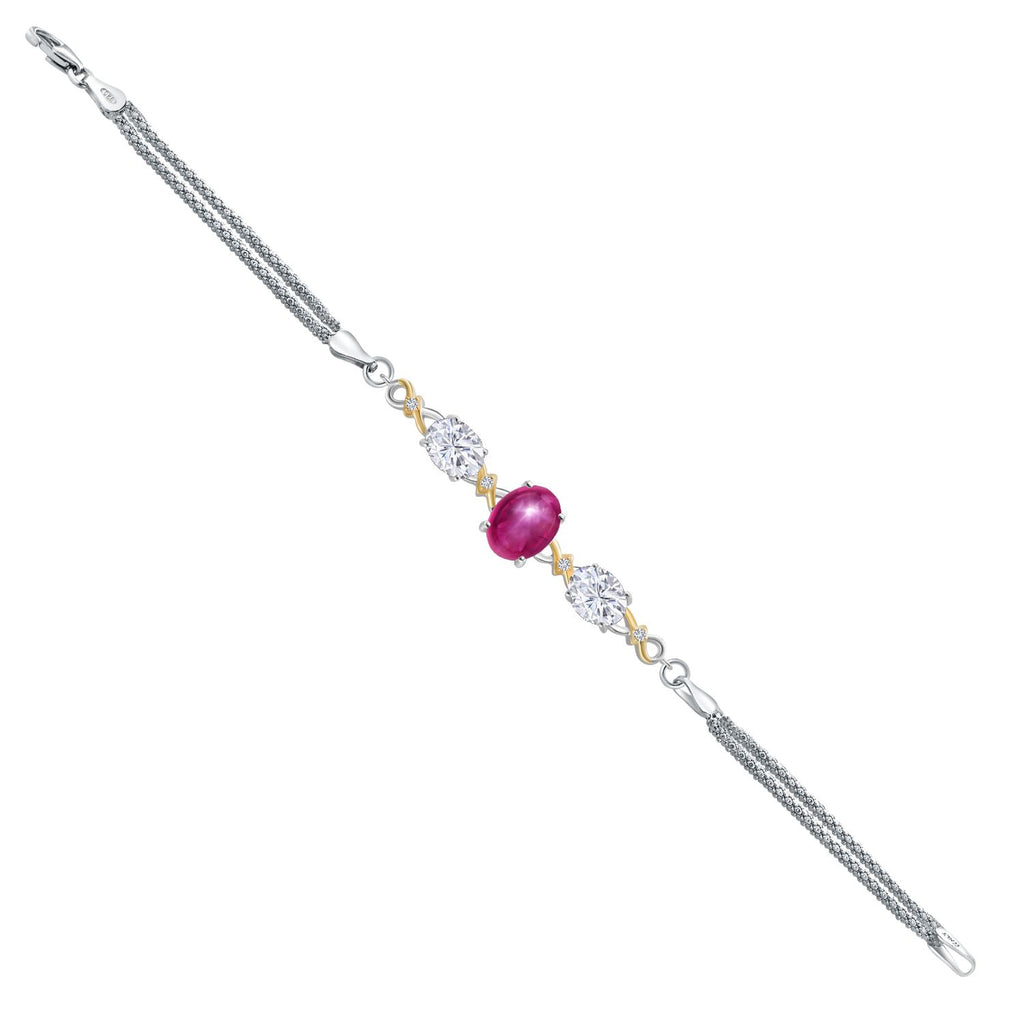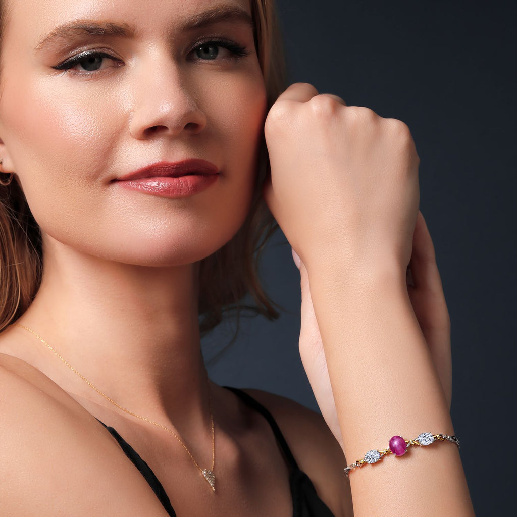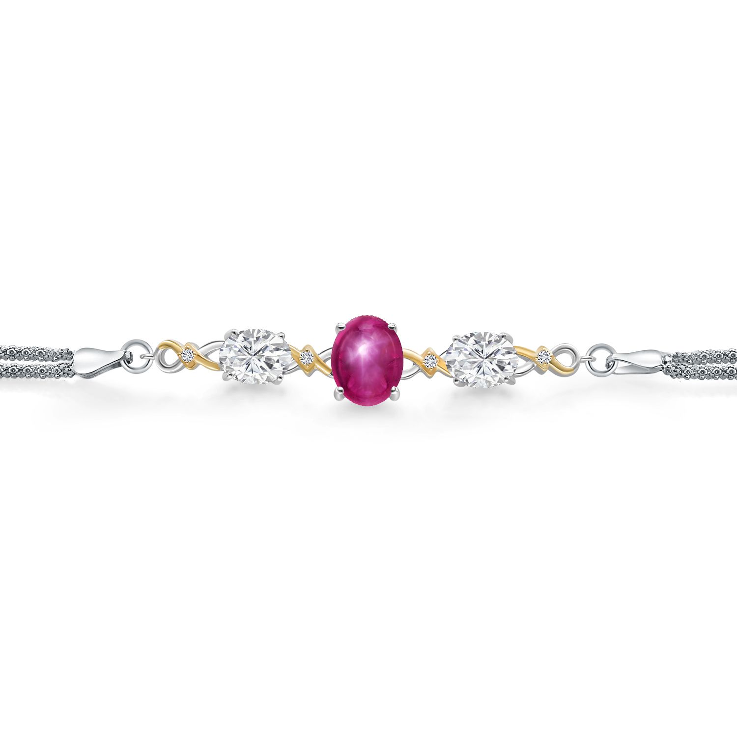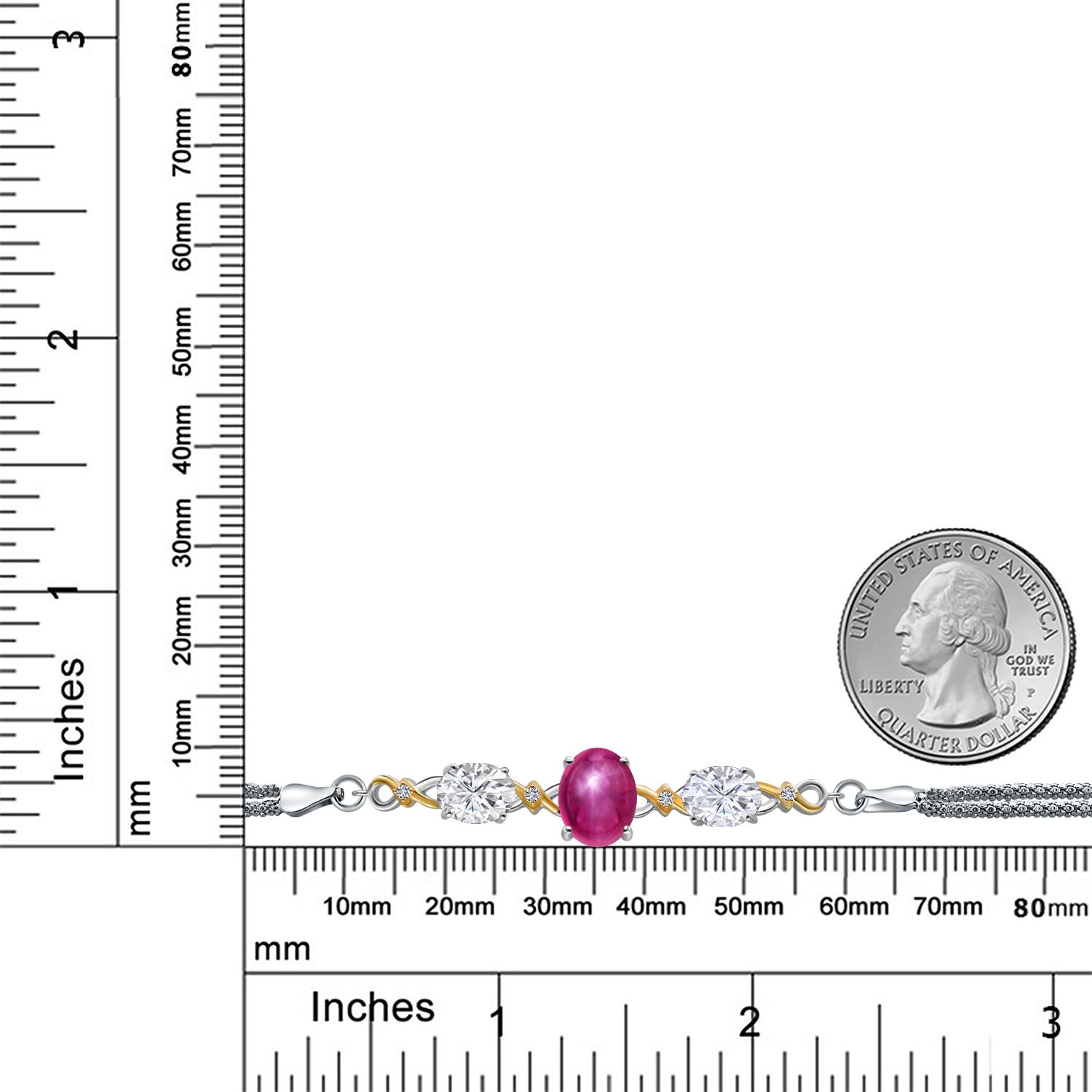 6.06 Cttw Red Created Star Ruby White Moissanite and Lab Grown Diamond Bracelet For Women | 925 Silver and 10K Yellow Gold | 10X8MM and 8X6MM | 6.5/7/7.5 Inch | Made in Italy