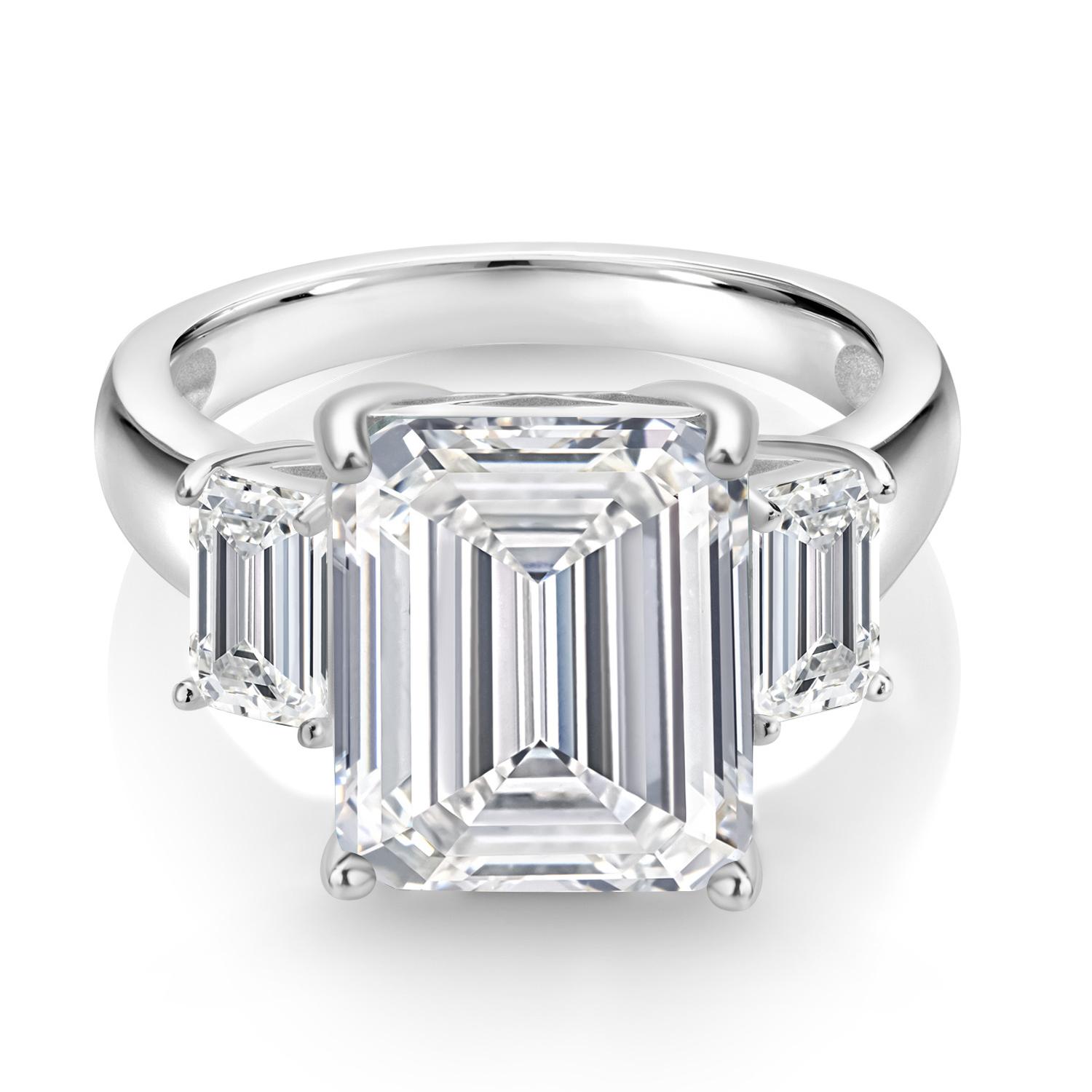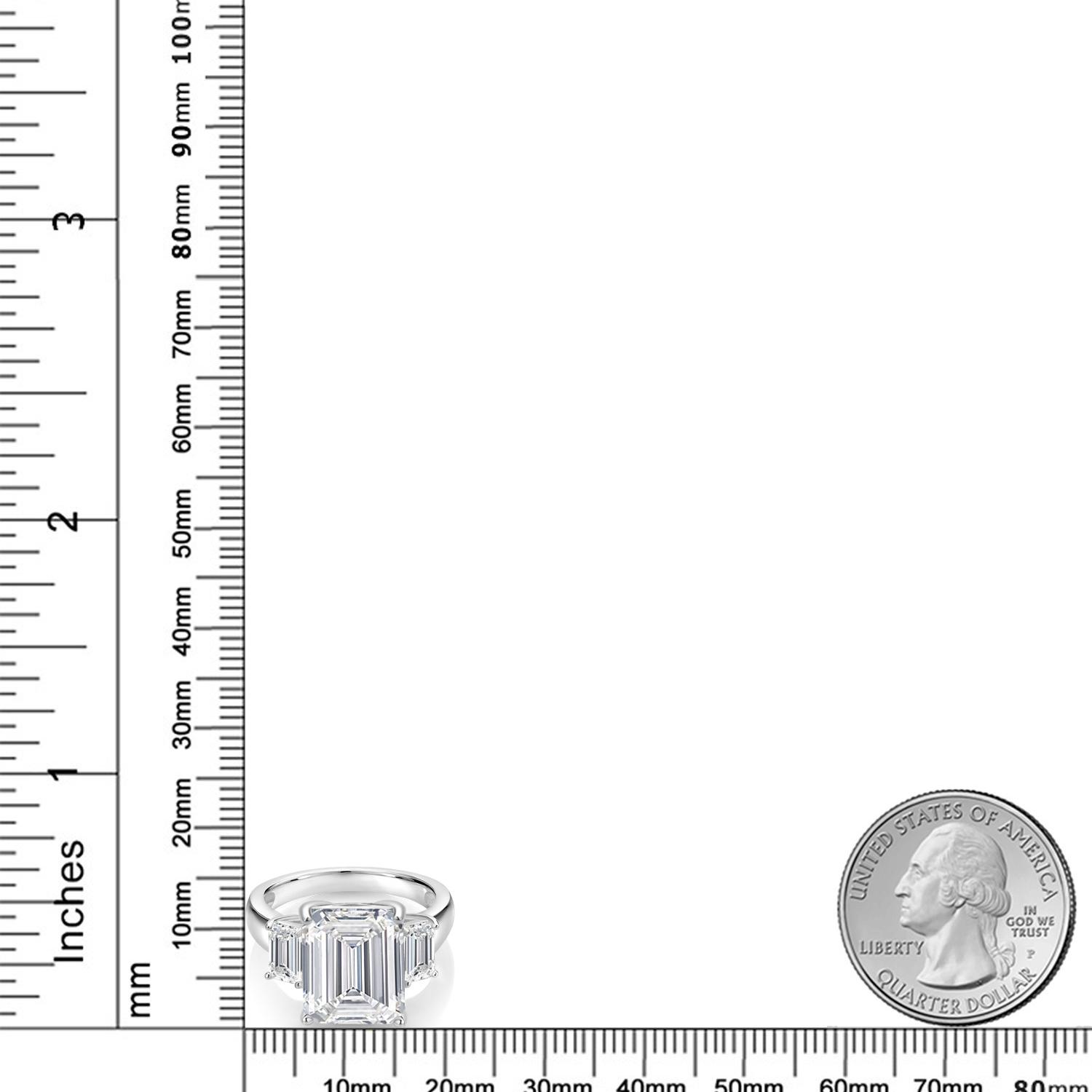 MEASUREMENTS: 12x8mm Emerald Cut E - F Lab Grown Diamond, 6x4mm Emerald Cut E - F Lab Grown Diamond. Total Carat Weight is 6.4 cttw